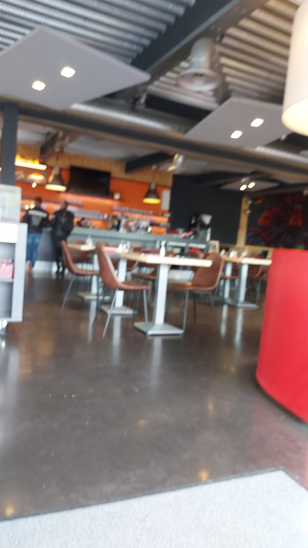 Un lieu presque bien ou ce que l'on y mange est presque bon. malgré la déco on ne ressent pas vraiment d'ambiance. je trouve que c'est assez froid dans l'ensemble// déco et service . cela ne m'a jamais empêché d'y aller certes, de toute façon, il n'y a que ça a proximité des magasins moto....