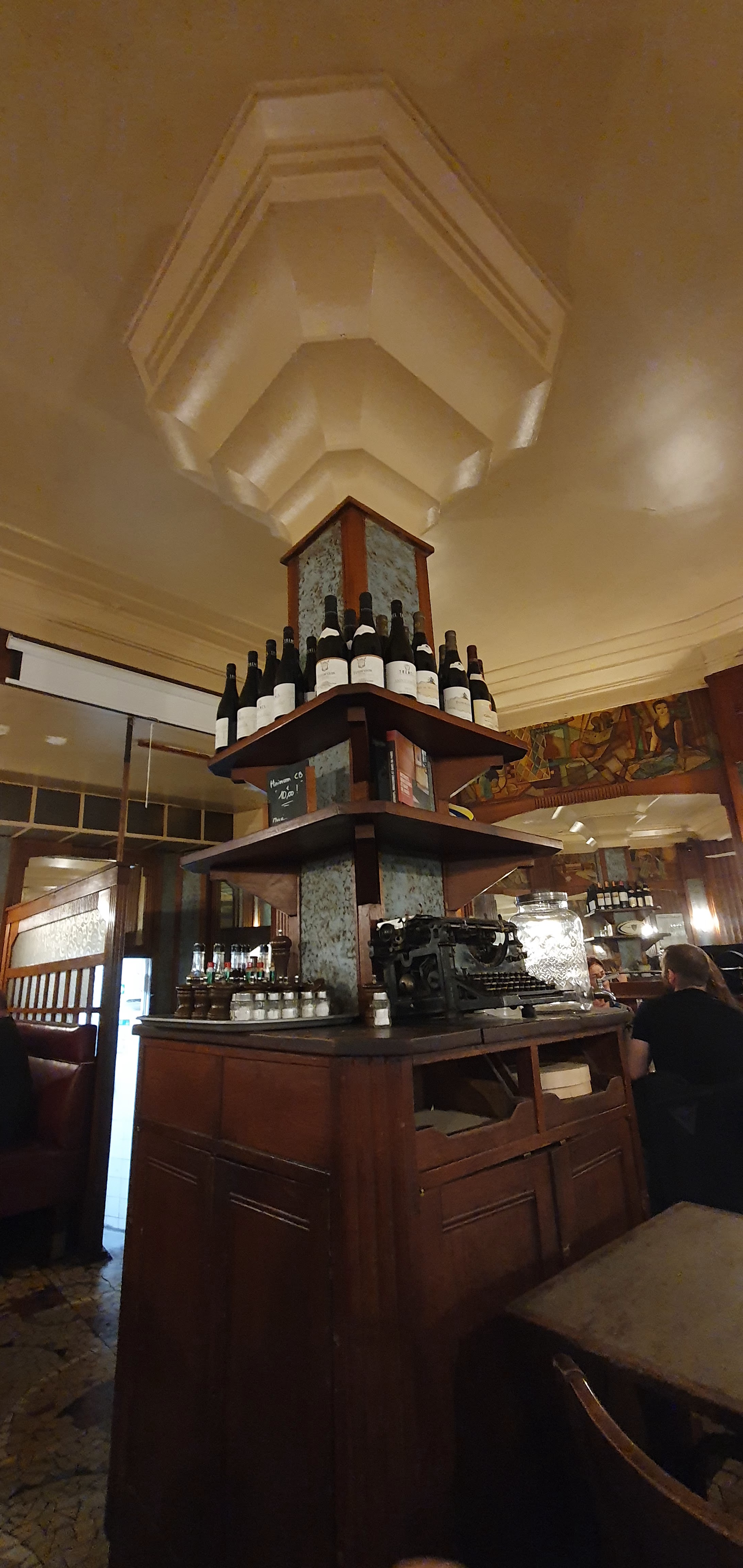 La décoration du café est exceptionnelle, le lieu respire l'histoire et donne envie d'y passer l'après-midi. La terrasse est sympathique même si des pigeons se réfugient sous les stores et ne nous laissent pas vraiment sereins lorsqu'ils sont perchés au-dessus de nos têtes. Le service n'est pas toujours exceptionnellement rapide où sympathique mais rien de très choquant comparé à ce qu'on peut trouver à Paris. J'y vais surtout pour boire un café ou un verre, de ce côté-là rien à redire et j'y retourne souvent car j'aime vraiment beaucoup le lieu en tant que tel. Gros bémol par contre sur les brunchs : Pour une vingtaine d'euros vous aurez droit à une unique assiette pour le repas dans laquelle entrée, plat et dessert sont mélangés plus ou moins anarchiquement (les pommes de terres qui trempent dans les fruits coupés, à côté d'un moelleux au chocolat ... bof). J'avais décidé d'opter pour les toasts au saumon, qui étaient réellement immangeables : les toasts sentaient encore l'usine dans laquelle ils avaient été fabriqués, ils étaient froids, à peine grillés et la sauce (froide aussi) dans laquelle ils baignaient était répugnante... Je ne jette jamais la nourriture mais là il n'y avait pas d'autres solutions. On pourra toujours me dire que ce n'est qu'une question de goût mais nous étions 6 à table exactement du même avis. Vous en tirerez les conclusions que vous voudrez. La formule brunch mériterait donc sans doute d'être revue dans ses grandes largeurs, d'autant plus que pour ce prix-là on peut largement trouver mieux pas beaucoup plus loin ... La seule chose à conserver serait peut-être le mimosa pour démarrer le brunch.