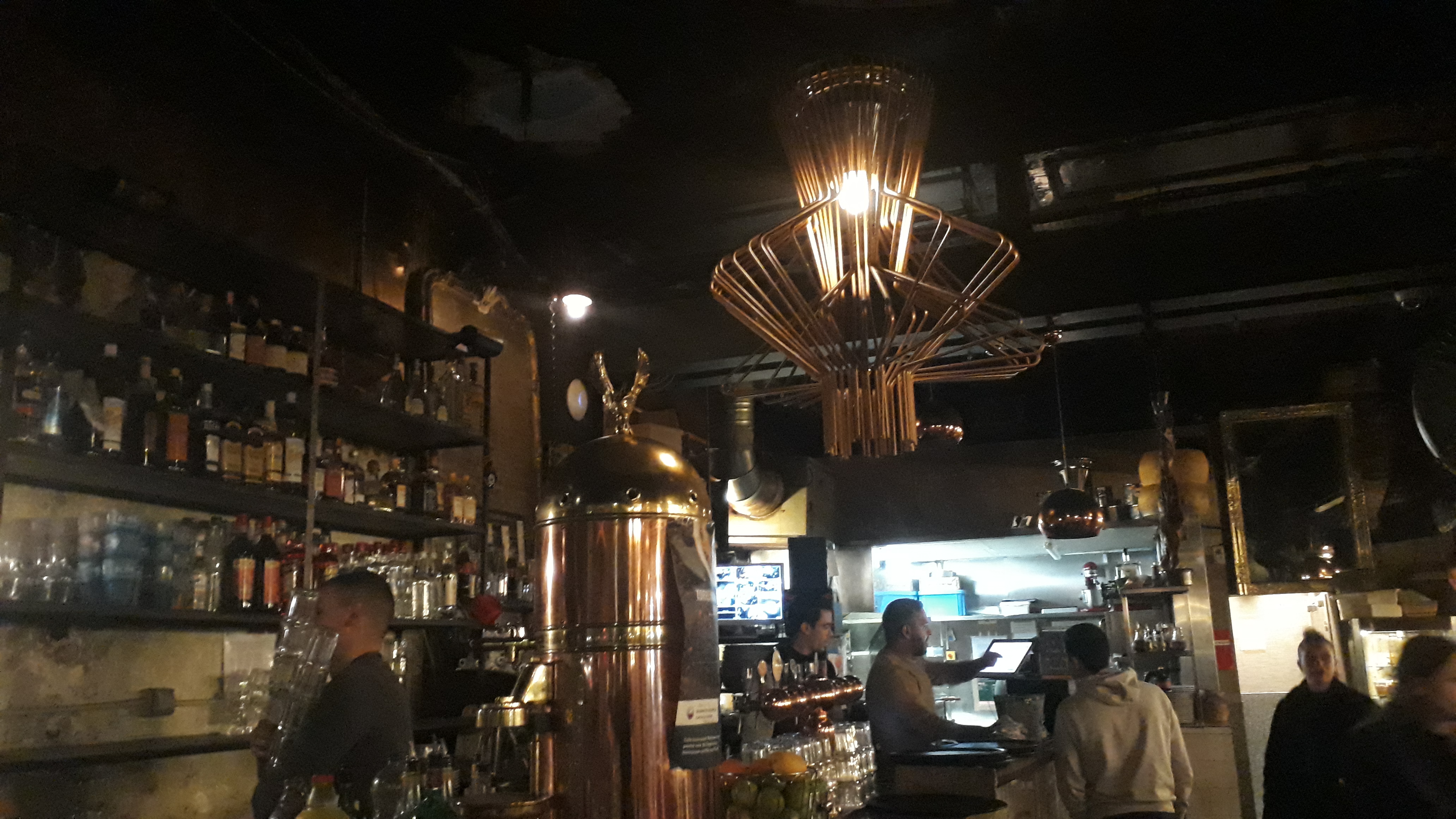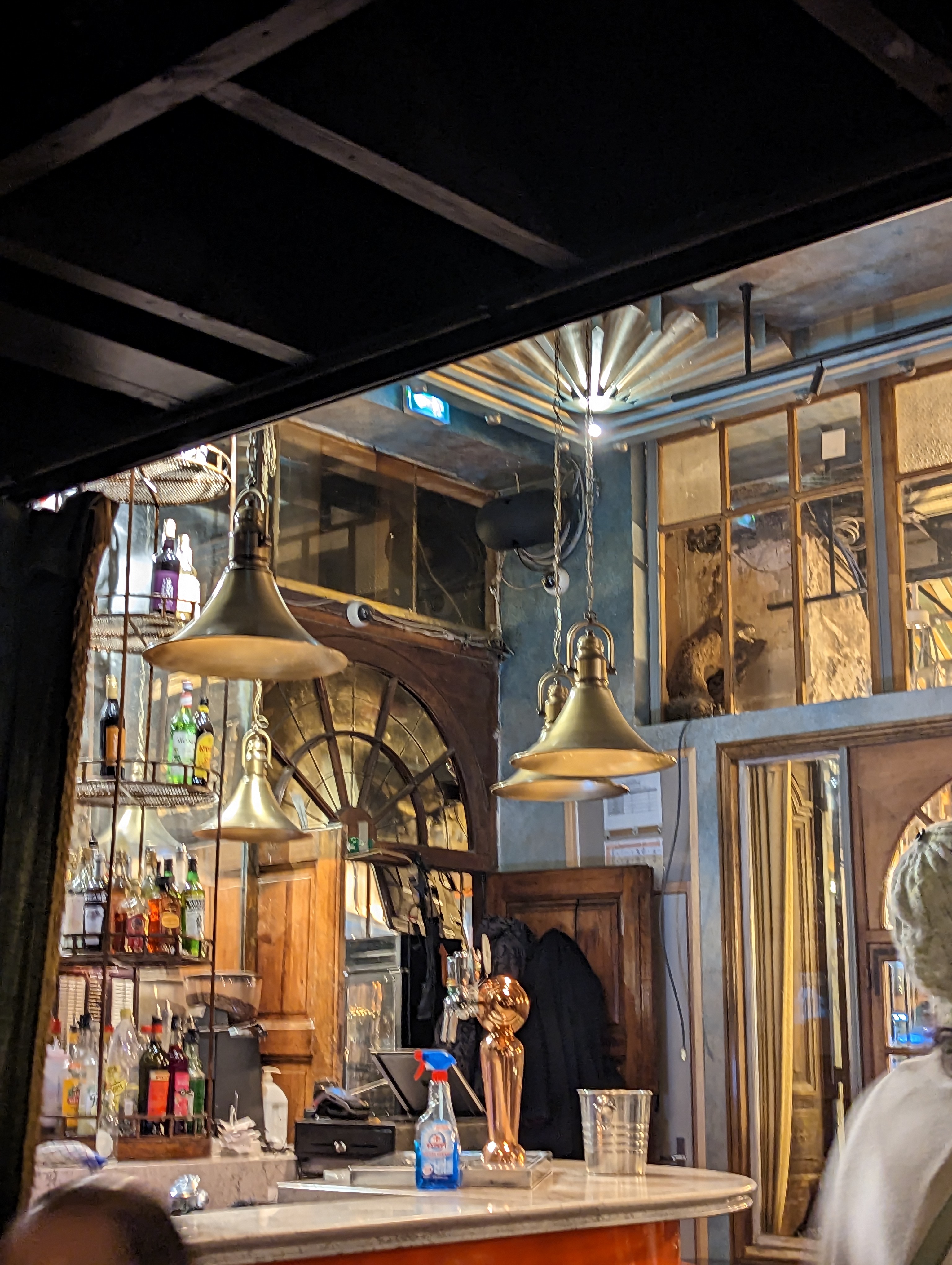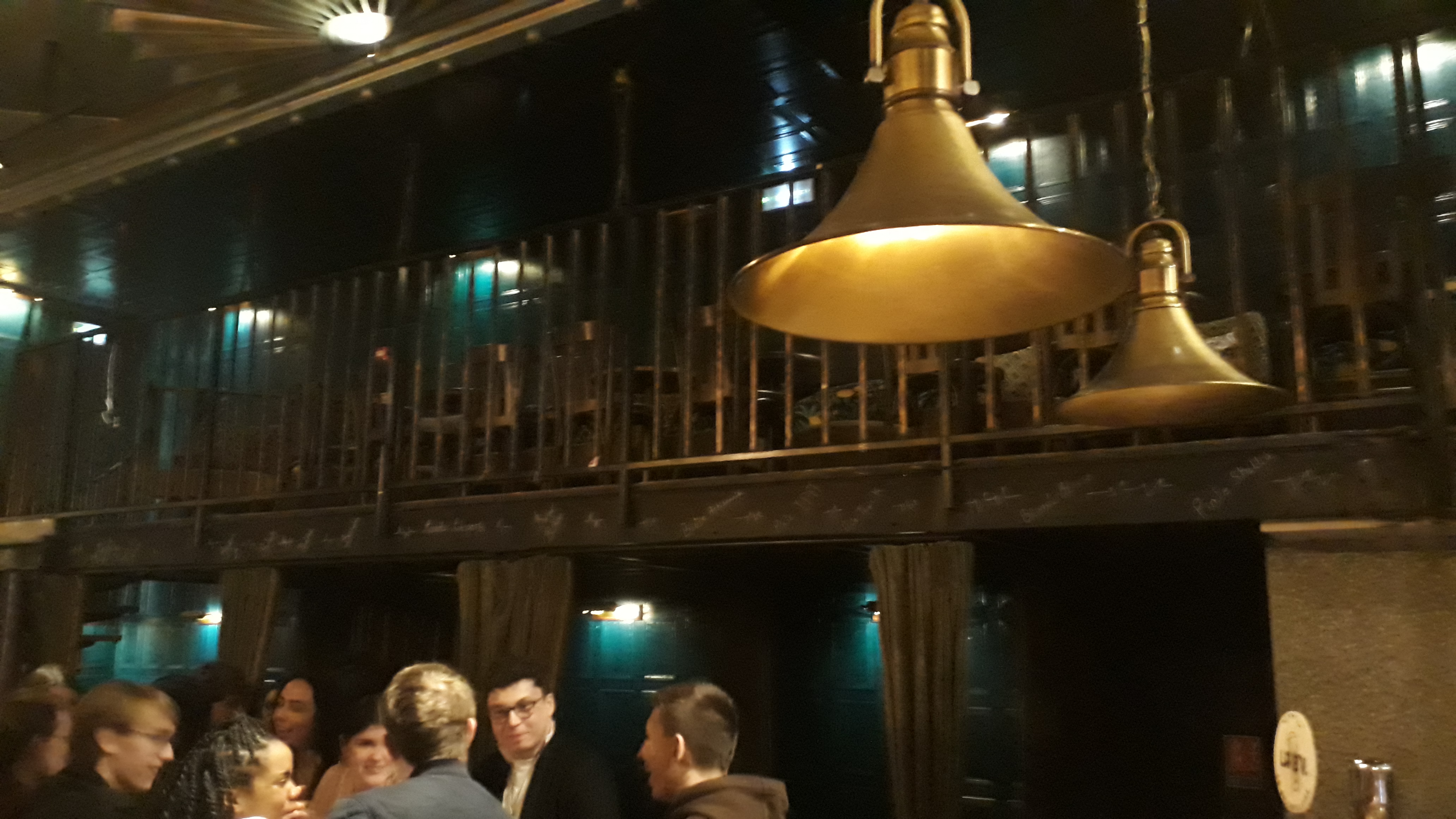 YAHOOOO !!! EXCEPTIONNEL !!! Quelle super équipe de serveuses et serveurs, mais aussi des conseils, et de formidables animateurs, quand au lieux, WHAOUUUU ! Une déco super délirante, des canapé cuir, des alcôves, ou de grandes tables hautes, quand on est en bande potes, ou allez vous poser en Amoureux dans une alcôve, ou vous loger dans des fauteuils et canapés en cuir, n'oubliez pas de lever la tête pour admirer ses chefs d'oeuvres de déco, tout en dégustant, pinte, cocktails, et plein d'autre bonne choses... Si t'es seul, c'est franchement pas un soucis, tu sera en un instant transporter dans la top ambiance, et immanquablement, ton voisin ou ta voisine engagera la conversation, ou un sourire . Et puis le must, si on c'est un peu trop laissé aller... A 50m, tu trouvera une station de métro, une station de taxis, et un arrêt de bus de ville. Je RECOMMANDE .