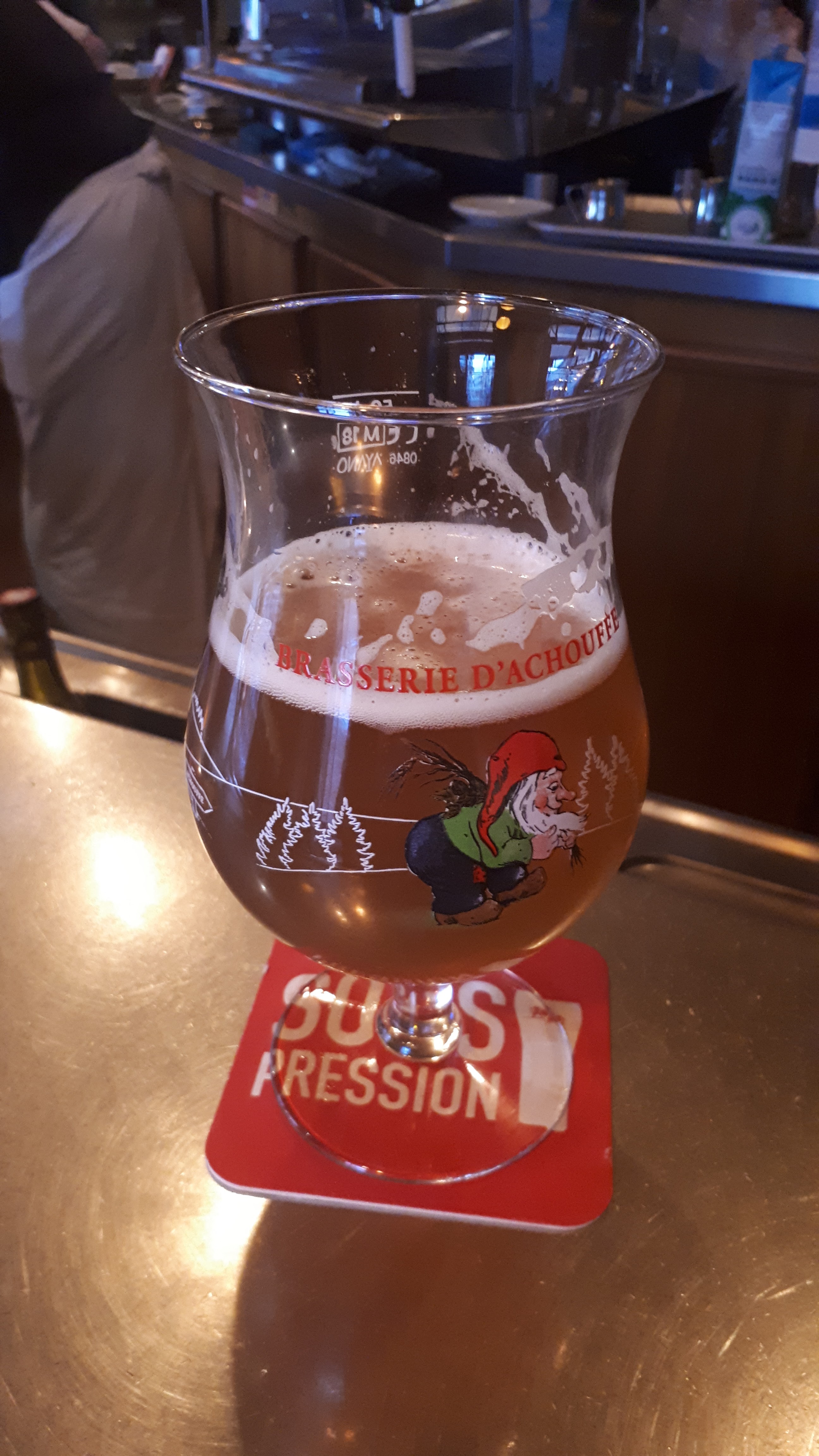 Bon restaurant sur 3 niveaux Terrasse extérieure et coin fumeur Beau bar avec de la Chouffe en pression.