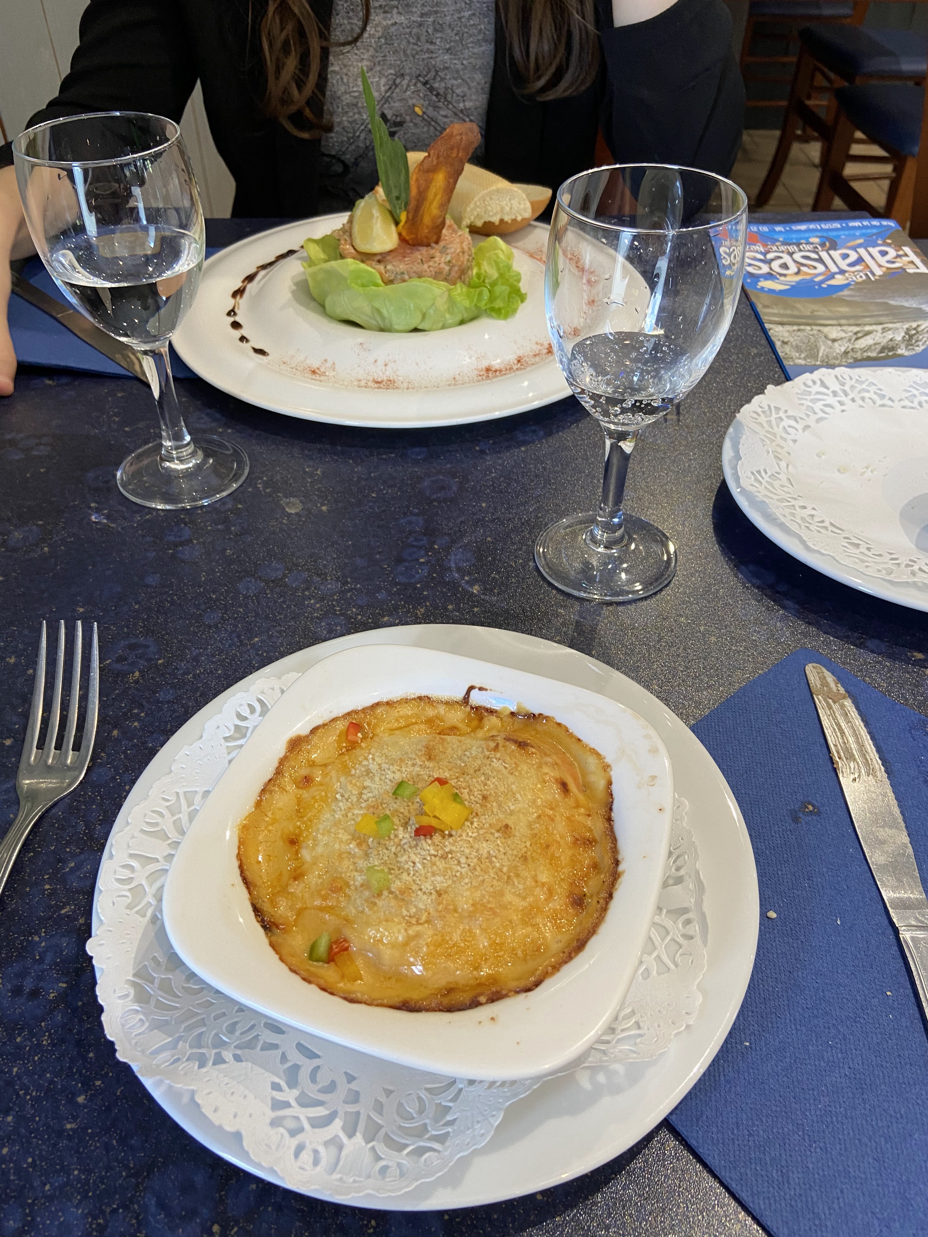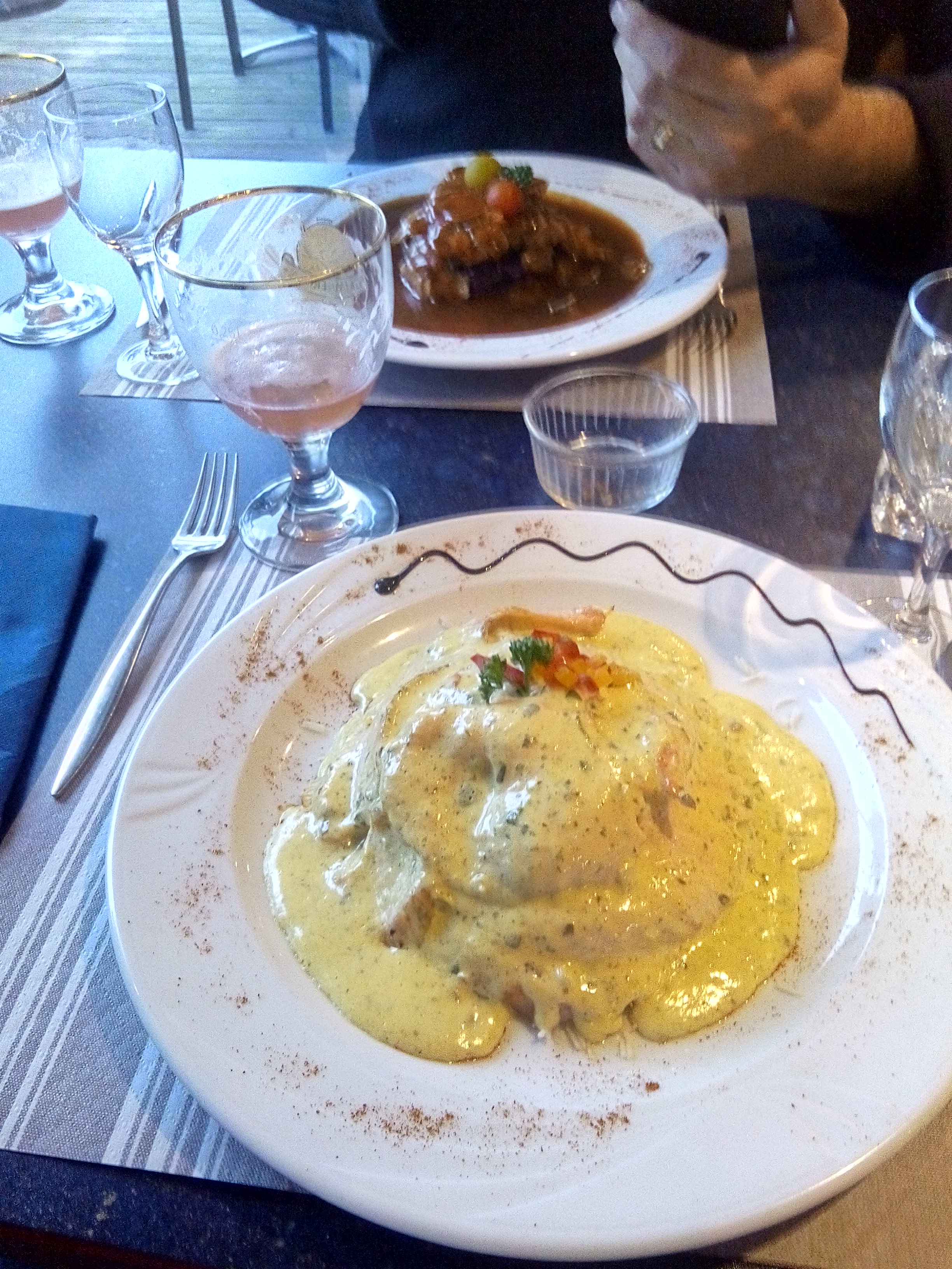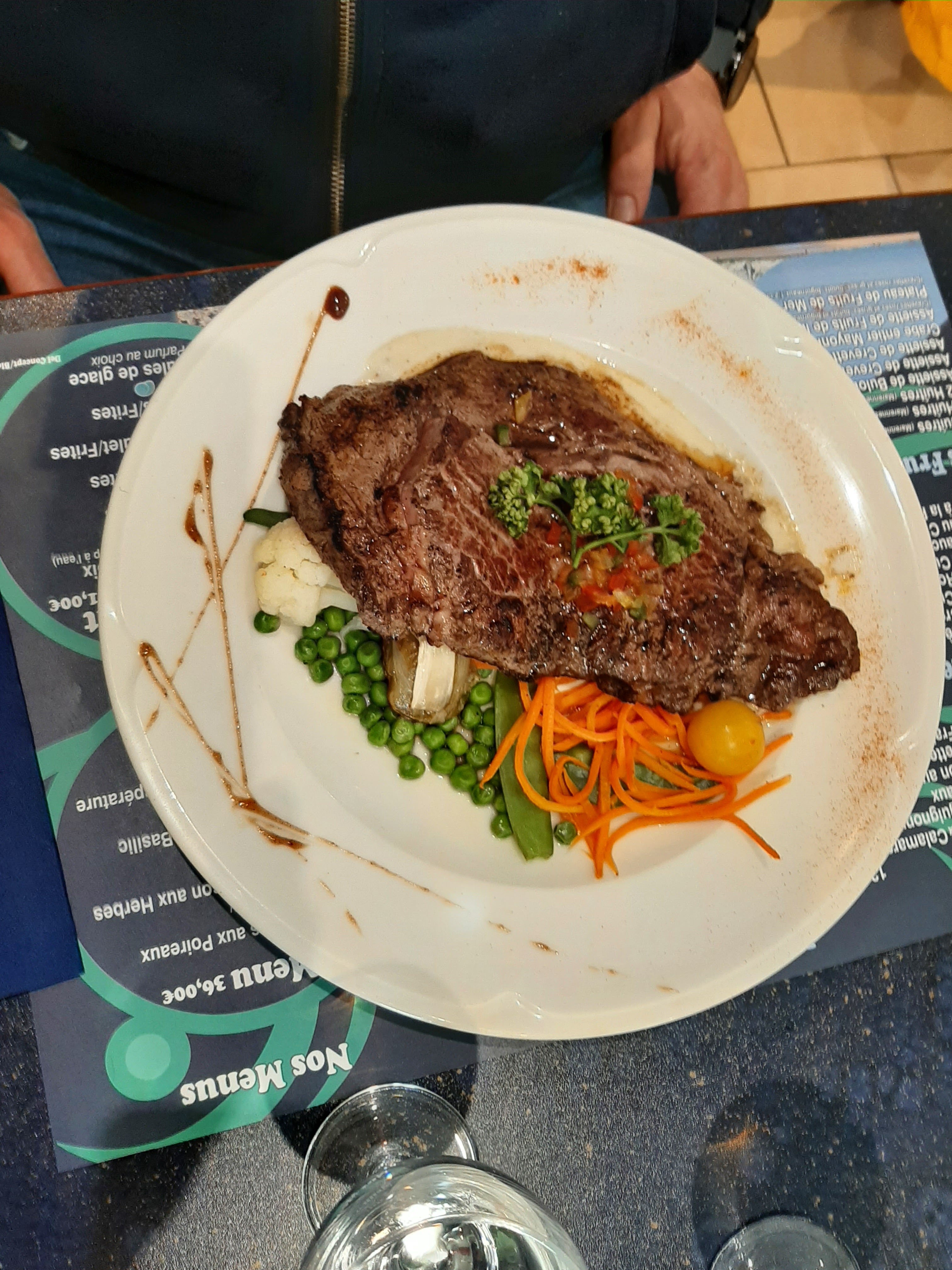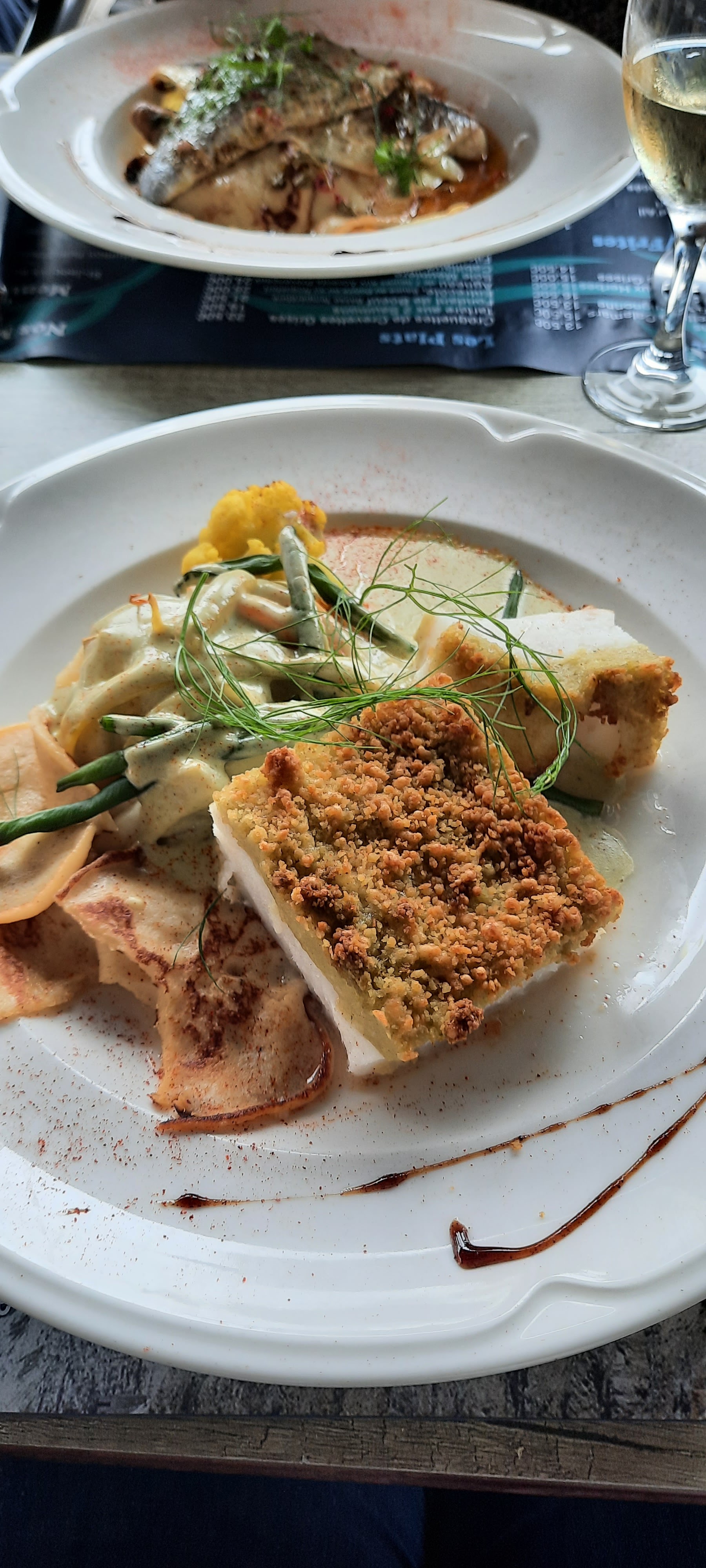 1.) Les Menues et les boissons etaient tres Bonne, cabillaud etait delicieuse.2.) Le Service est inacceptable. Le Service feminin ignorant, nous nous sommes assis devant des assiettes Vides Pendant 3/4 heute..puis paye au bar. Tres triste de la Soiree et du bon Menu.