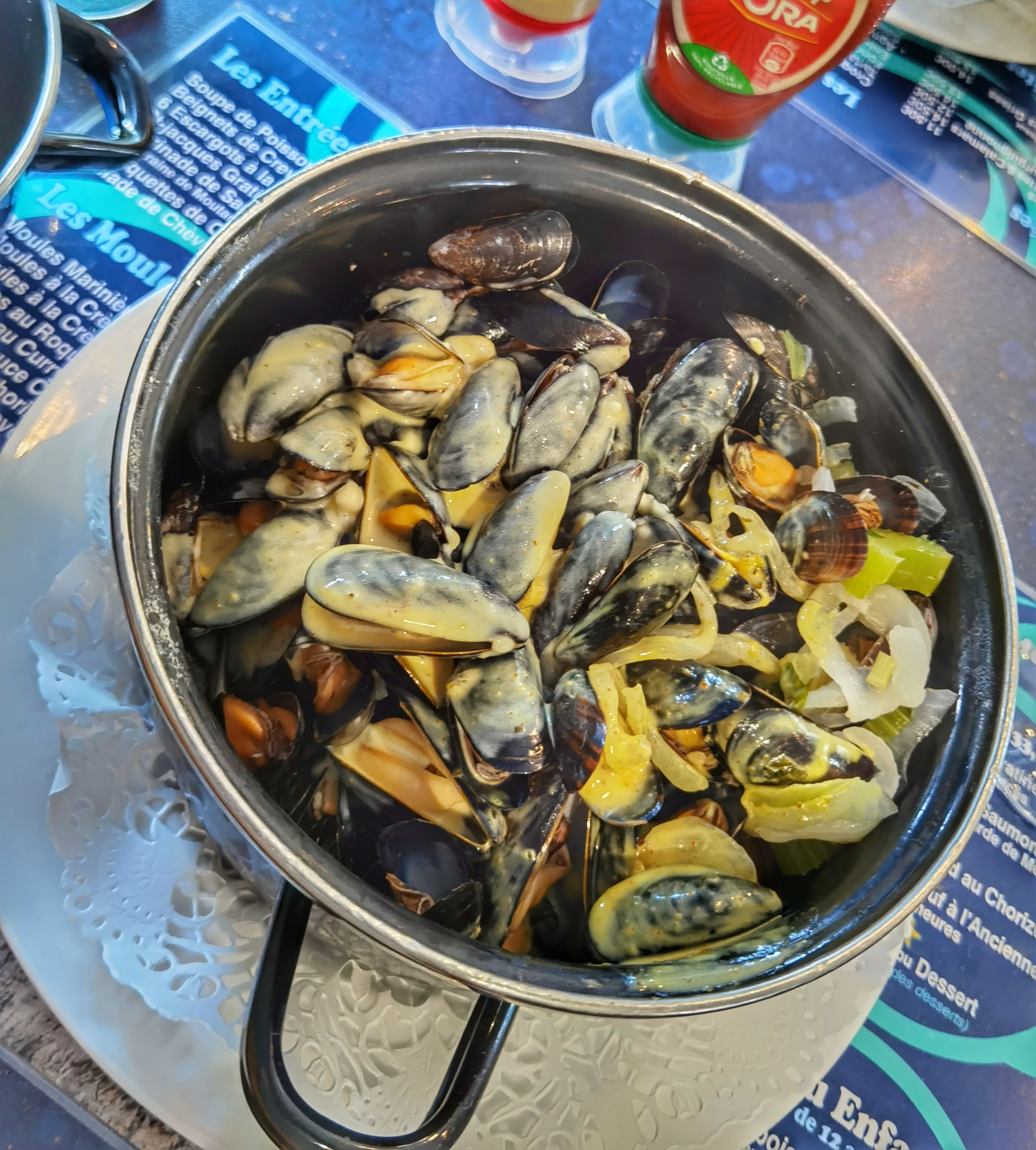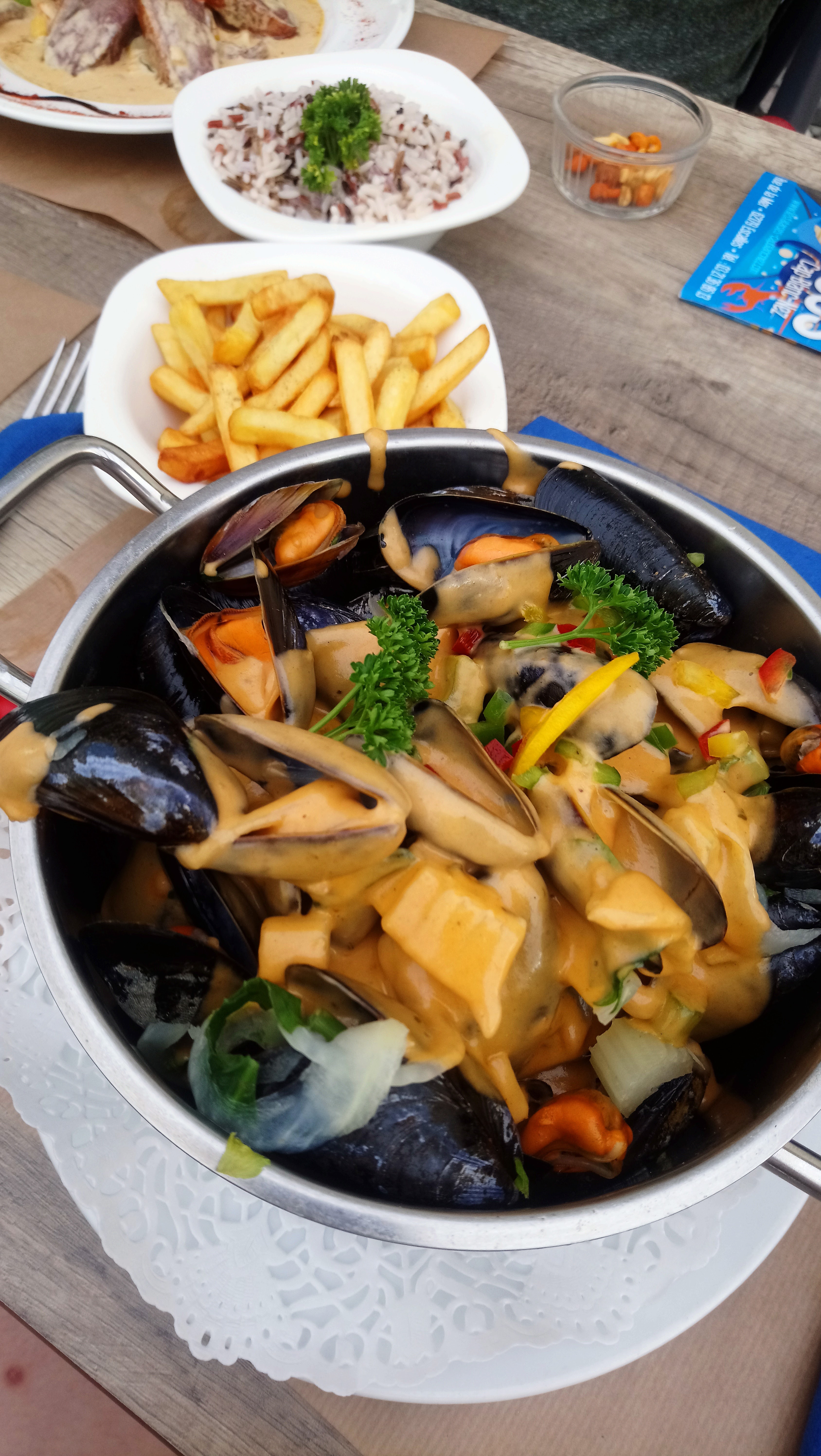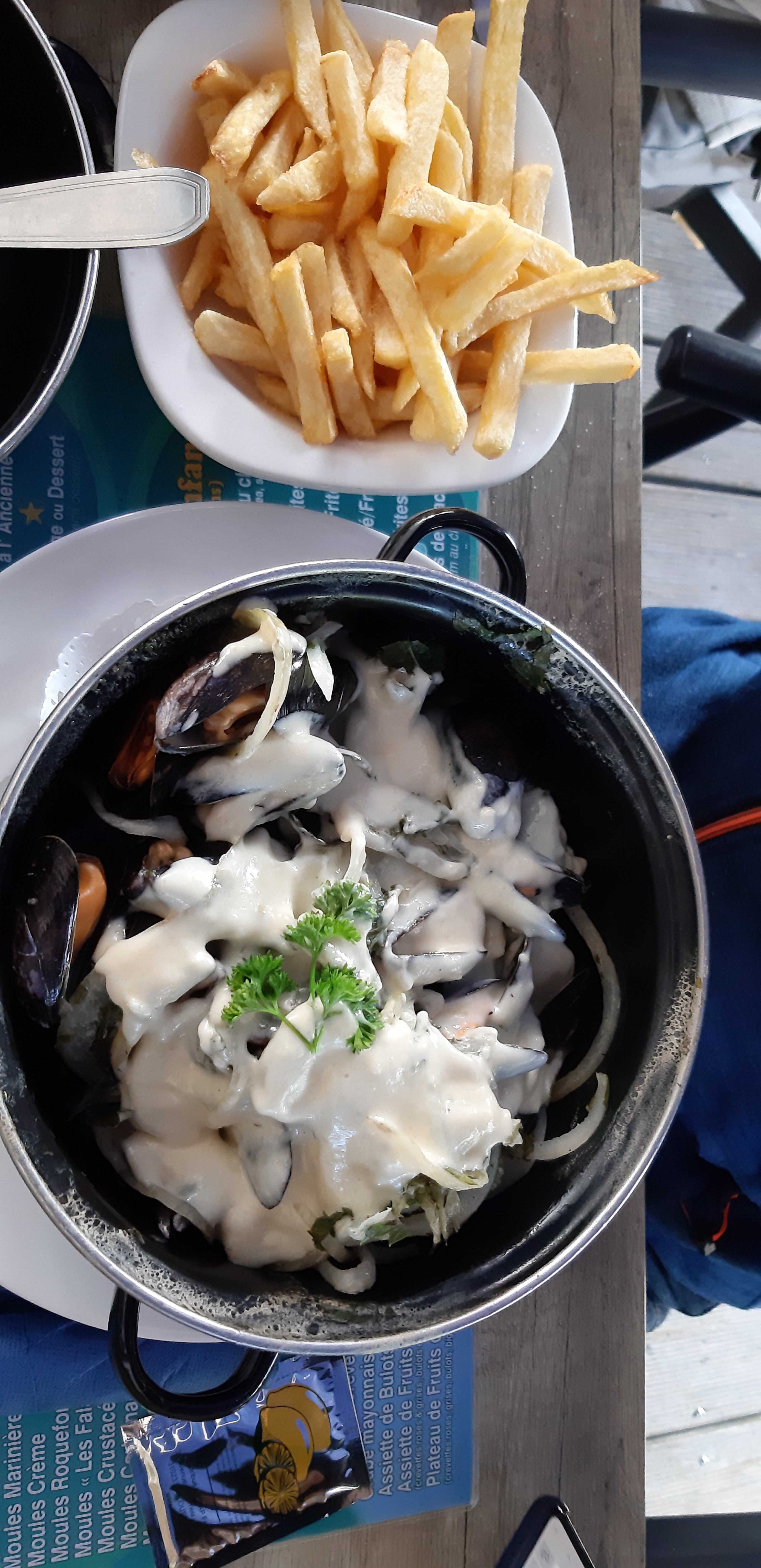 Moules crème bonne juste pas assez chaudes. Personnel super sympa. Resto propre.