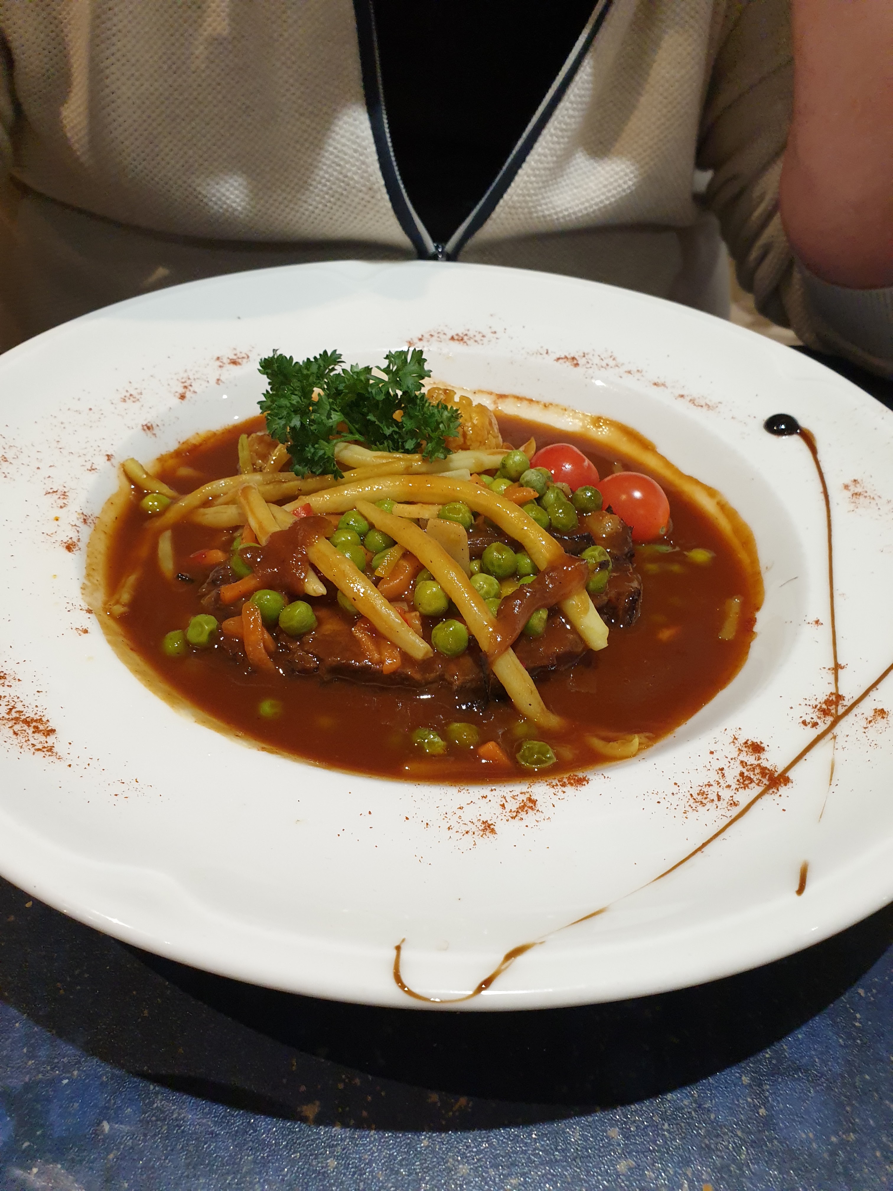 Restaurant assez sympa quand on est arrivé on s'est installé dehors mais on avait froid en préféré aller à l'intérieur il y avait plus de place mais un quart d'heure après un serveur est venu nous chercher pour nous changer notre place une petite attention particulière qui fait plaisir. Je le conseille les plats sont très bien cuisiner et bien décorer j'adore.