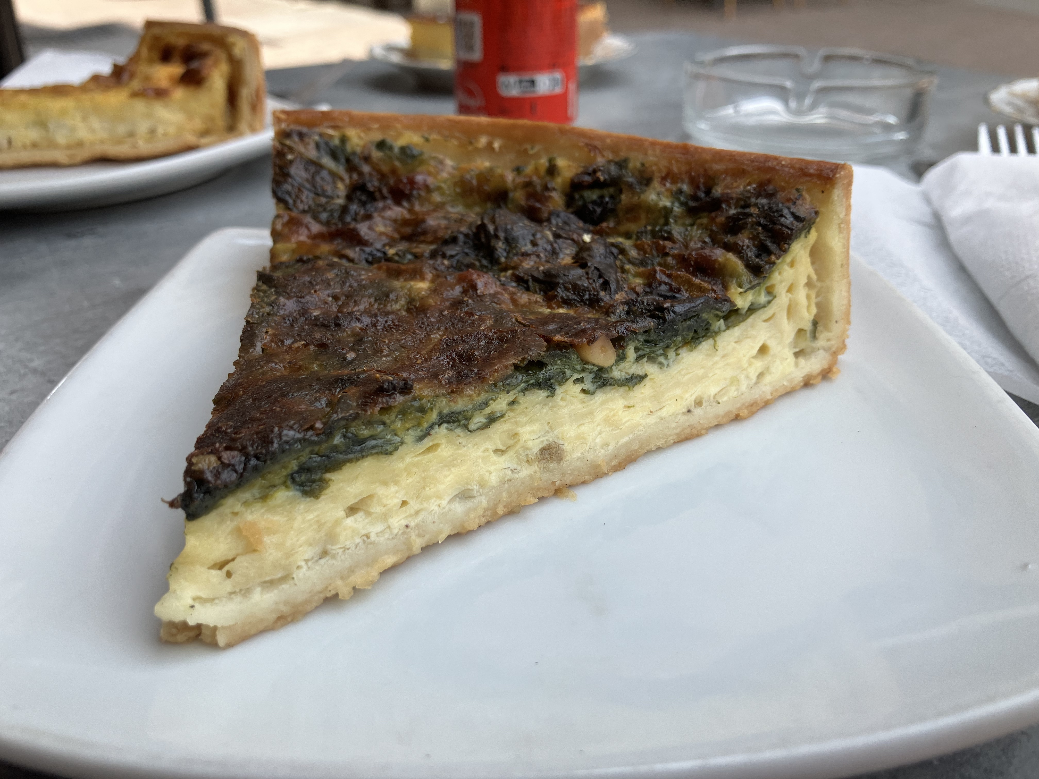 Je ne dirais pas que c'est un restaurant, c'est plutôt un café pour manger un morceau quand on a faim, surtout si l'heure du repas est passée. Nous avons mangé un menu : une part de quiche, un dessert et une boisson : 8,5 €. La quiche au poulet et aux figues était très bonne, la quiche aux épinards et aux pignons de pin était moyenne. Desserts très délicieux : tarte aux pommes et un morceau de flan. La vendeuse était très sympathique, l'endroit était propre et bien entretenu. Il dispose d'une grande terrasse sur la place : idéale pour prendre un verre ! Nous avons aimé!