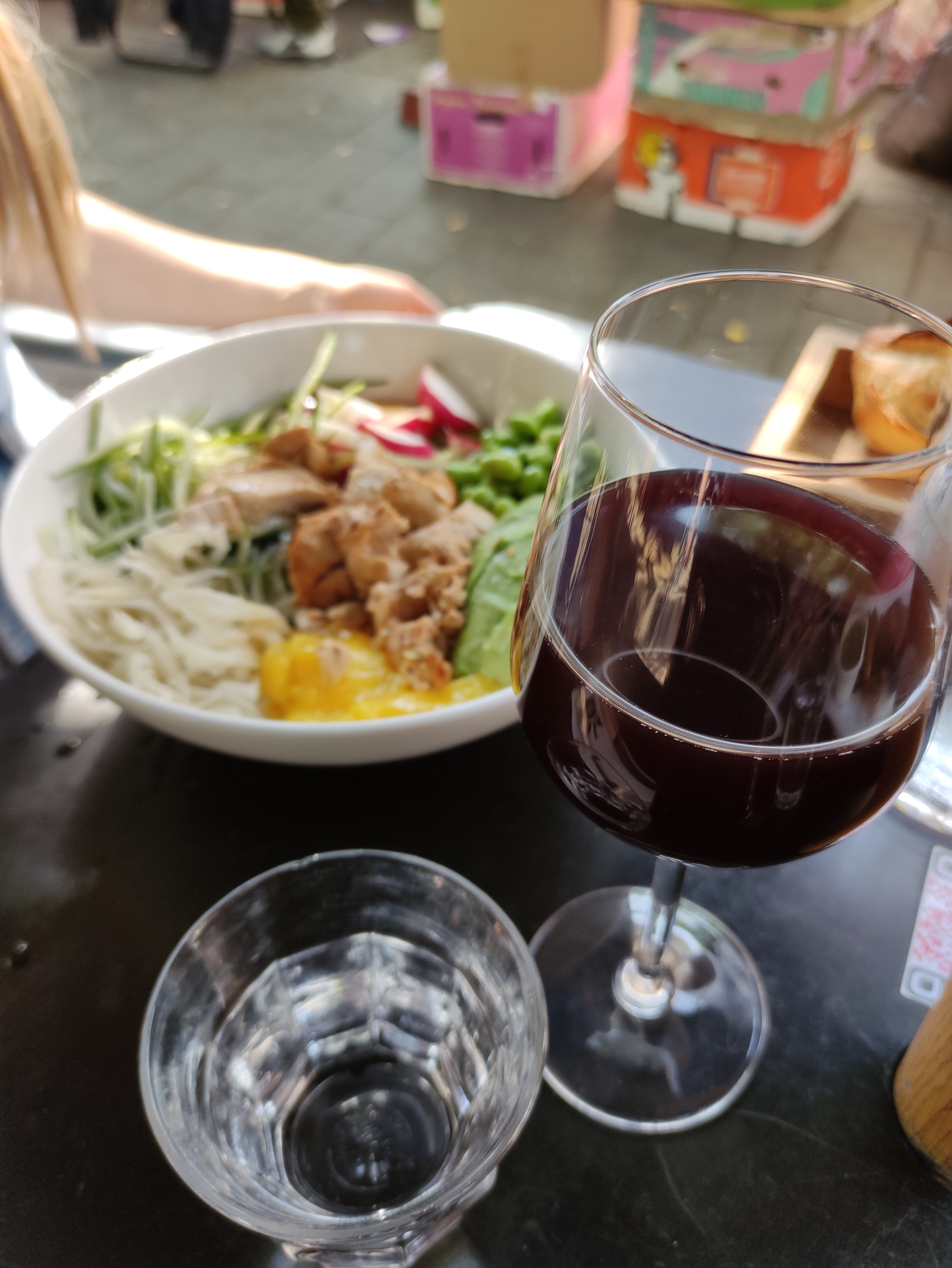Tres bon bar a vin avec toujours un repas de qualité. J adore la salade thaï !