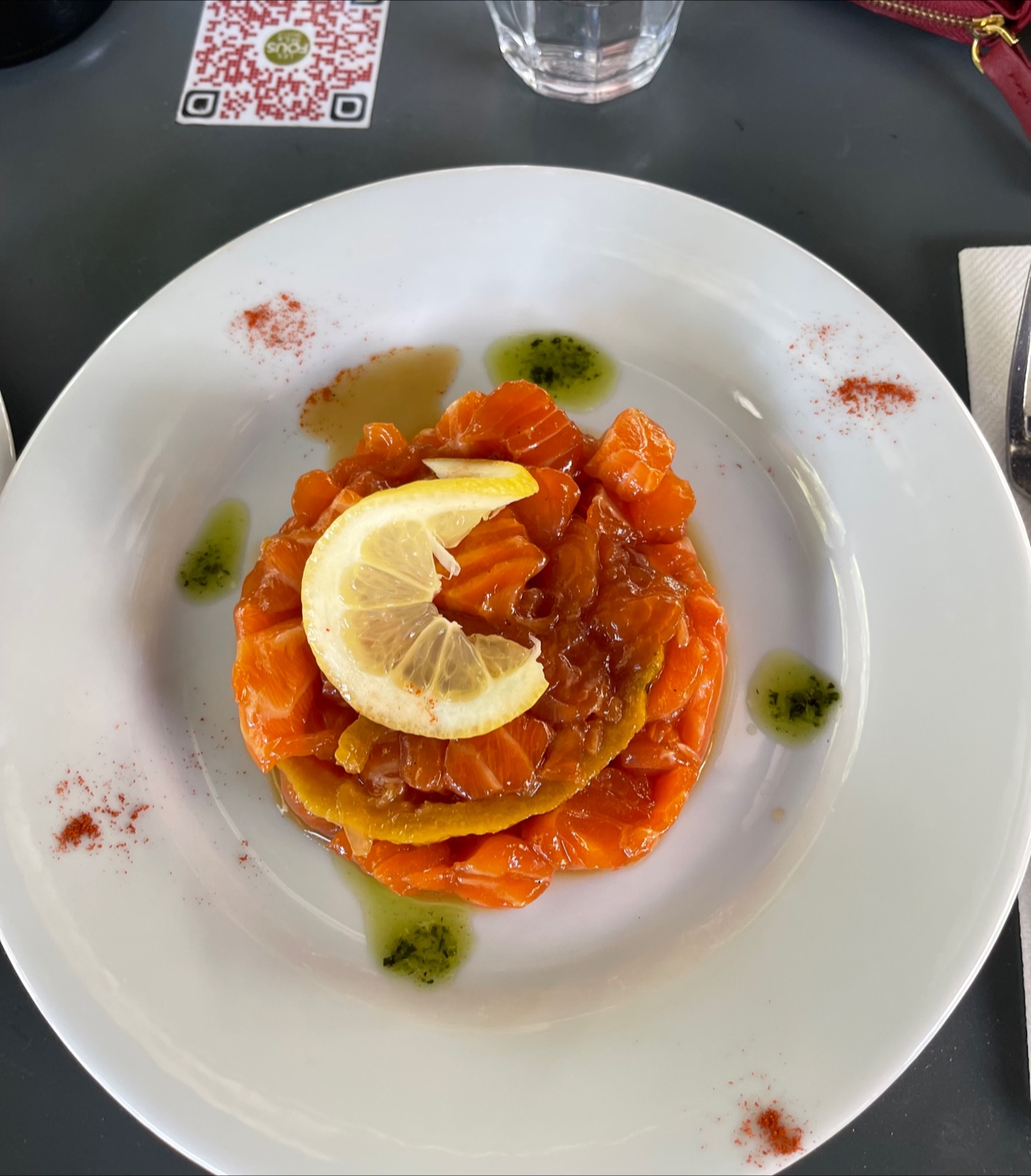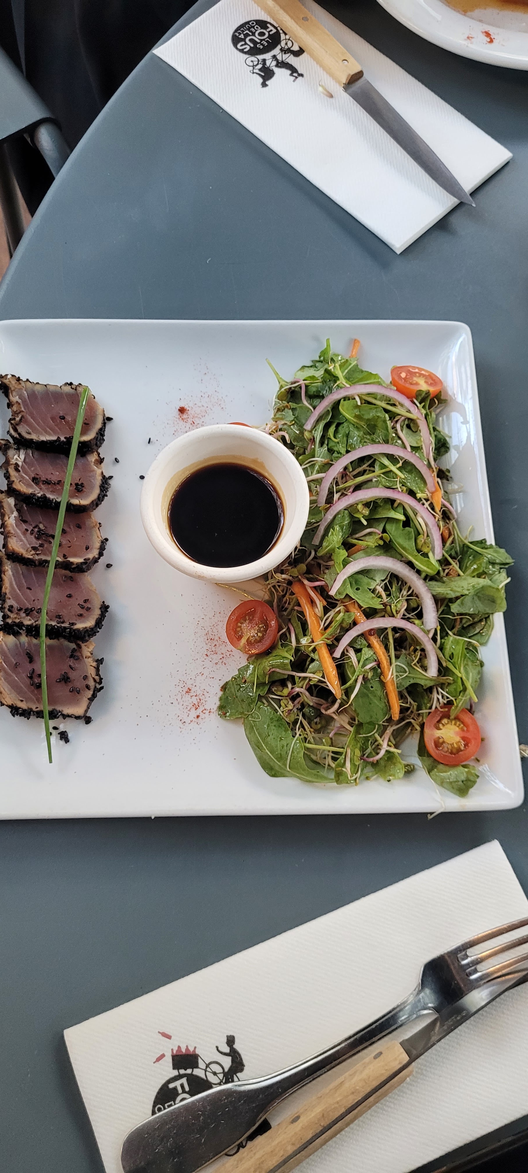 Les couleurs sont très agréable, j'ai pris le tataki de thon aux épices et sésame c'était excellent. En dessert café gourmand également excellent. Restaurant au très bon rapport qualité prix