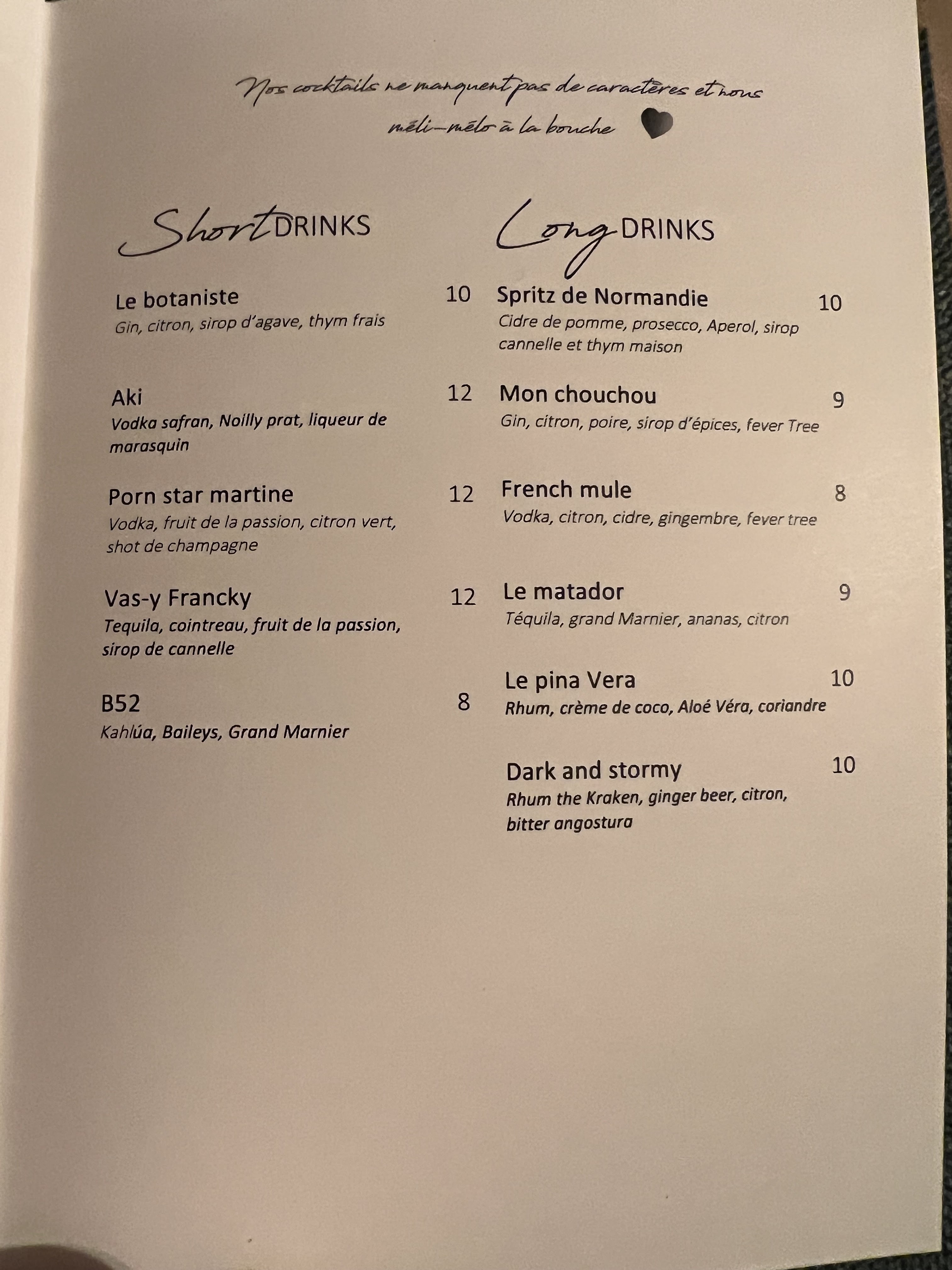 Belle découverte, carte courte et de saison. Petit plus : de très bons cocktails ! Nous reviendrons :)