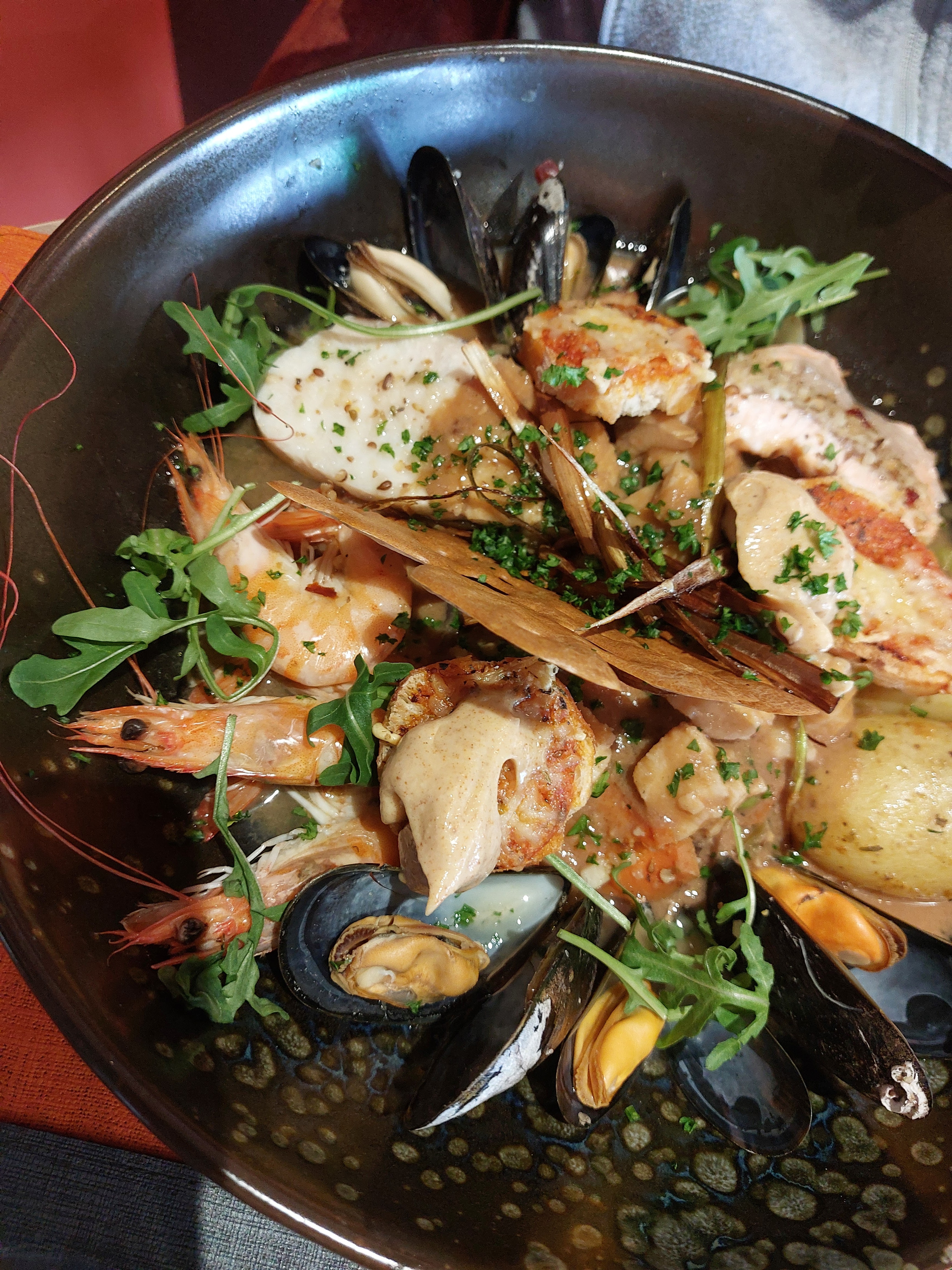 Endroit sympa, St Jacques excellentes, filet de saumon bon, croquettes de crevettes très bonnes mais paella pas top... serveur sympathique