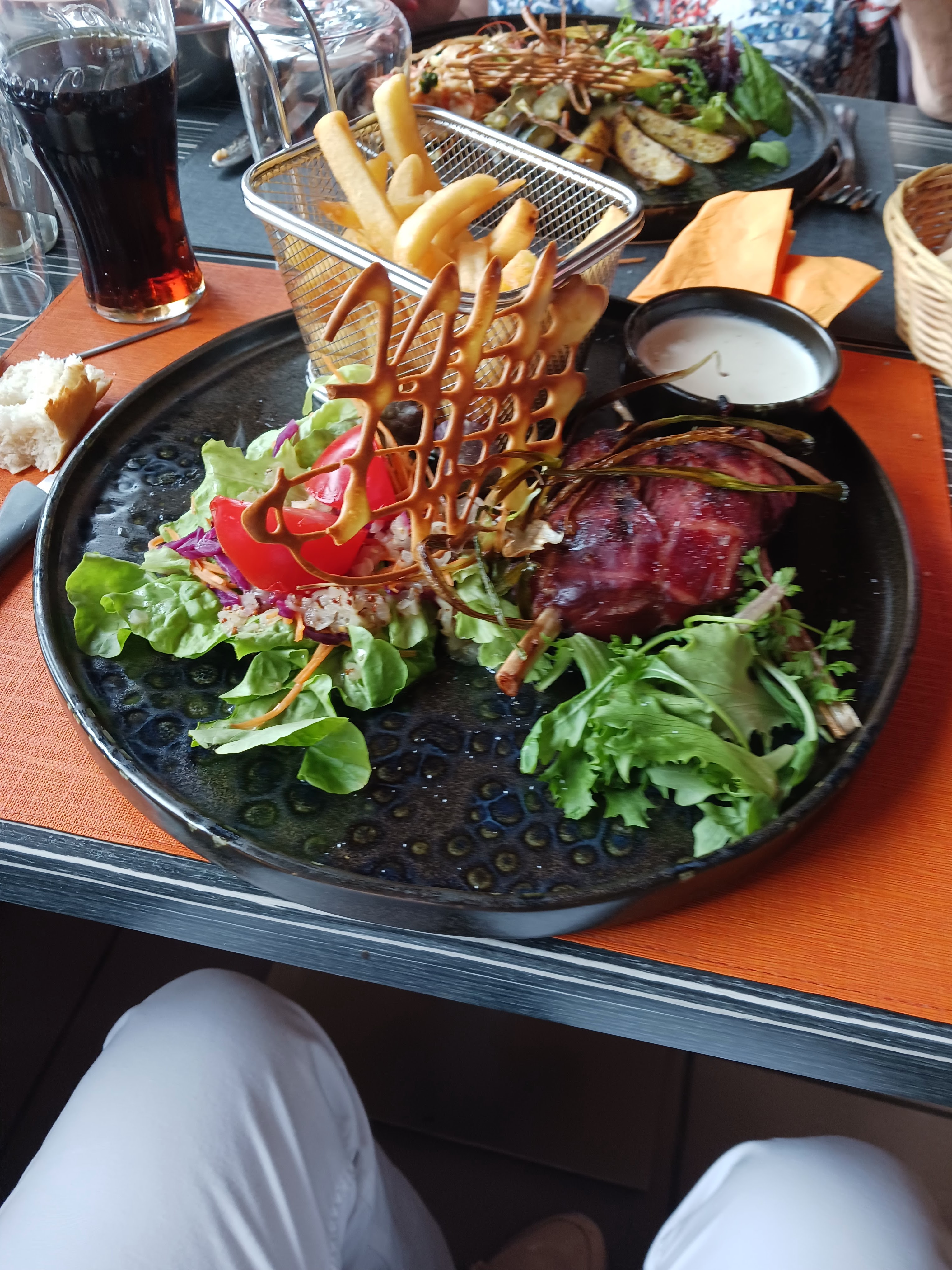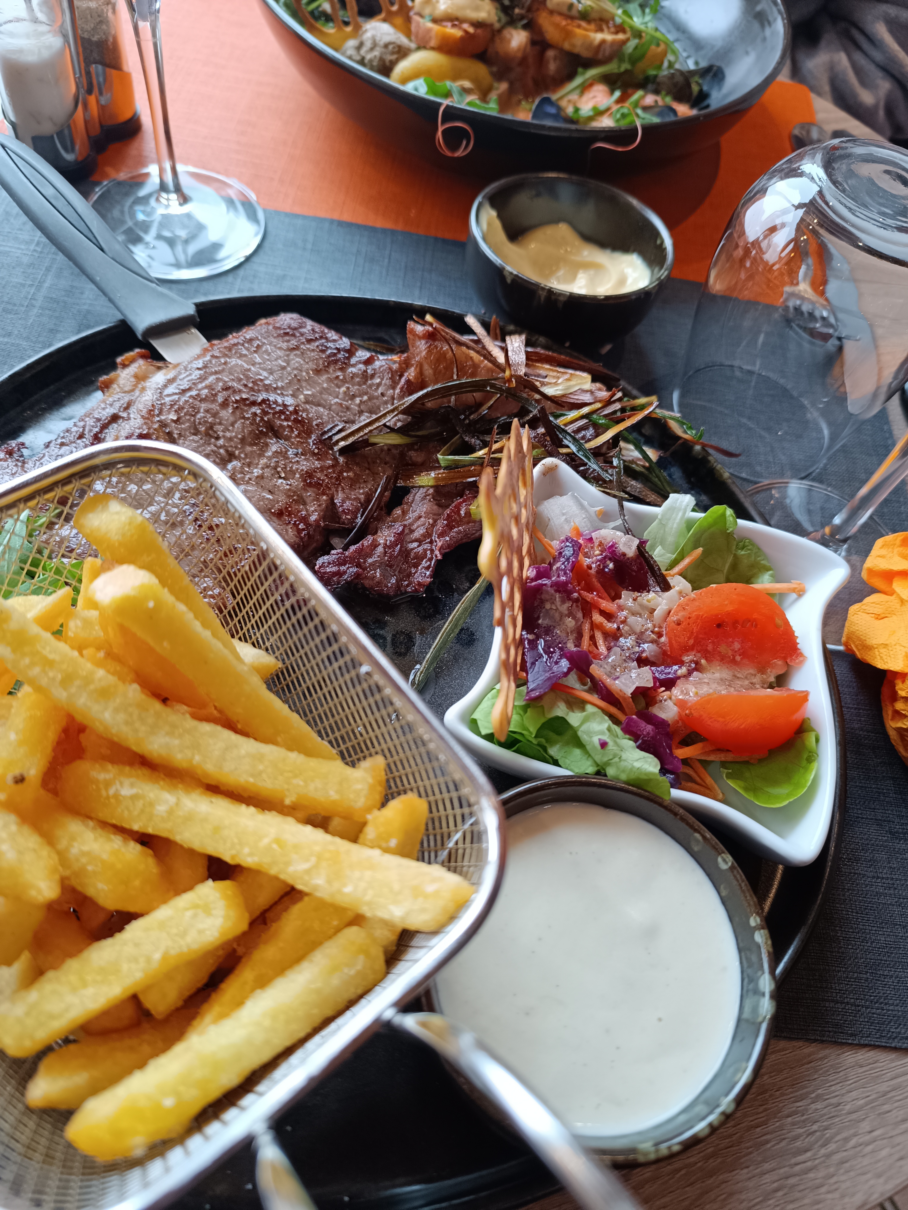 Je me suis régalée ! Des moules marinières, simples, efficaces, avec plein de légumes frais, du goût, ... du plaisir jusqu'aux frites. Bref tout pour être bien ! Un service très sympathique Je recommande vivement !