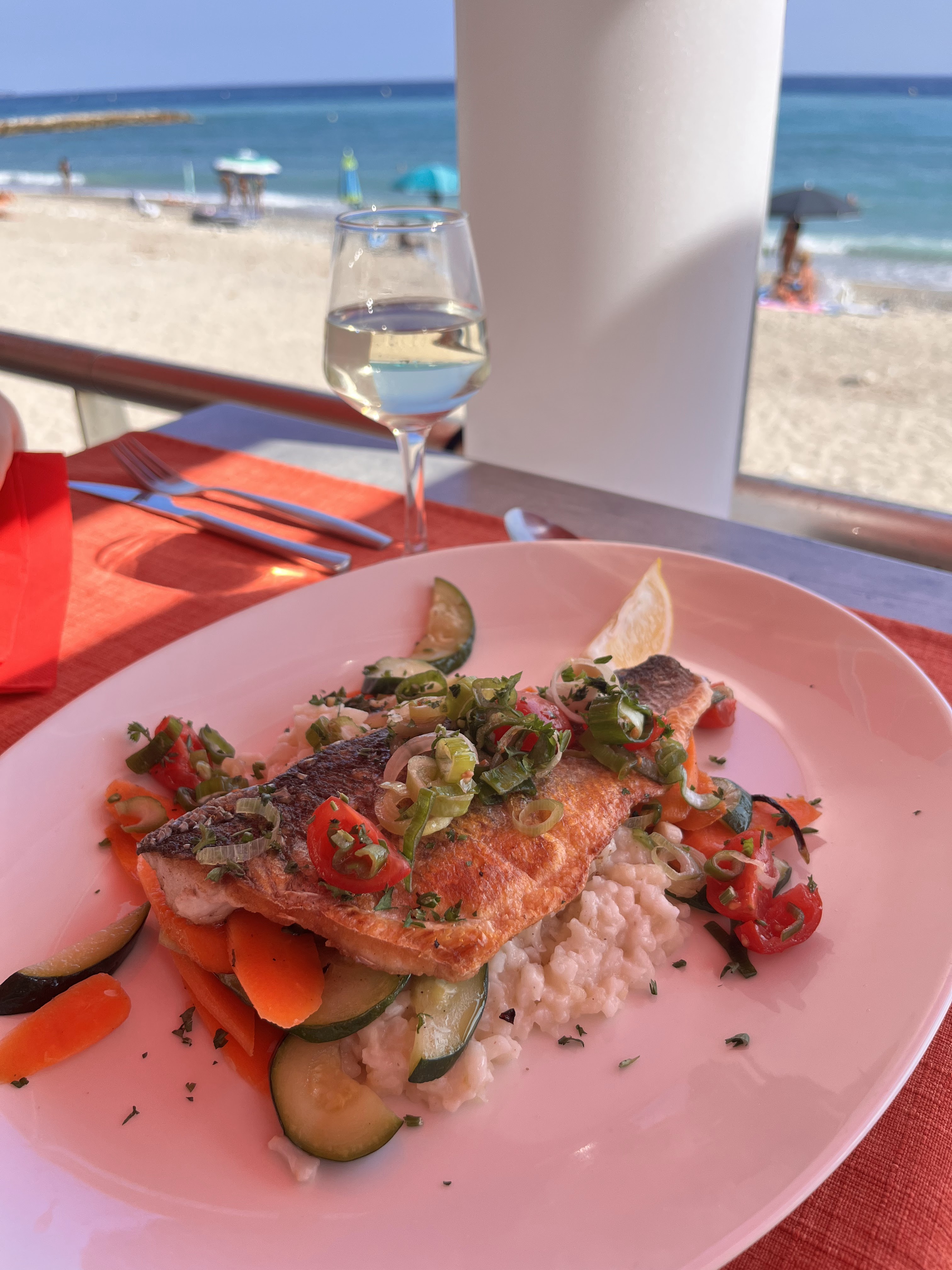 Service et cuisine à la hauteur de nos attentes. Avec les restaurants qui donnent sur la plage et se succèdent nous avons fait le bon choix. Merci à eux.