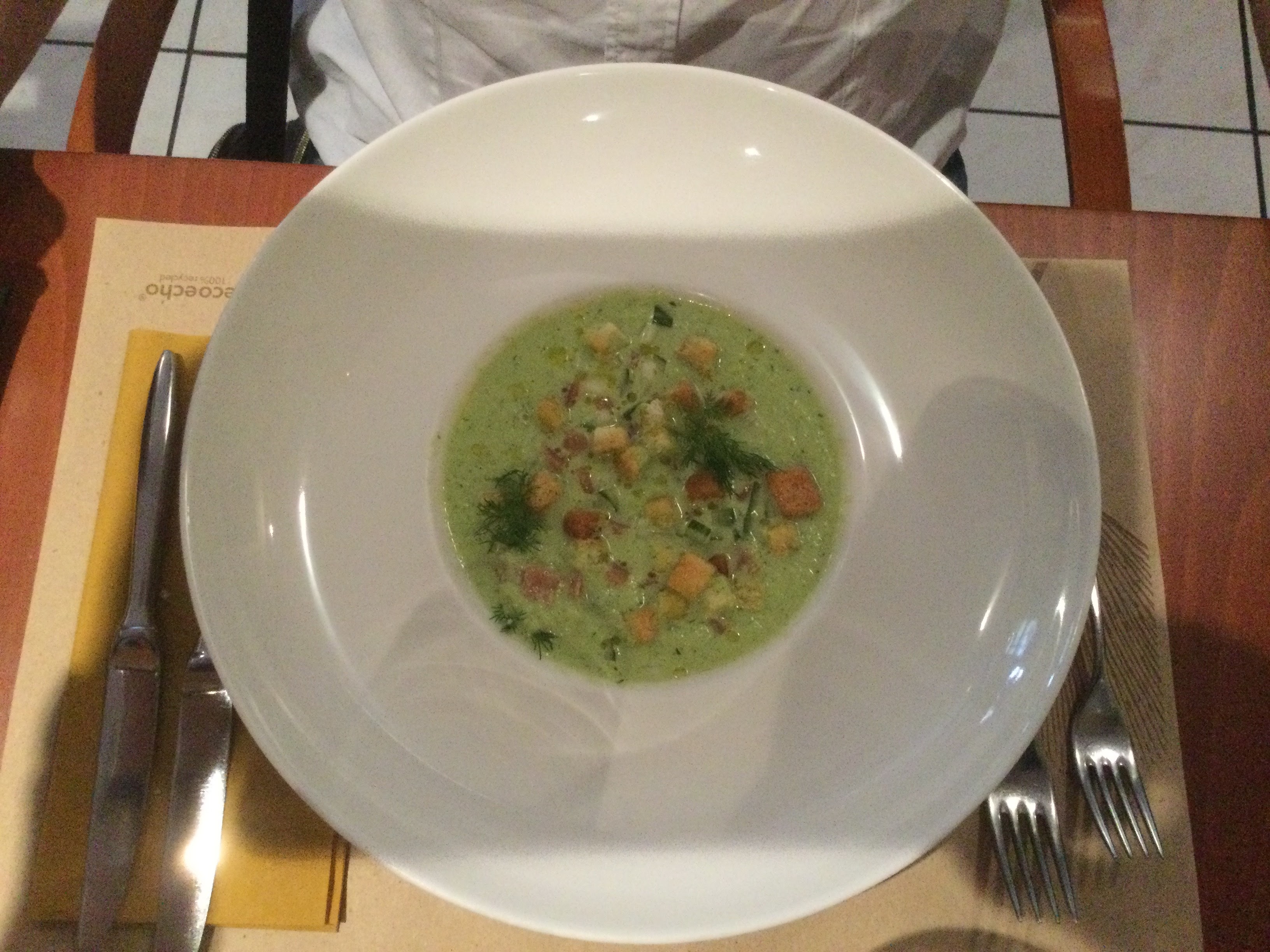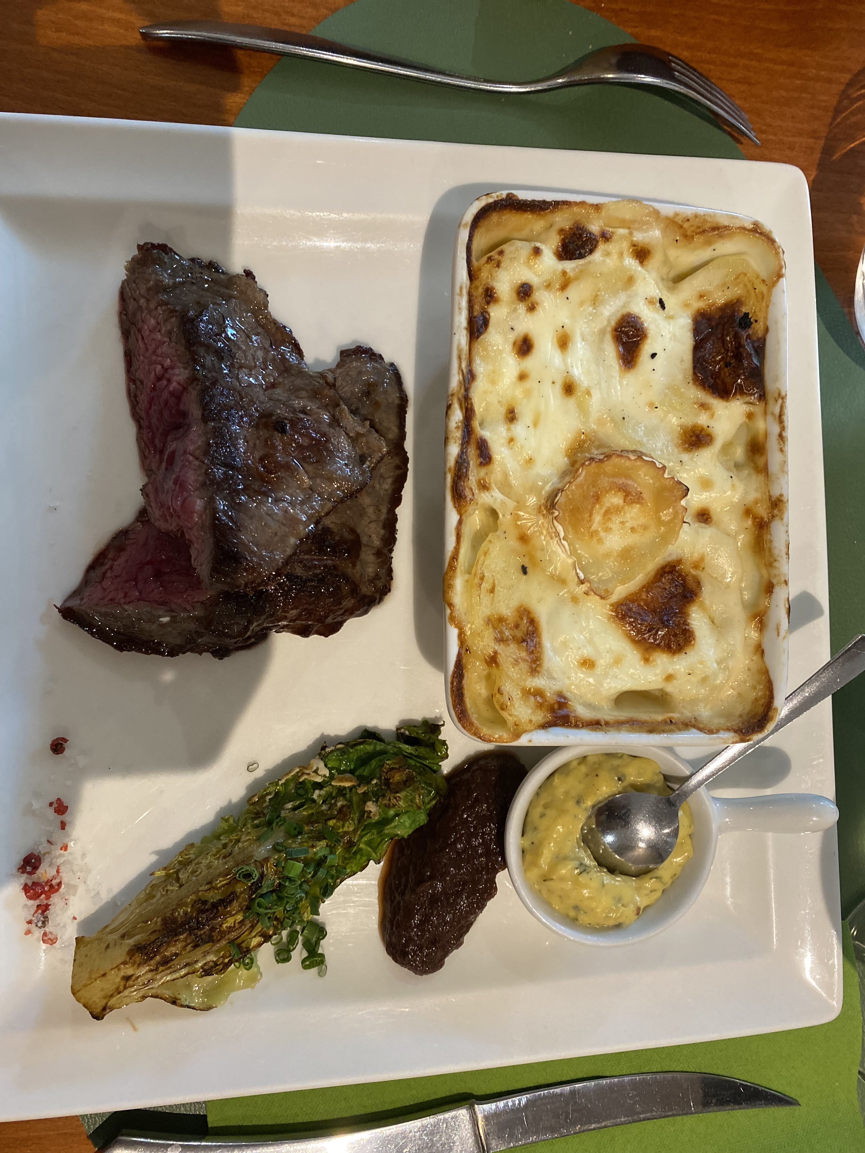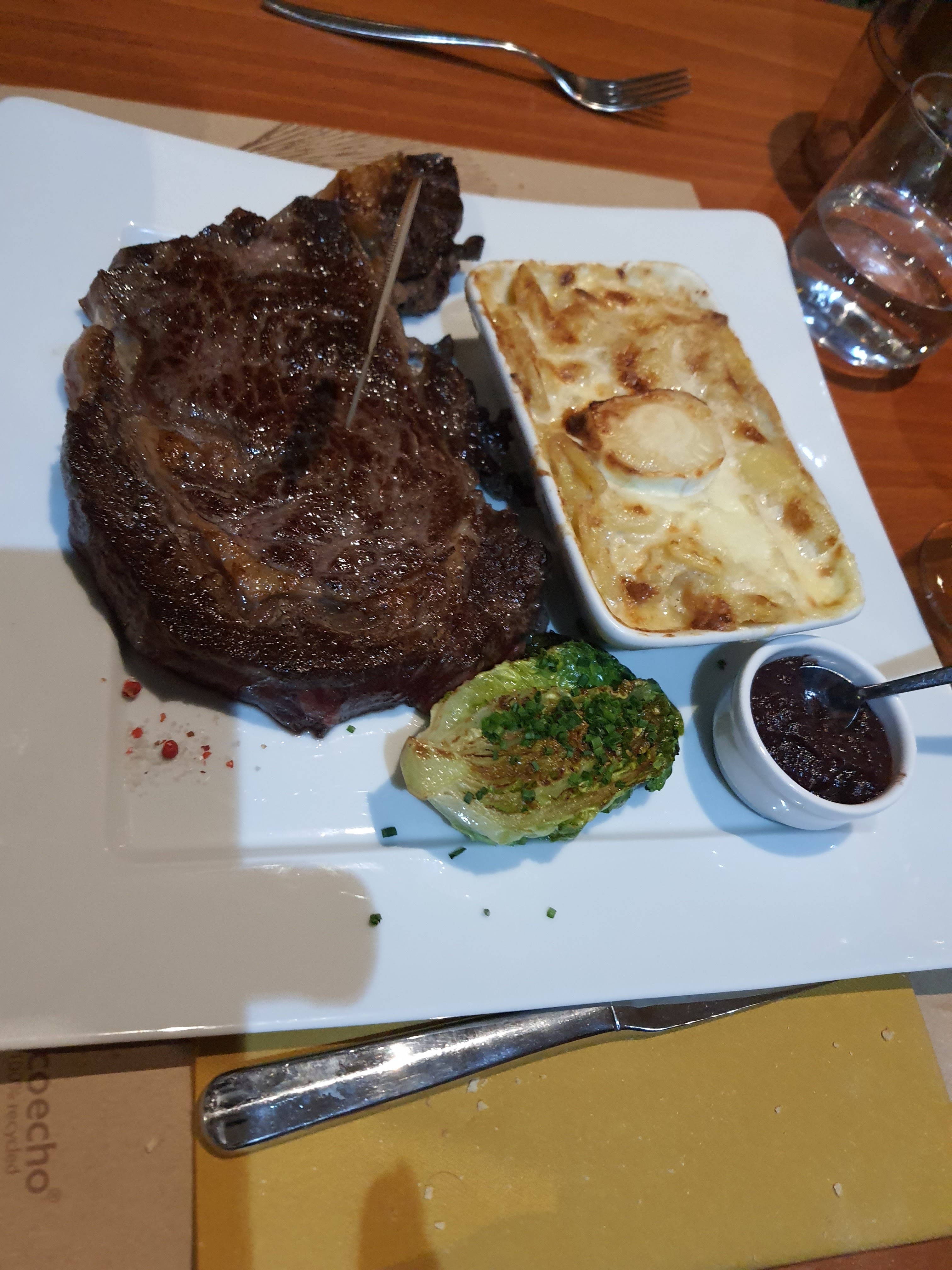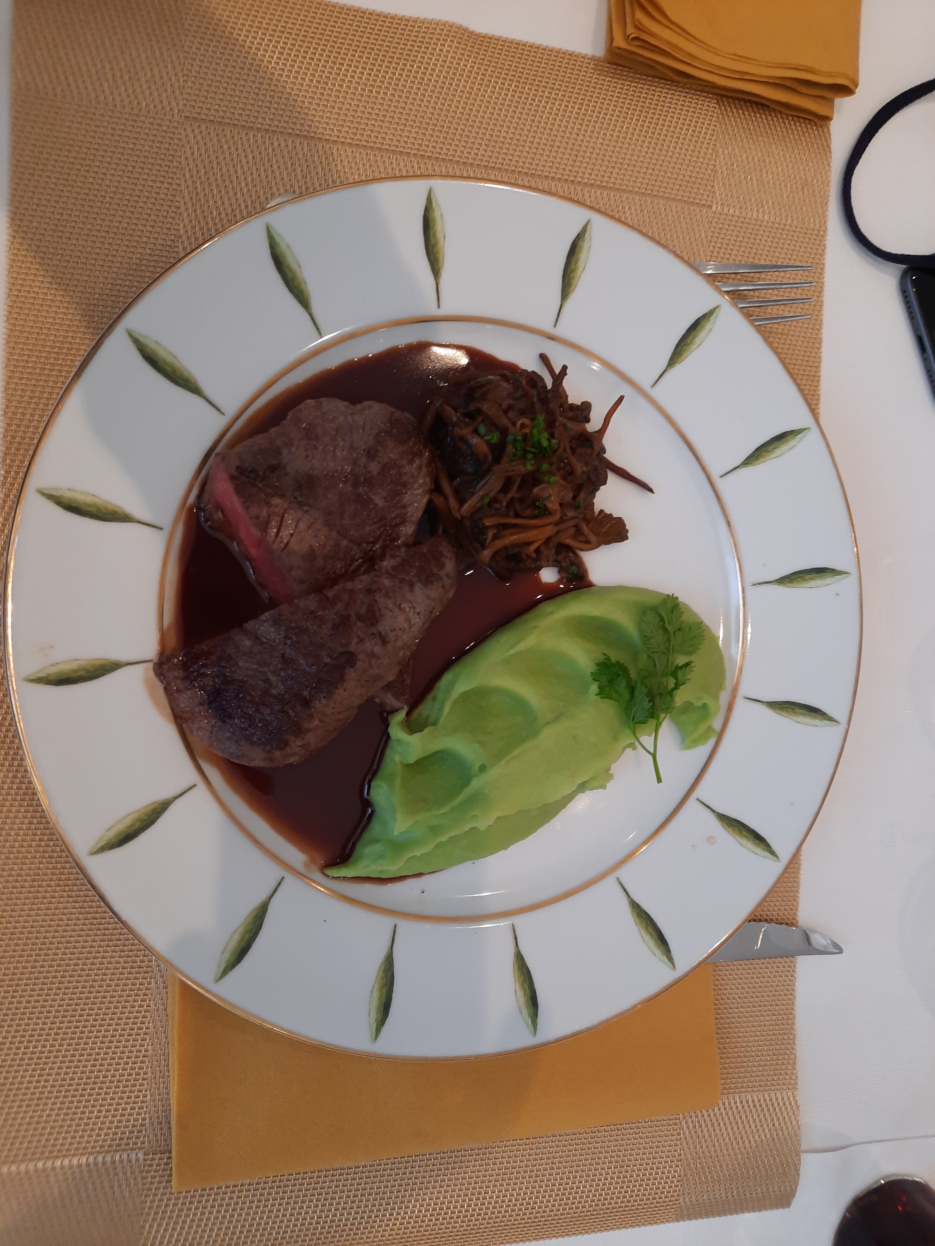 C'était très bon et le service plus aimable que d'habitude... Velouté de maïs excellent, mais ma viande (entrecôte avec du nerf) un peu décevante au vu du supplément...