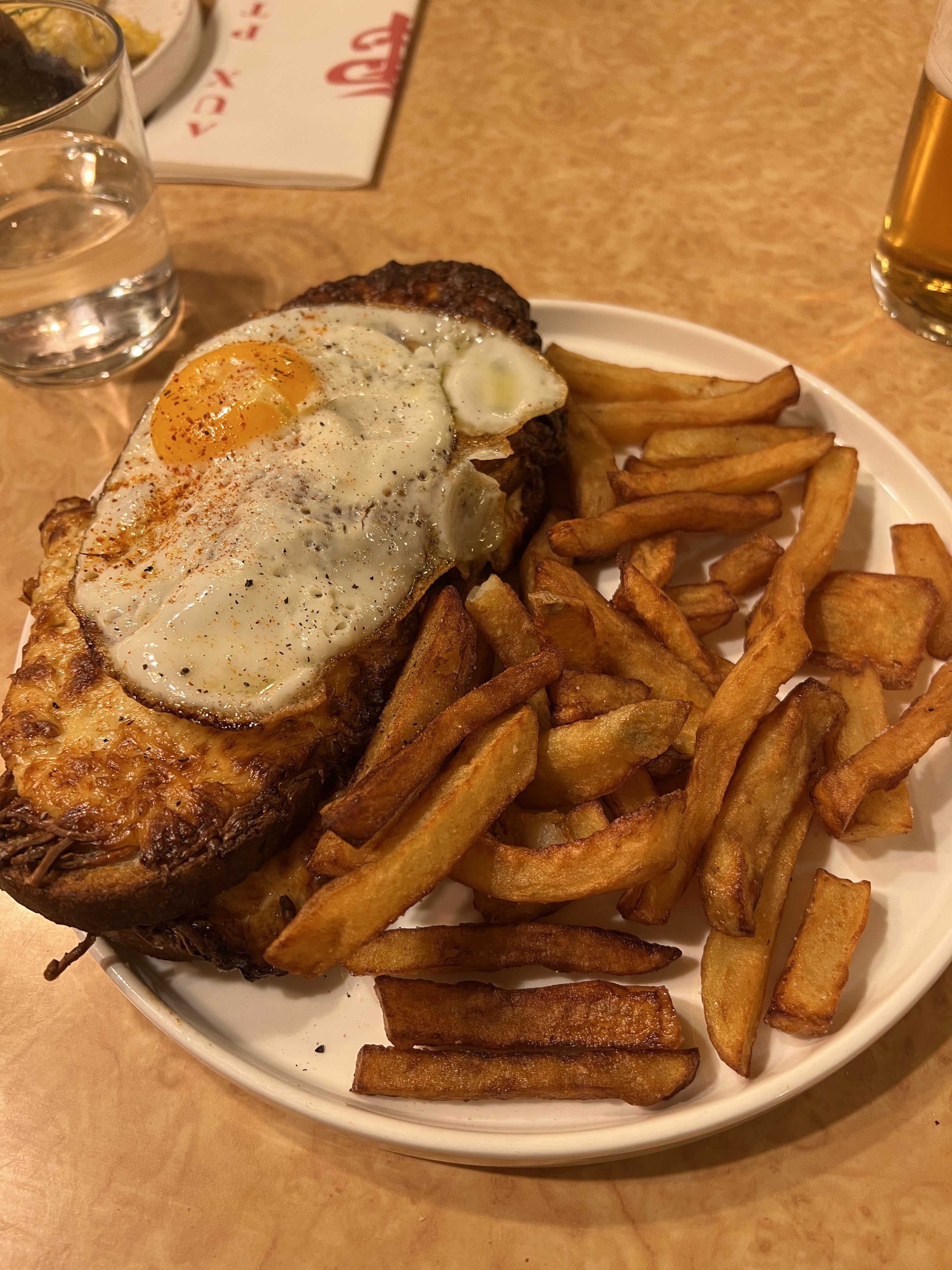 Quel endroit! Nous avons senti que nous faisions un bon dans le temps. Le service à été fait par une jeune femme adorable. Le repas, bavette et poulet étaient excellents! Je crois que la viande est achetée dans la boucherie voisine qui est également une référence. Nous avons passé une agréable soirée dans cette brasserie parisienne où le temps d'une heure nous nous sommes senties à la maison.