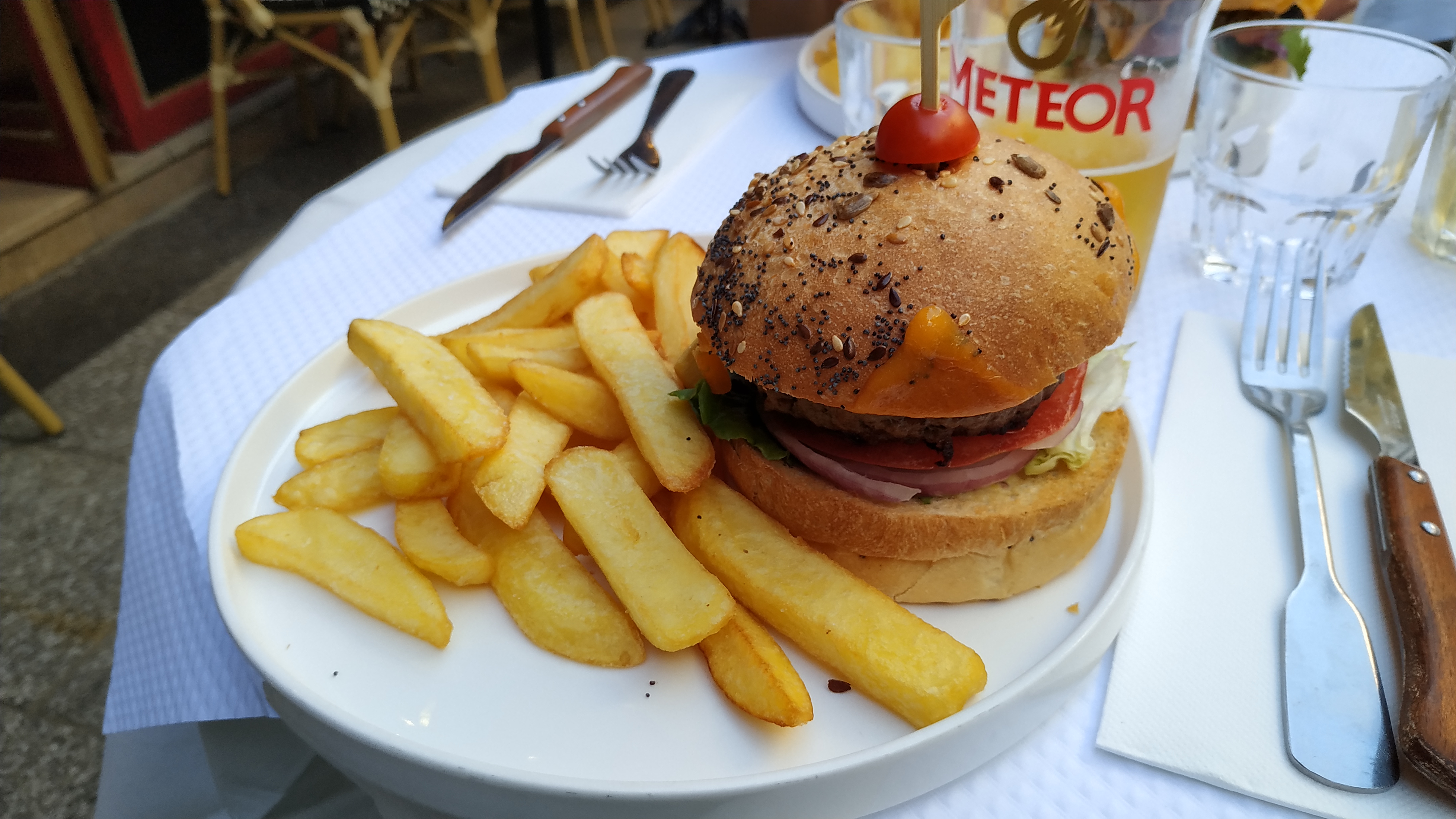 En terrasse sur Rue piétonne. Tout est fait maison. Des frites fraîches maison.🤗 comme on les aiment. Un service prévenant. Un rapport qualité prix. Bonne adresse.