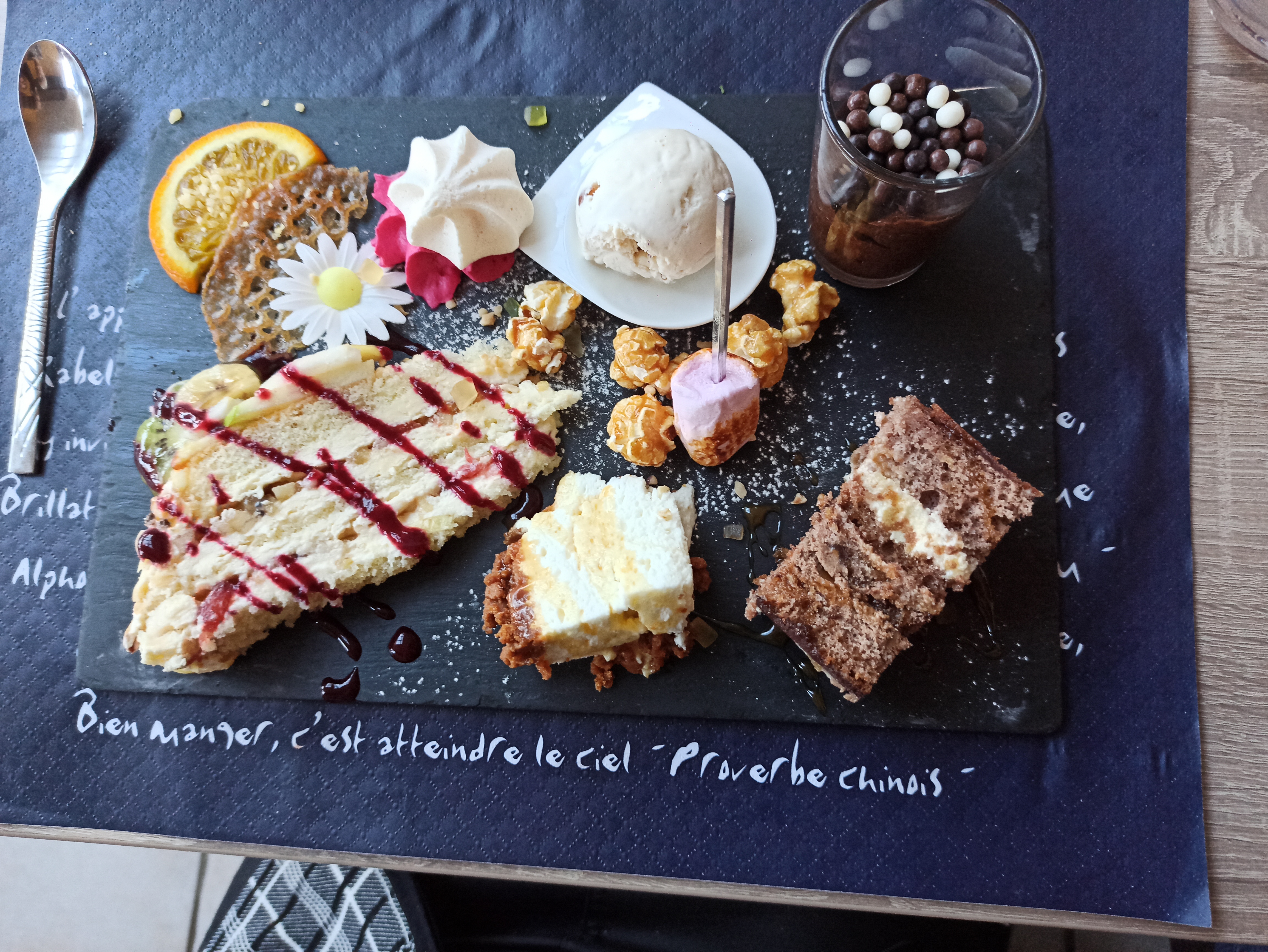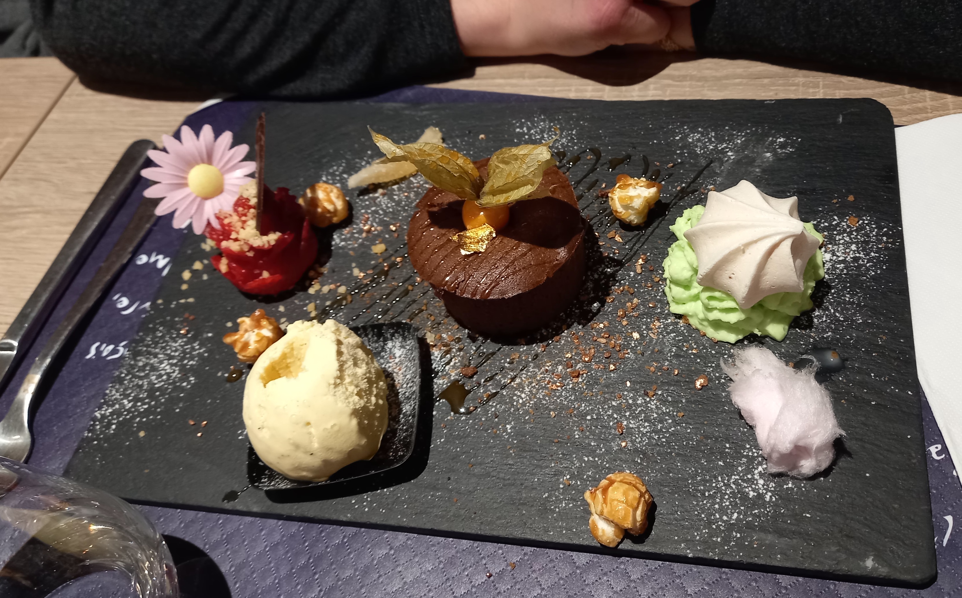 Très beau cadre, personnel très très sympathique , service super, de très bons plats bien copieux, un régal, le café gourmand une tuerie, très bonne ambiance chaleureuse. Très bonne qualité, prix très abordable. Je recommande 😀