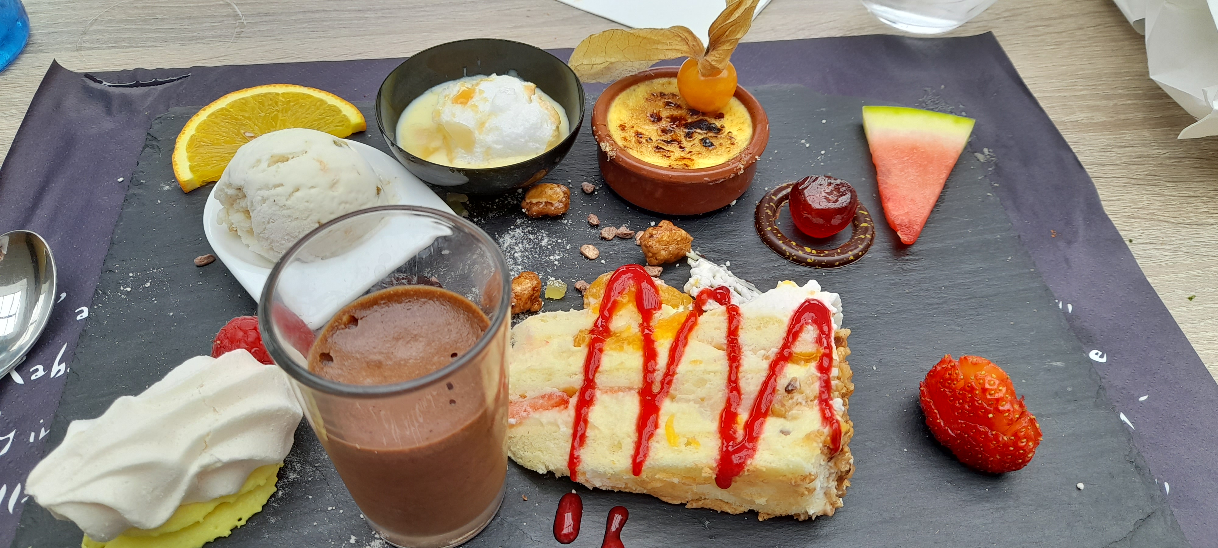 Repas très copieux, carte très diversifiée, que ce soit au niveau viandes ou poissons,et très large choix pour les desserts. C'etait délicieux et en plus le personnel est sympathique. Je recommande.
