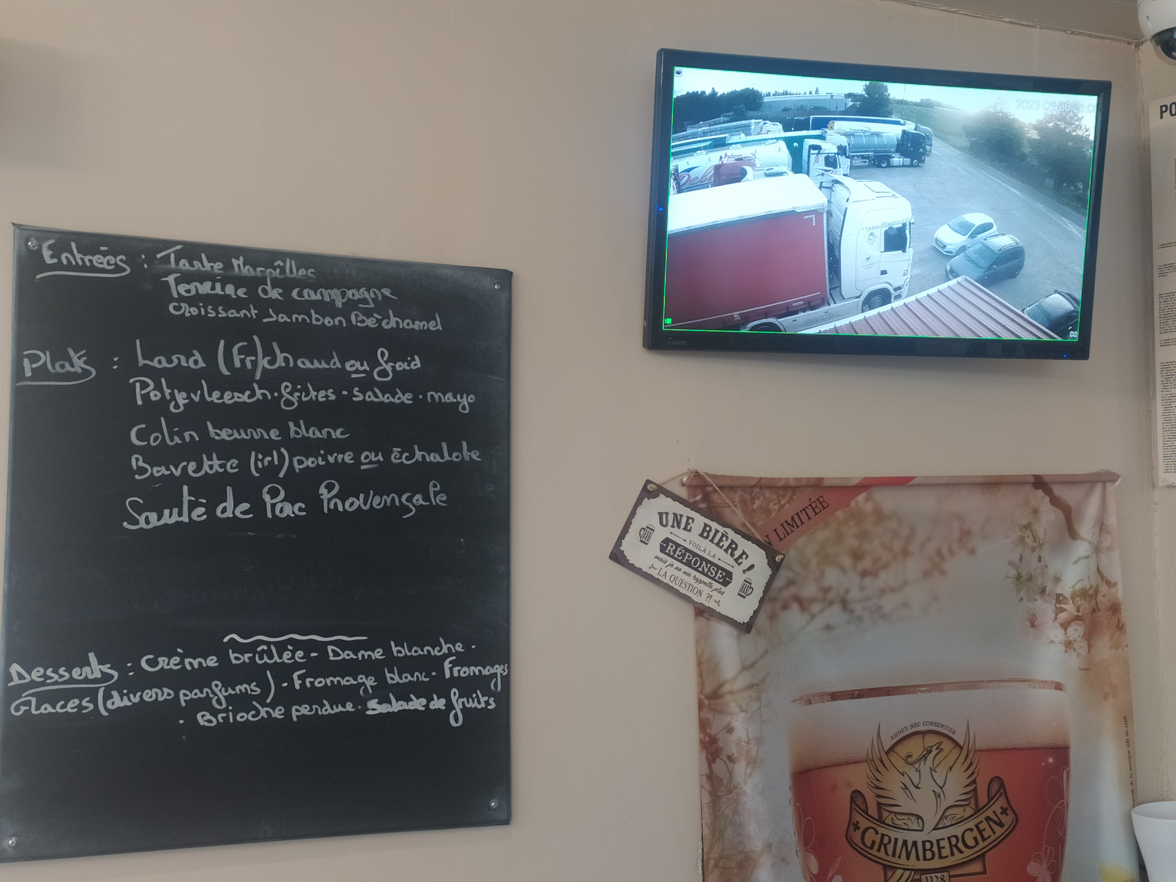 Bonne cuisine patron, patronne sympa endroit propre. Parking moins de 10 camions,
