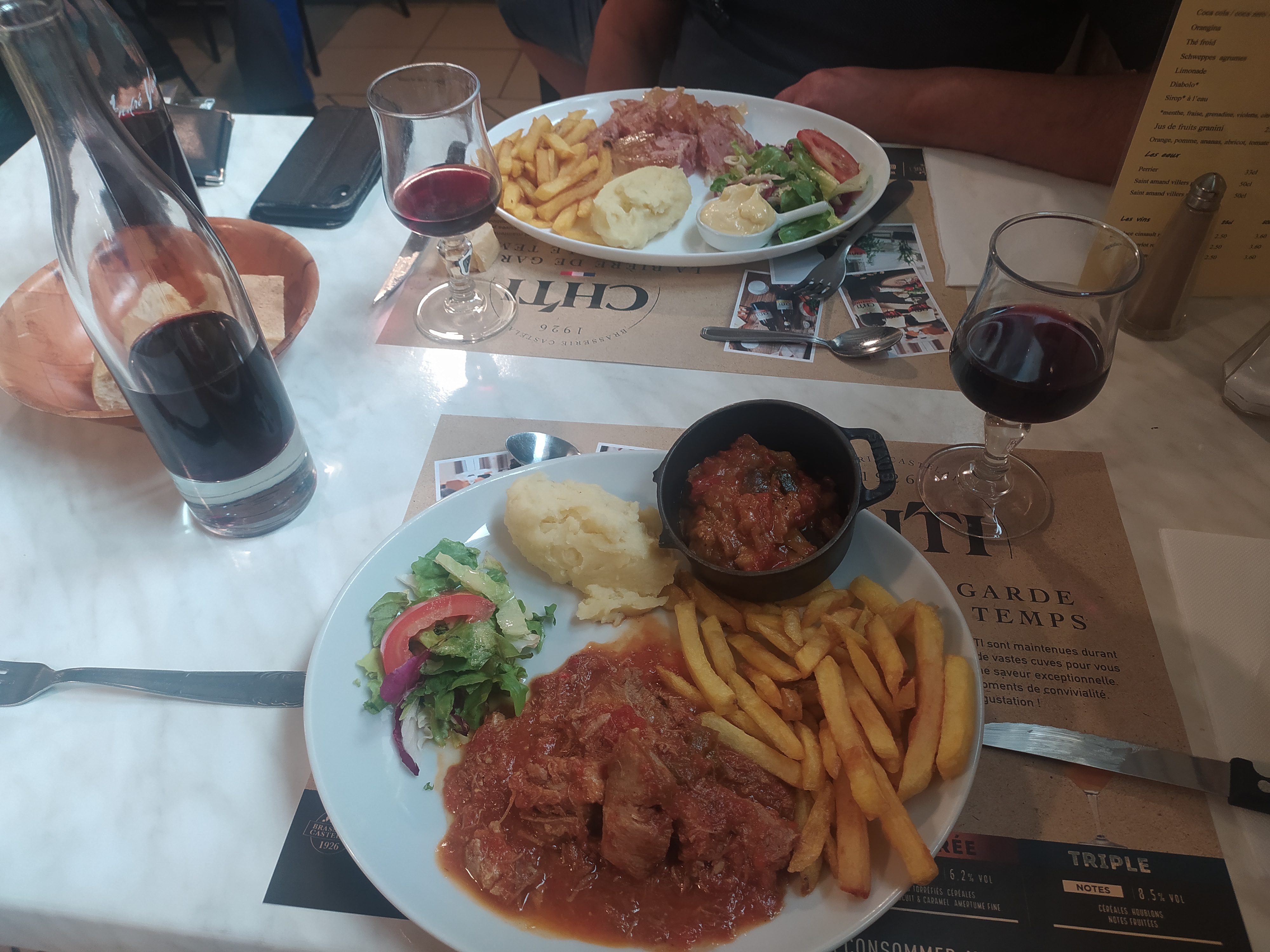 Bonne nourriture . Prix du bar raisonnables pour la France. Pinte à 5 €. Pas de wifi