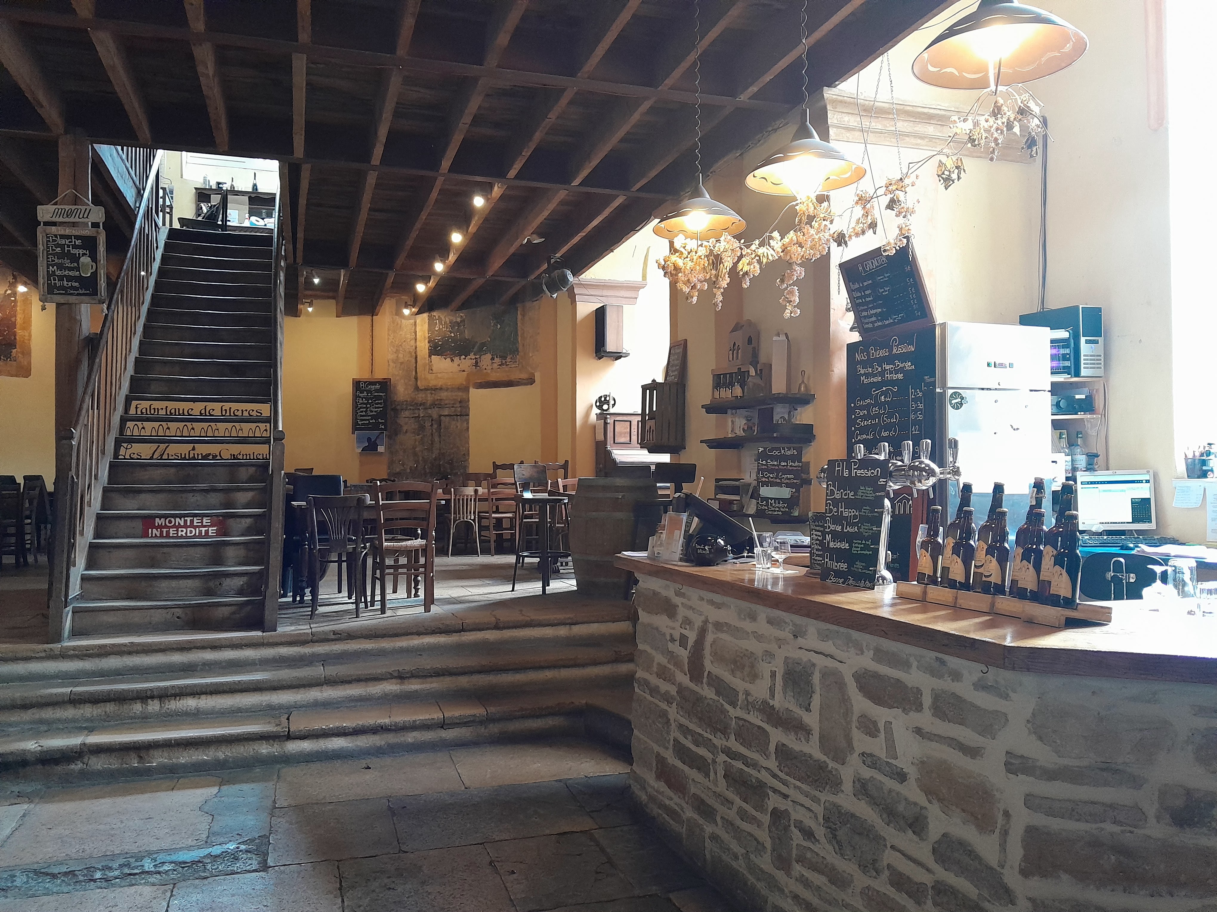 Une petite brasserie artisanale nichée entre des murs chargés d'histoire et de charme. Les bières sont bonnes, l'accueil simple et avenant, l'ambiance détendue. À dix-sept heures, le brasseur propose une visite commentée des lieux.