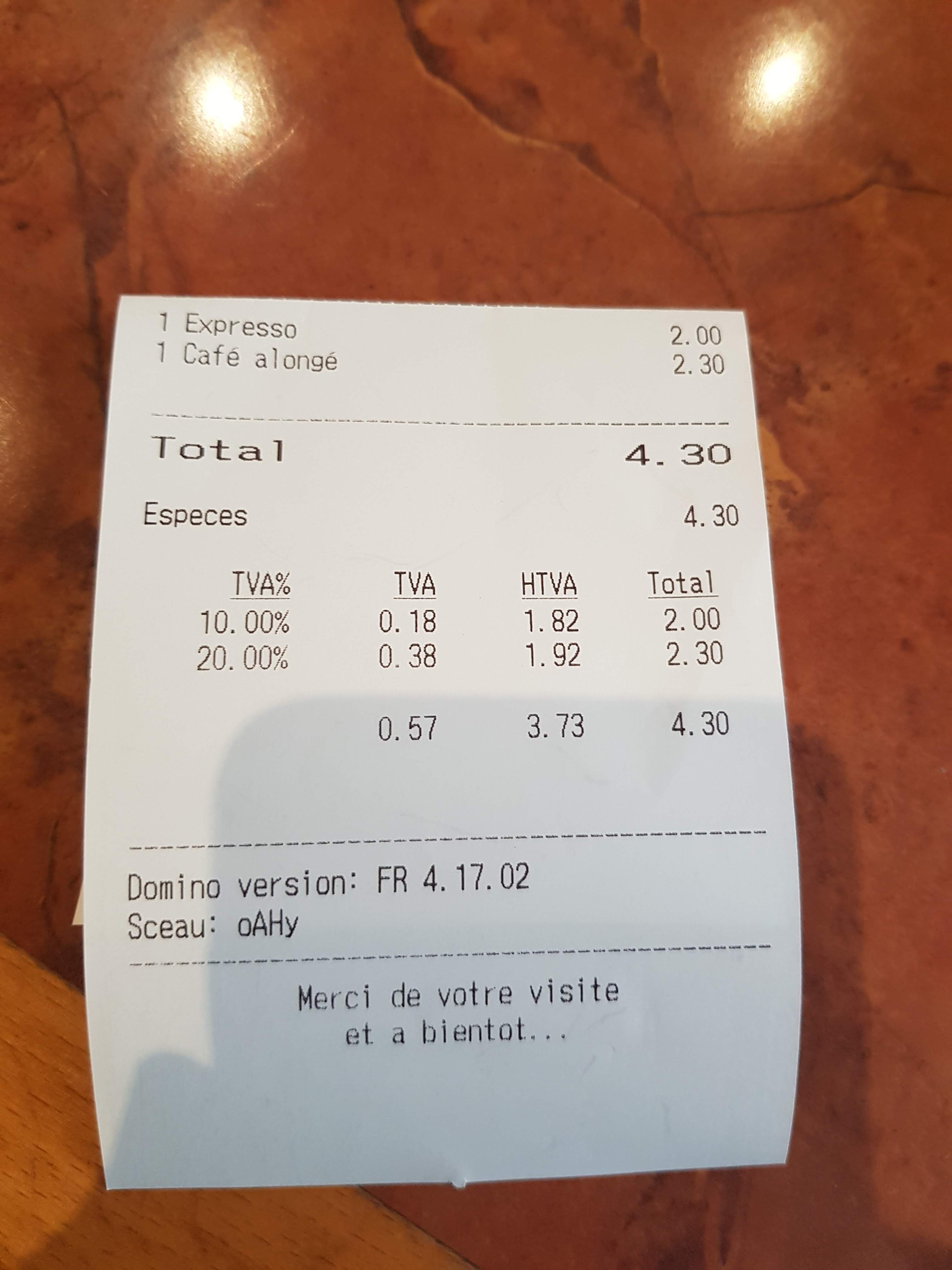 10% TVA pour un Café normal et 20% TVA pour une allongée !!!!!!!