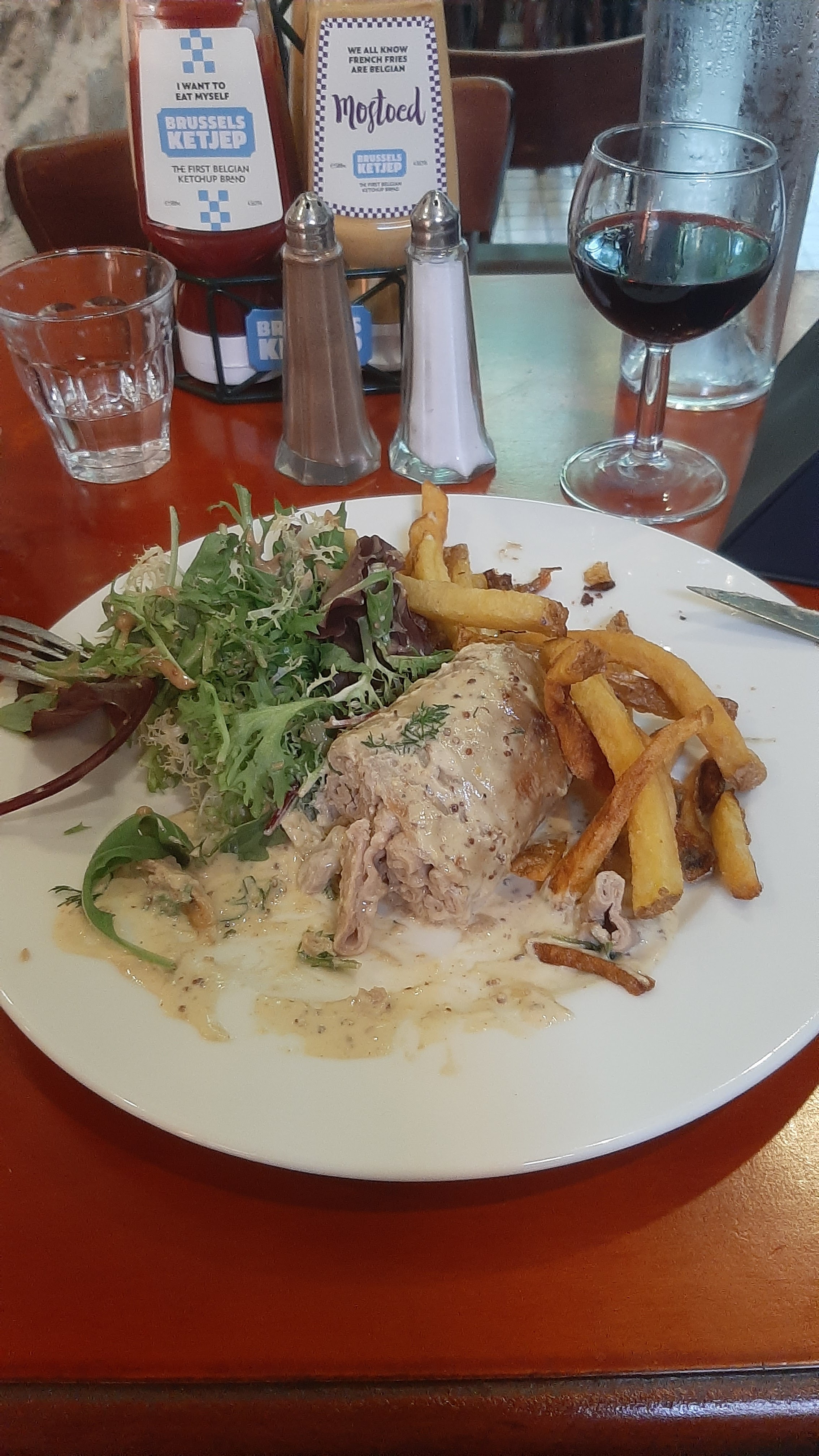 Bistrot super sympathique, bonne ambiance, personnel accueillant et compétant, j’ai goûté l’escalope milanaise, assiette copieuse et aussi le Burger maison, une tuerie , assiette aussi copieuse, allez demain j’y retourne ! Ha oui la bière est aussi un délice !