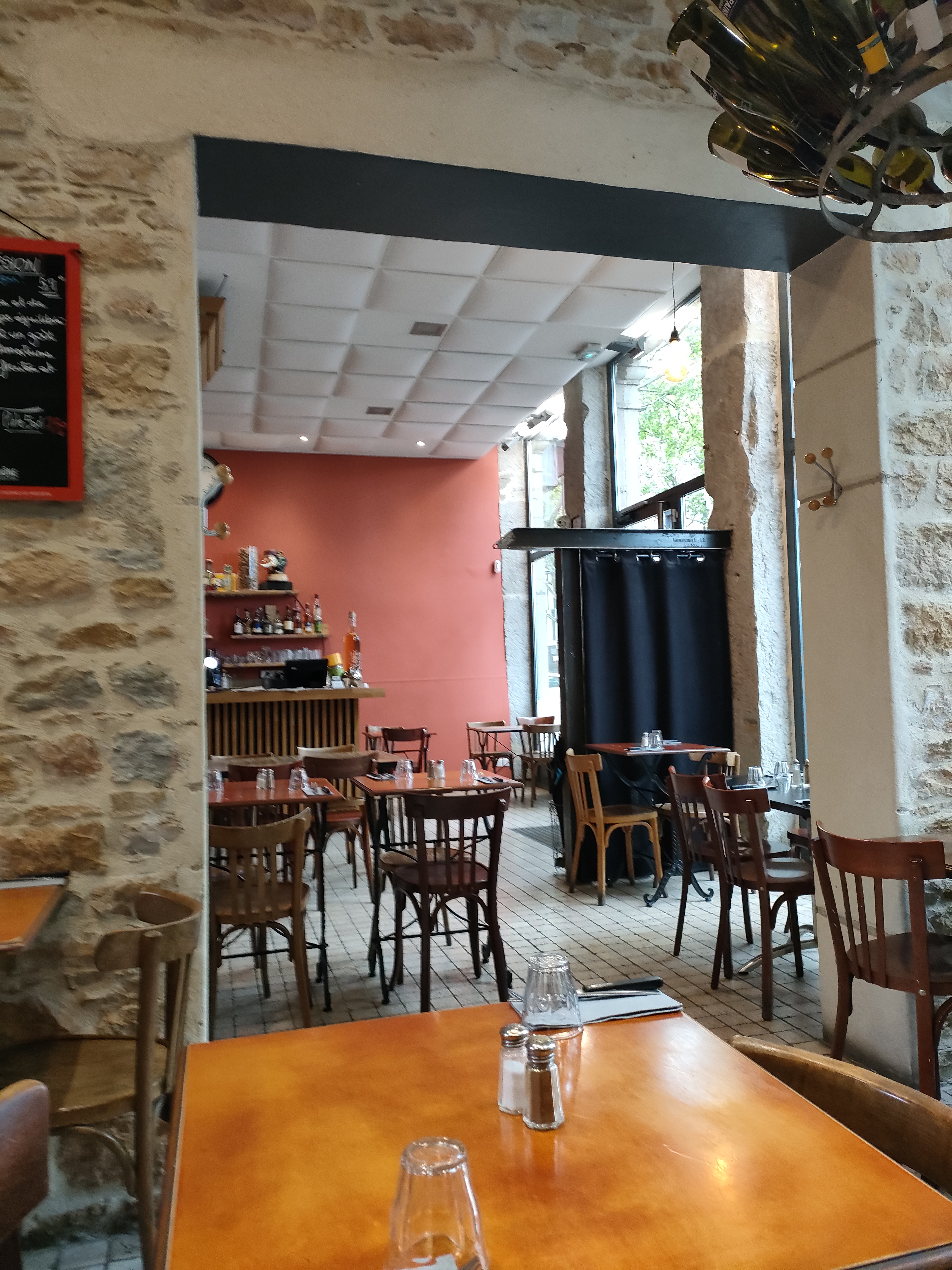Trop de plats manquants burger, tartare, canette... On s'est rabattu sur le faux filet charolais du jour un peu dur à 18€ sauce poivre très bonne et bon gratin dauphinois. Service agréable mais manque un peut de confort dans la salle entre les table branlantes et les chaises qui font mal aux derrières...
