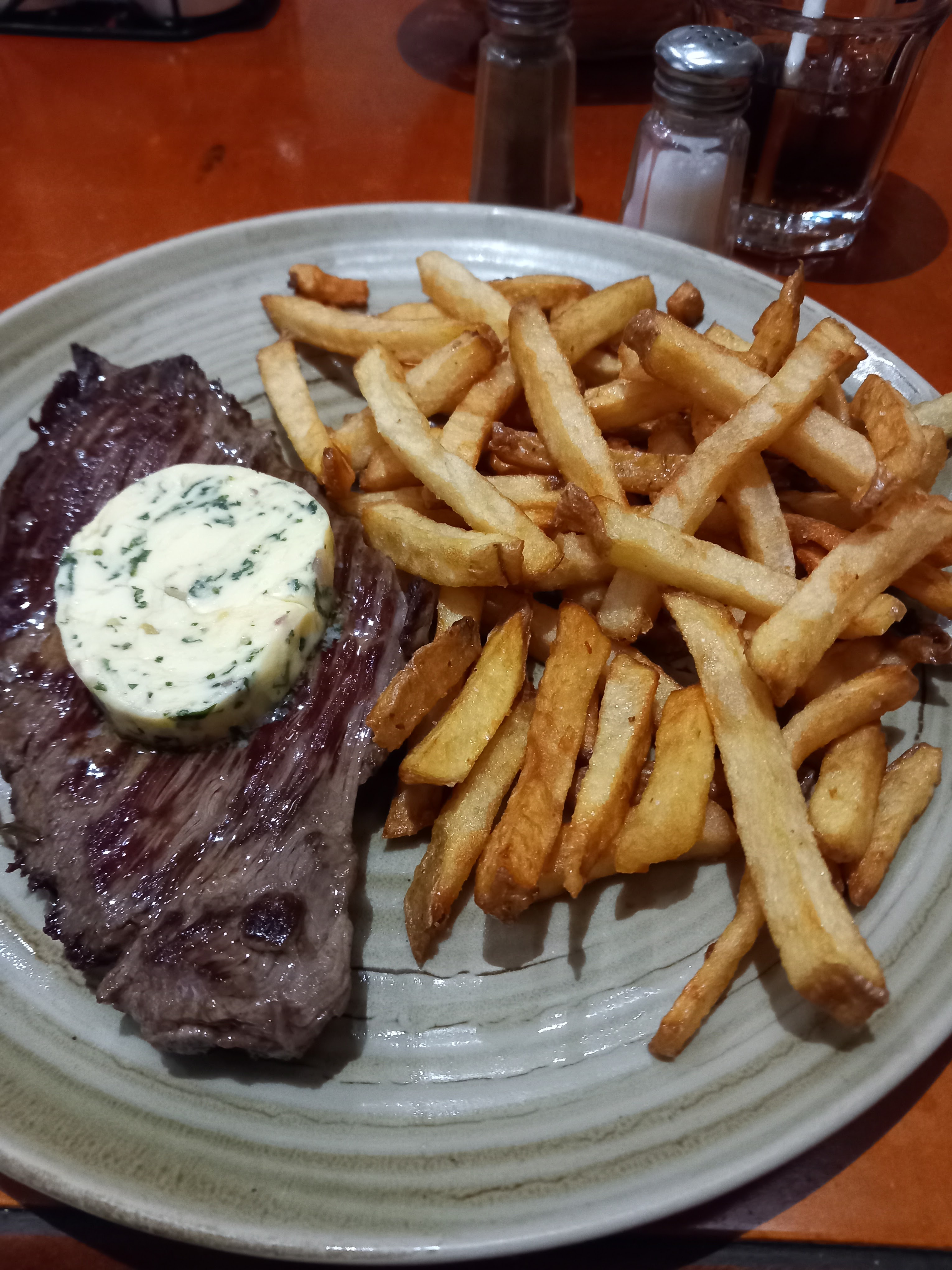 Nous avons trouvé ce restaurant complètement par hasard, et très franchement c’était excellent. La carte n’est ni trop grosse ni trop petite. On a le choix en entrée de choisir une petite ou une grosse salade, ce qui est un bon point vu que généralement je suis plutôt entree - plat . Pour le plat, j’ai pour ma part opté pour une bavette sauce au poivre et jack daniel’s. Ma copine a elle préférée la bavette sauce Marcelin. Juste excellent ! Nous avons adoré ! En bref je recommande, nous y reviendrons