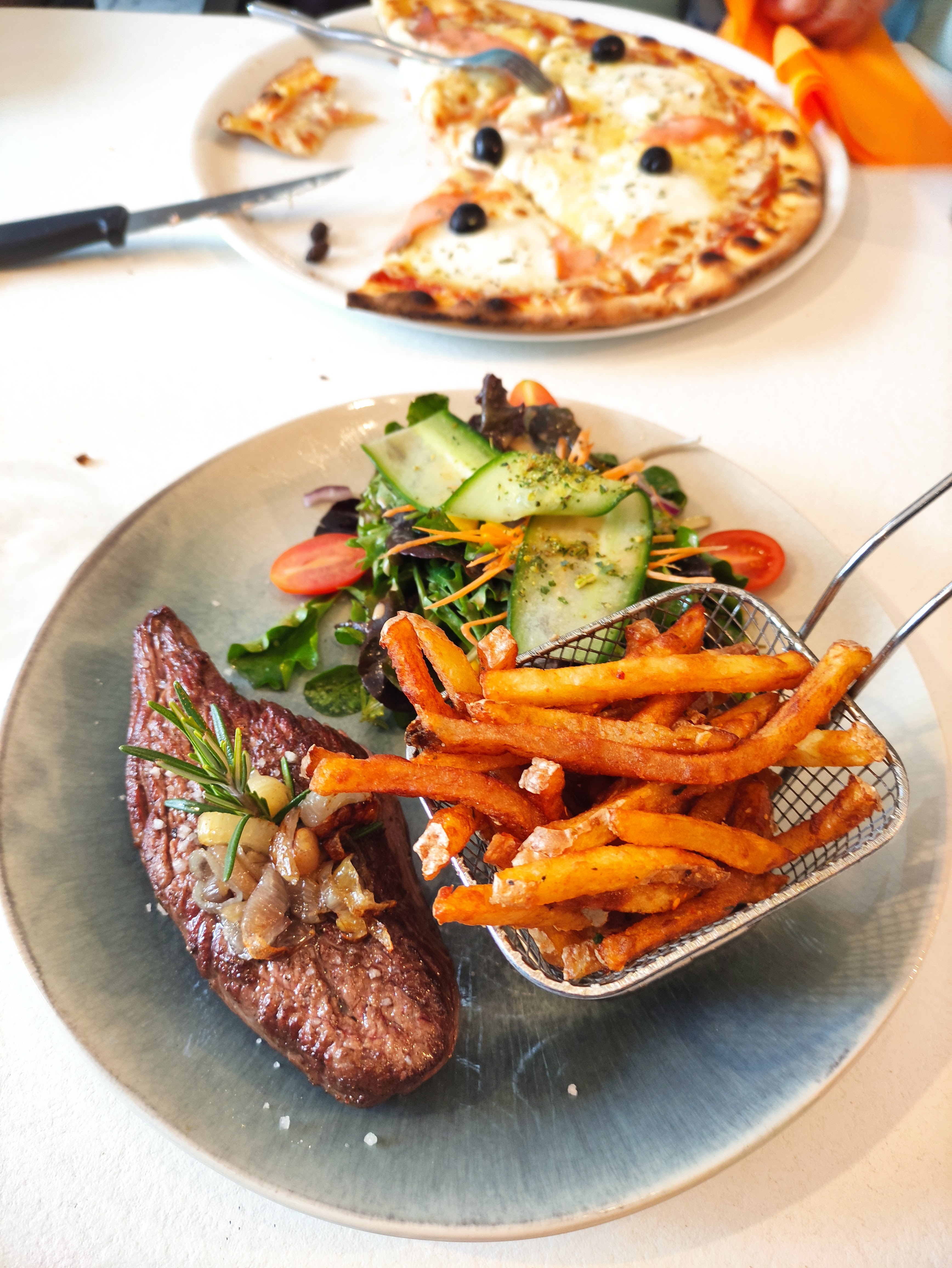 Très bon accueil avec une serveuse très à l'écoute, souriante. Plats succulents. On a pu emporter le restant de la pizza. Je recommande