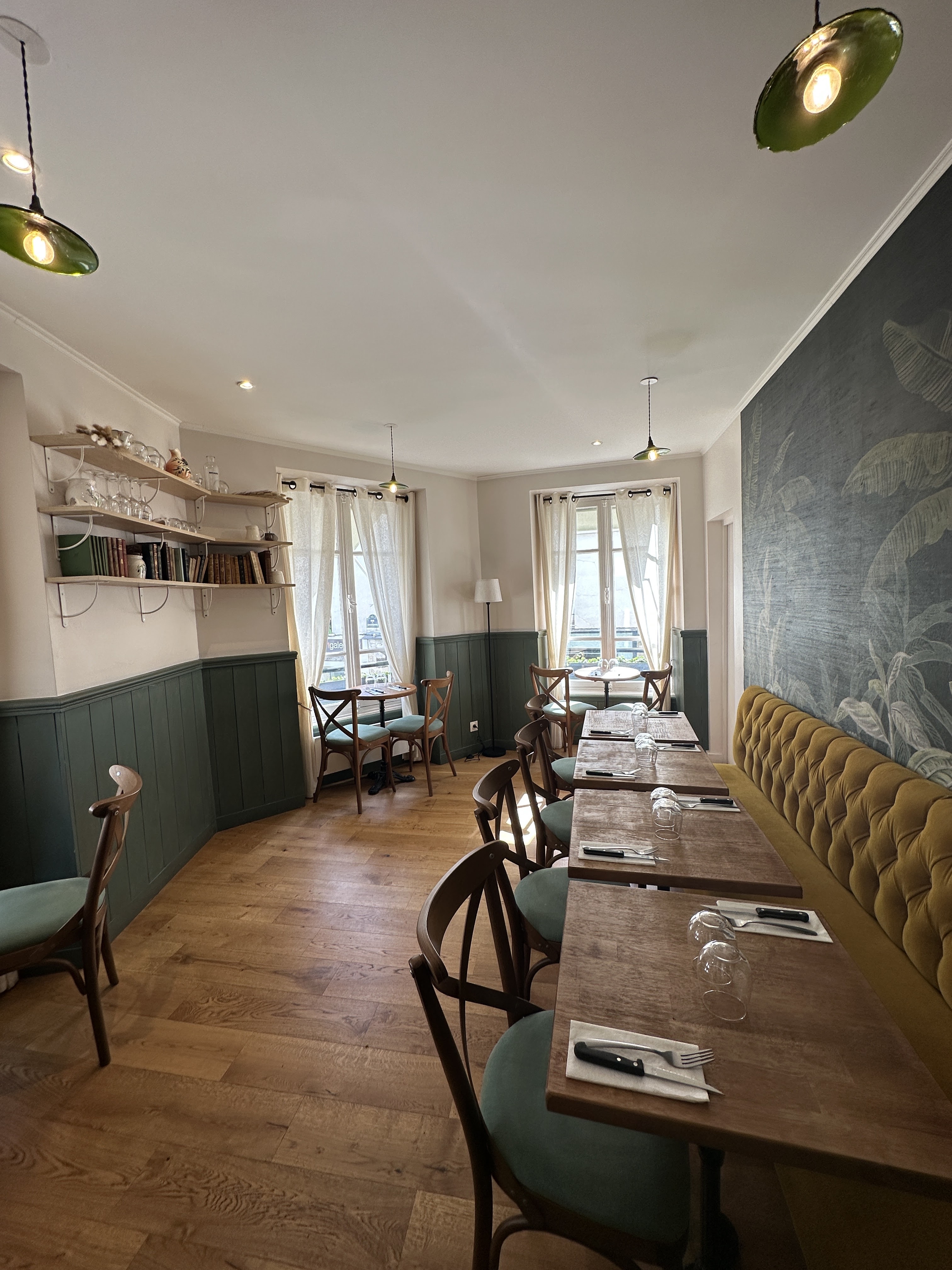 Établissement cosy, très douce décoration. Bois, briques, vert tendre…. La vaisselle est très jolie, les tables simples et vraiment jolies. La carte est simple et tout y est excellent. De jolis mélanges salé/sucré. Sam qui nous a servi a été aux petits soins sans nous pousser à la consommation non plus. La musique d’ambiance présente mais pas trop. Nous sommes restés plusieurs heures dans ce lieu charmant !