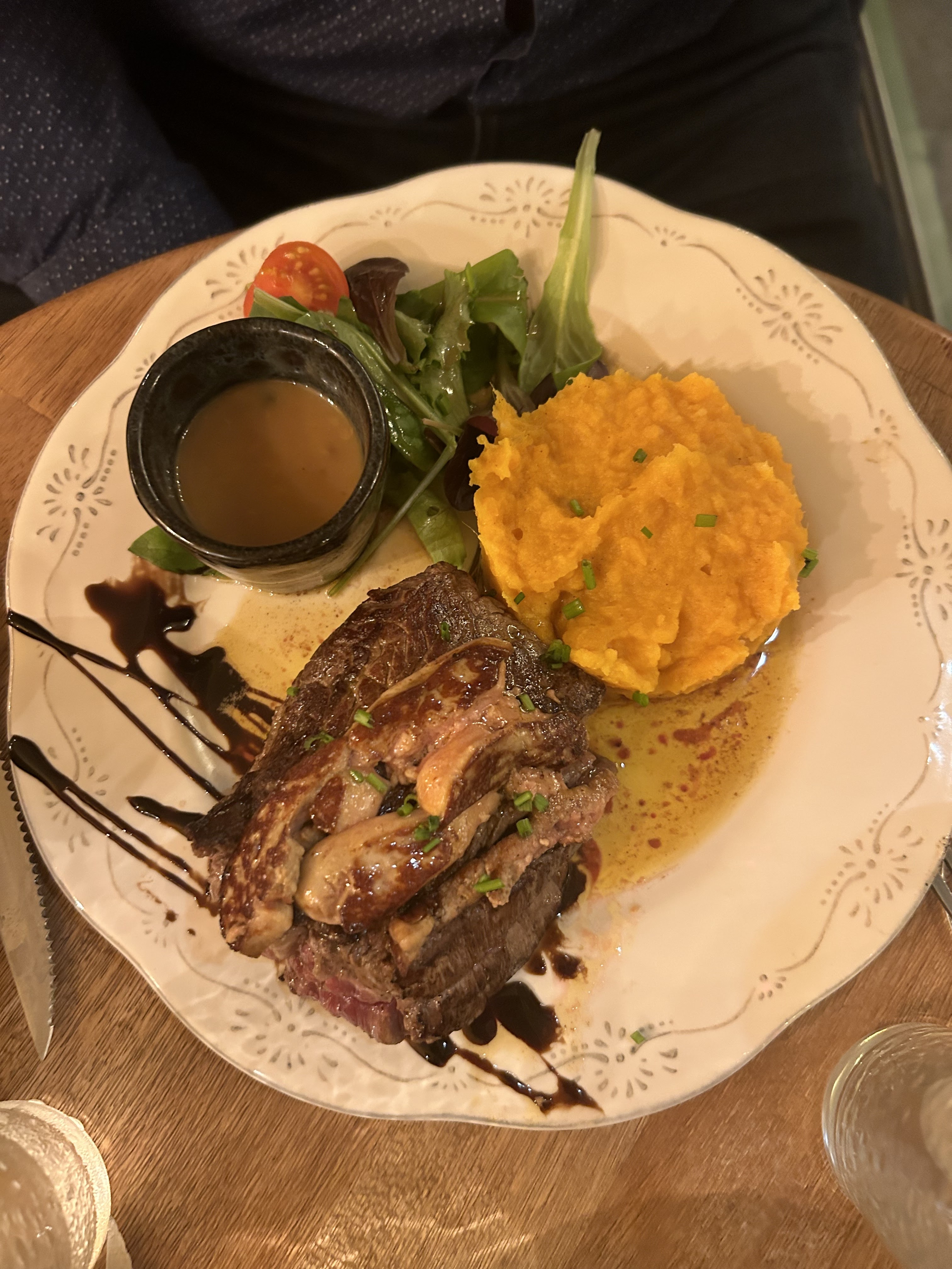serveur disponible, très sympathique, Kevin ++ Le plateau de fromage est super bon, j’en ai pris 2 fois !