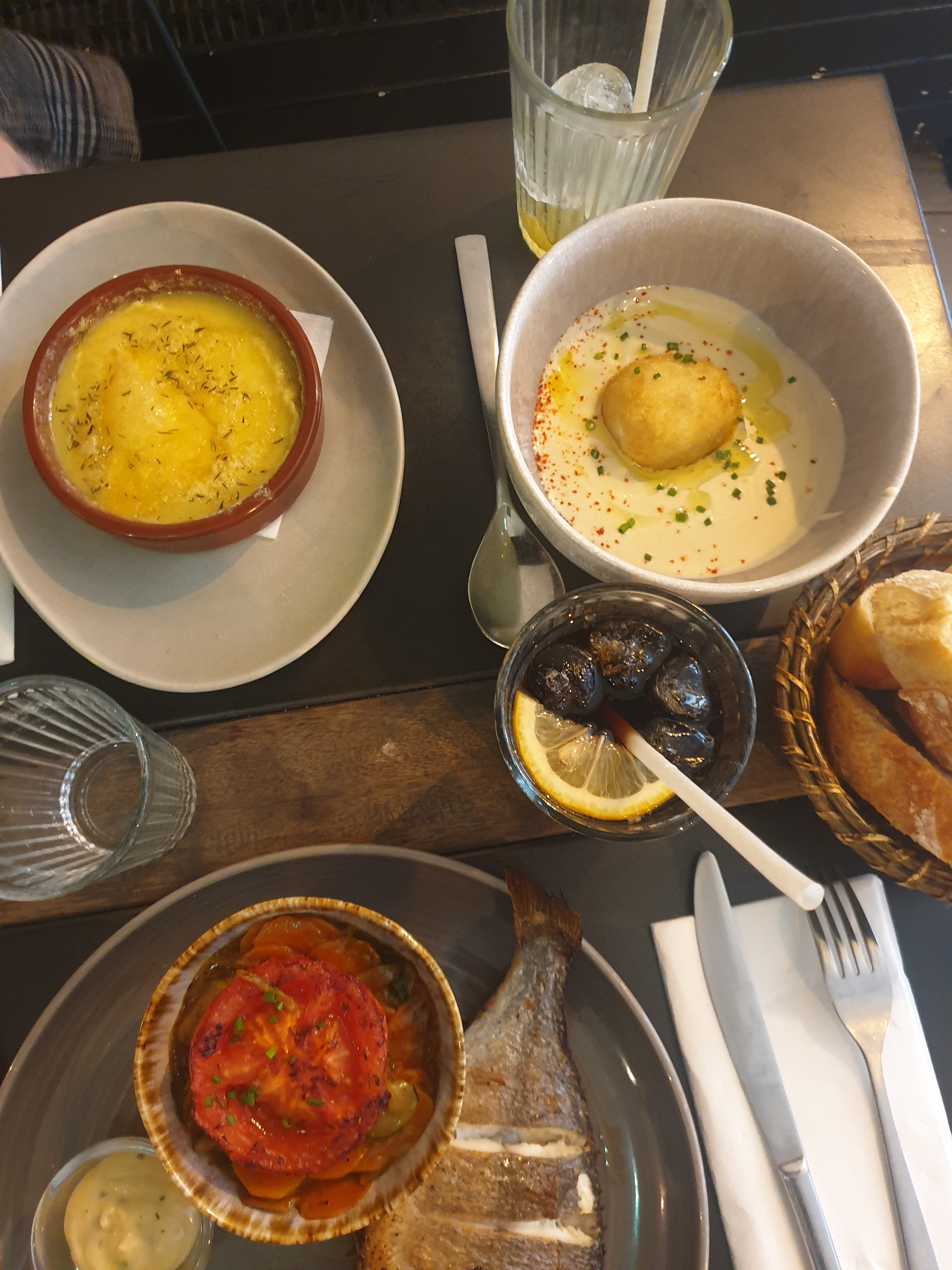 Très bons plats et entrées : daurade royale servie avec des légumes, salade, très bonnes pommes de terre aux herbes et à l'ail.., le camembert rôti, l'œuf mollet avec la sauce parmesan très délicieuse aussi.. Les serveurs étaient assez sympas, en revanche l'attente était longue et il n'y avait pas de chauffage, il faisait assez froid