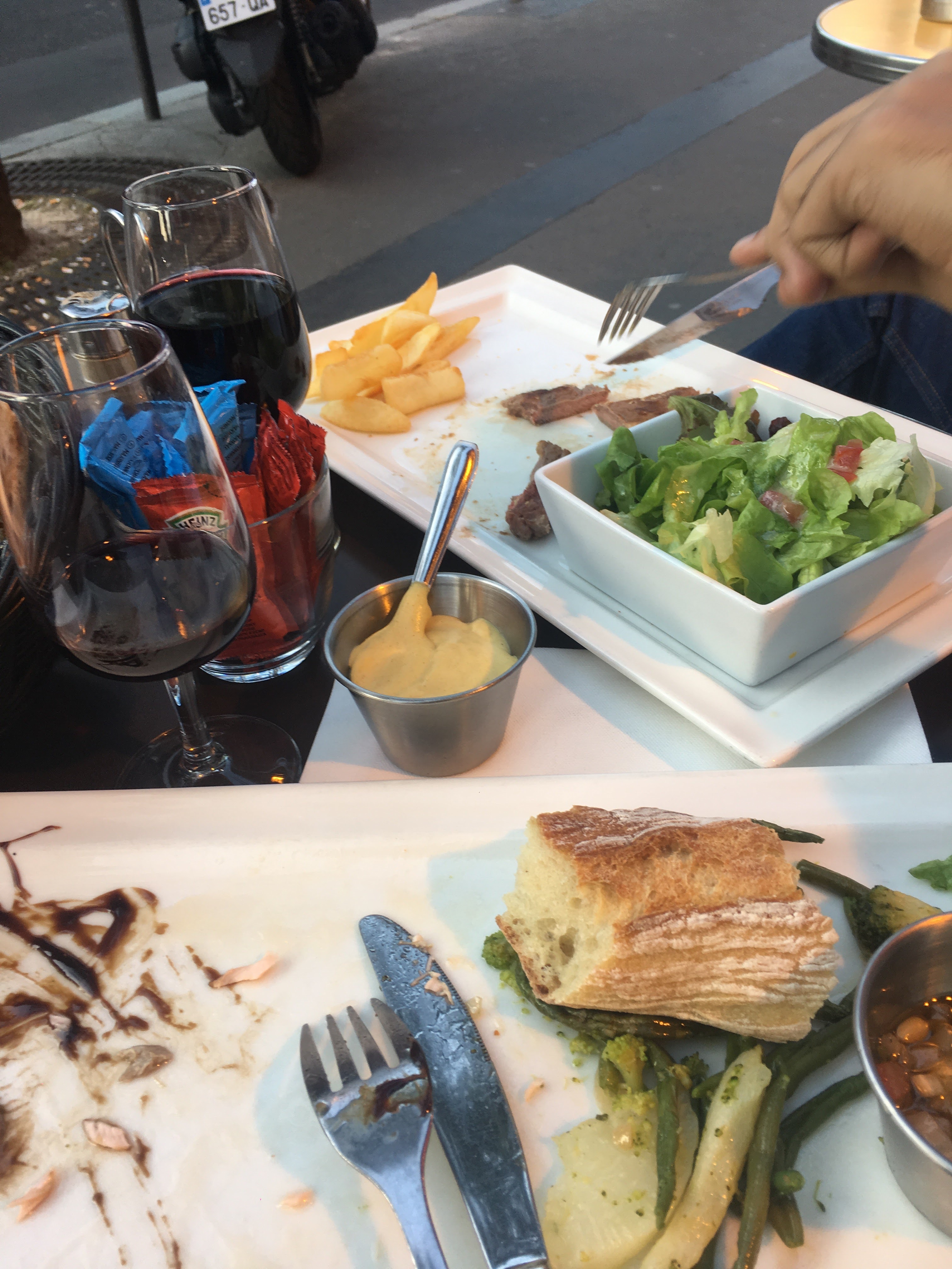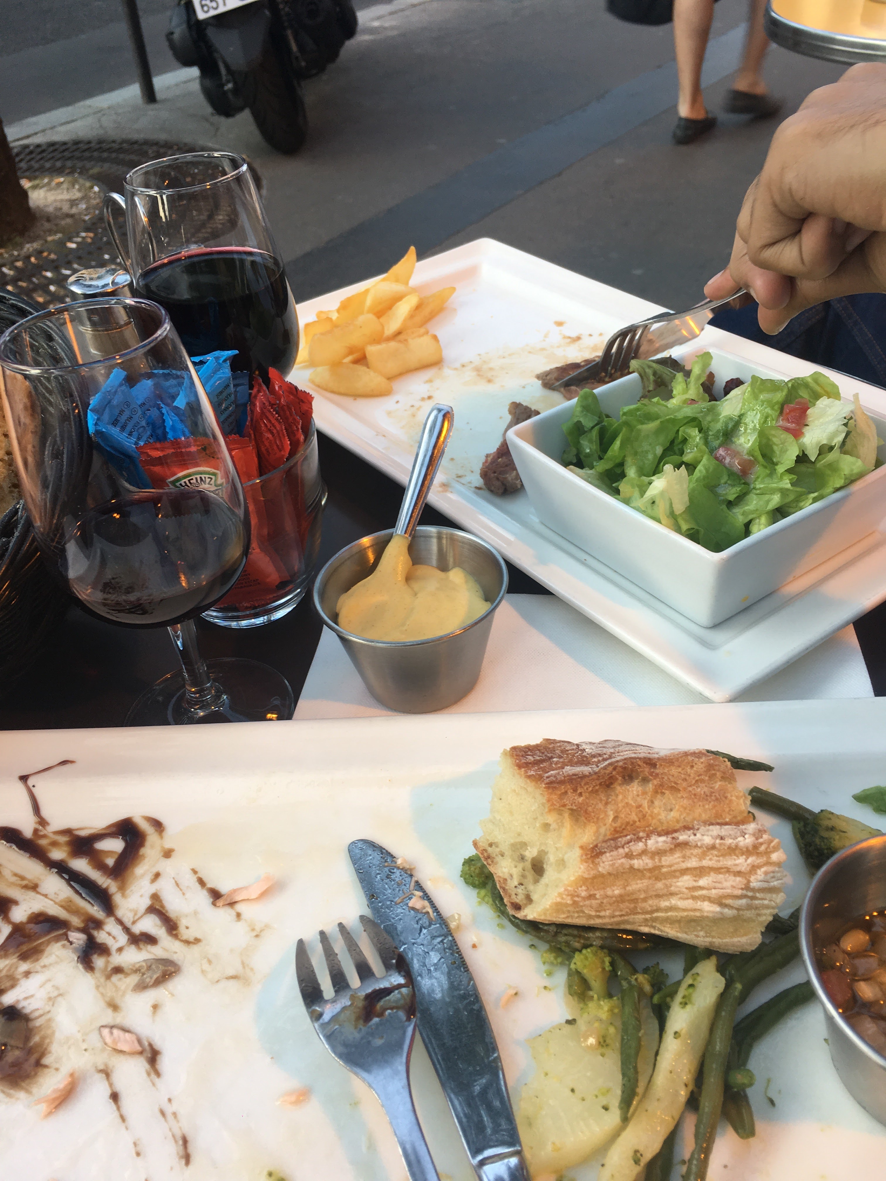 C'est essentiellement un restaurant français. Je veux dire, c'est Paris, donc on peut toujours acheter des escargots et des huîtres ici, mais c'est de la qualité d'un restaurant. La nourriture et le service nous vont bien. Nous voulions manger quelque chose de léger et il était tard, donc il n'y avait pas beaucoup d'options disponibles. J'en avais marre de boire du vin et je voulais passer à la bière, mais ils avaient un choix assez maigre. J'ai fini par boire cette étrange bière française appelée Desperado, qui a fini par être un mélange bière blonde/tequila. C'était bien. Je pense qu'il avait un ABV décent, donc au moins j'ai attrapé un buzz.