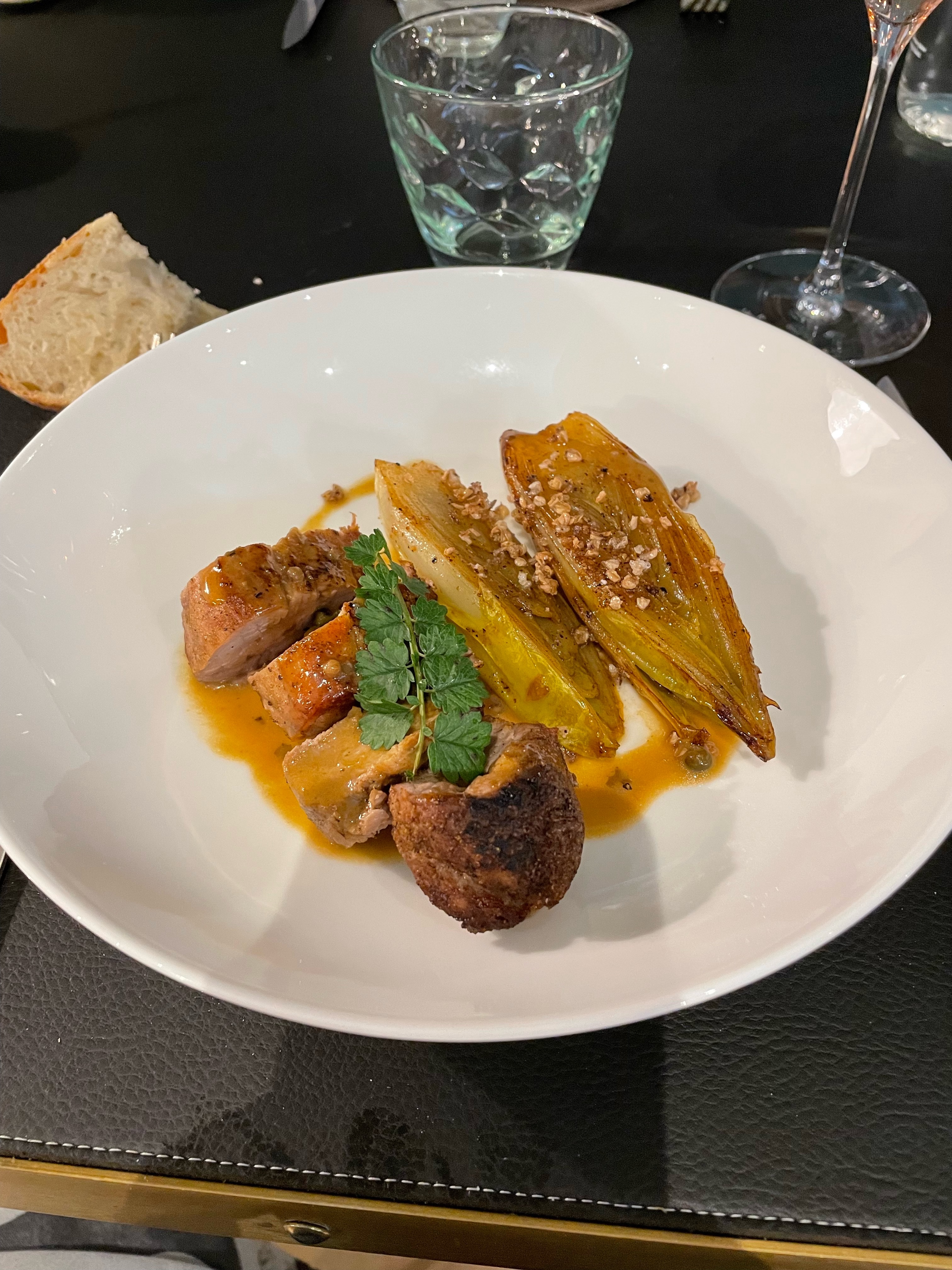 Délicieux dîner pour un bon prix. Qualité supérieure. Et bien sûr de délicieux vins pour accompagner les mets (Bourgogne).