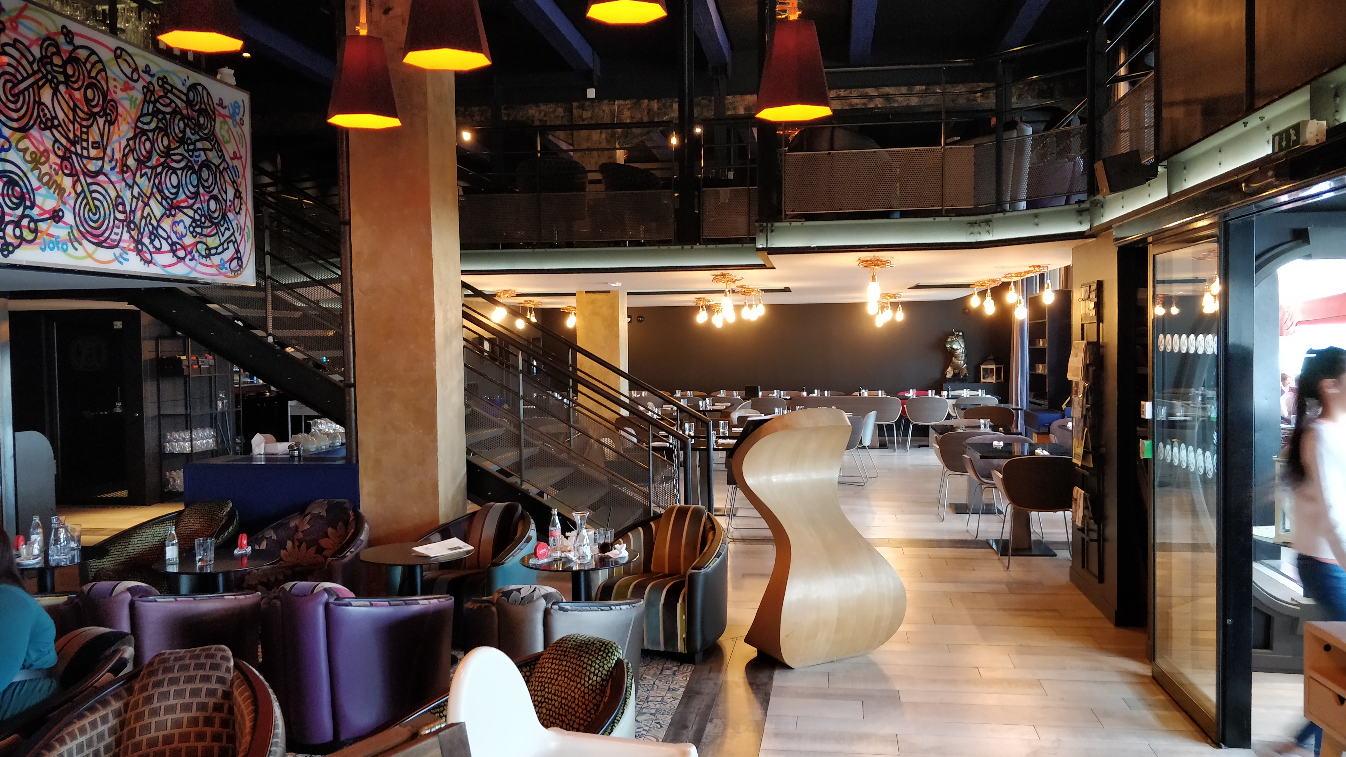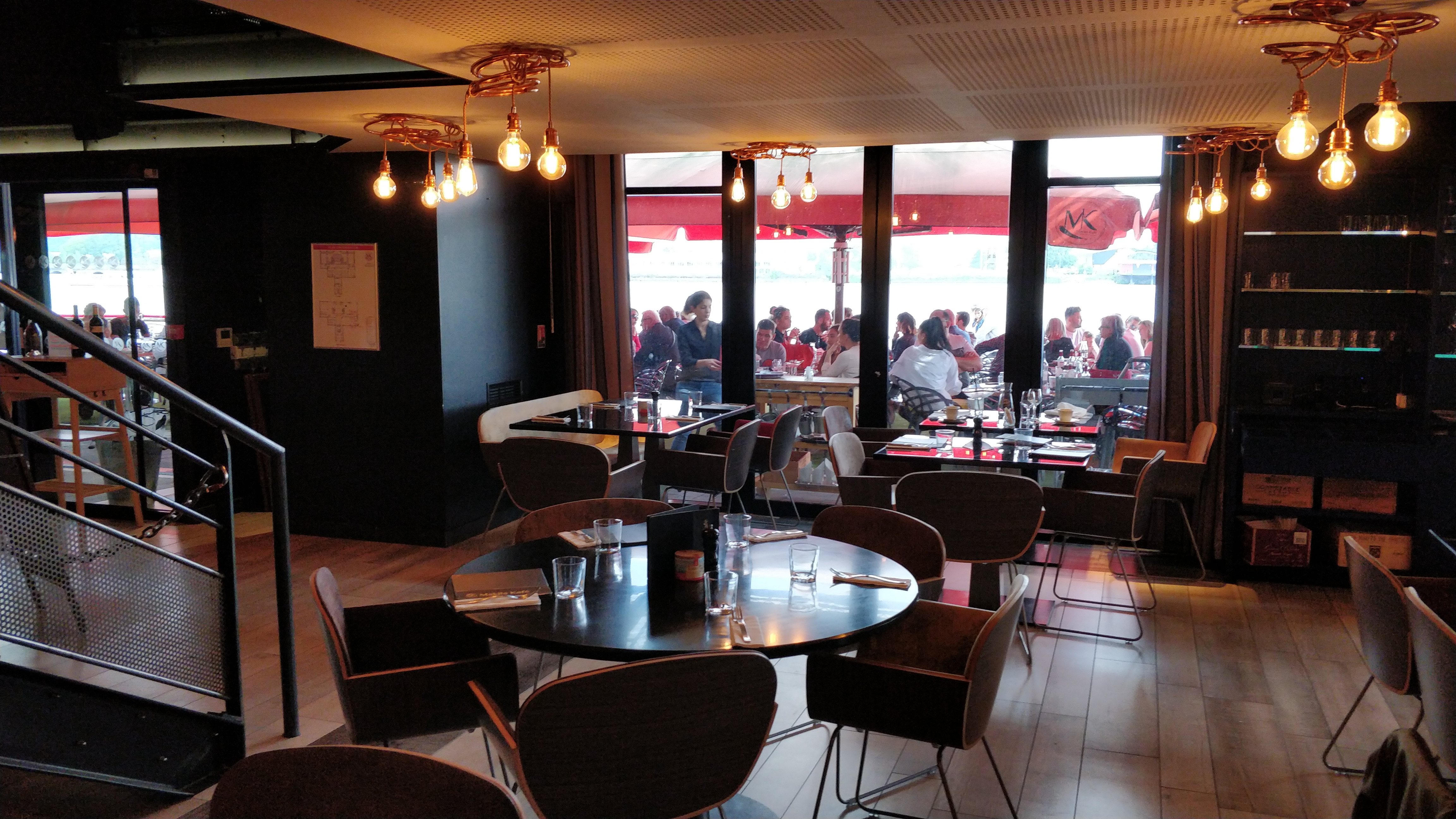 Les horaires et l'emplacement sont quand-même appréciables. À première vue l'endroit est un petit restaurant sur les quais, mais on découvre un très grand établissement avec terrasse, coin cosy, et un très grand étage. Cependant, le rapport qualité/prix même s'il semble correct à première vue, quelque chose reste sur l'estomac quand on constate la qualité globale.(la note est salée). Le service est passable, mais un je-ne-sais-quoi m'empêche de dire qu'il est agréable. C'est bruyant, la terrasse est envahie par les fumeurs. Les chaises noires (terrasse), si elles ont l'air tendance, ne sont pas pratiques du tout. C'est un peu le lieu pour se donner des airs de Bordelais tendance. Le genre d'endroit qui pousse les prix le plus possible sans justification en échange de sourires forcés et des produits de piètre qualité. Tellement dommage. Nous avons été très déçus du dessert qui laisse ce goût de nourriture industrielle, un peu réarrangee dans une tentative de dissimulation..vaine je dois dire. PS : le wifi ne fonctionnait pas.