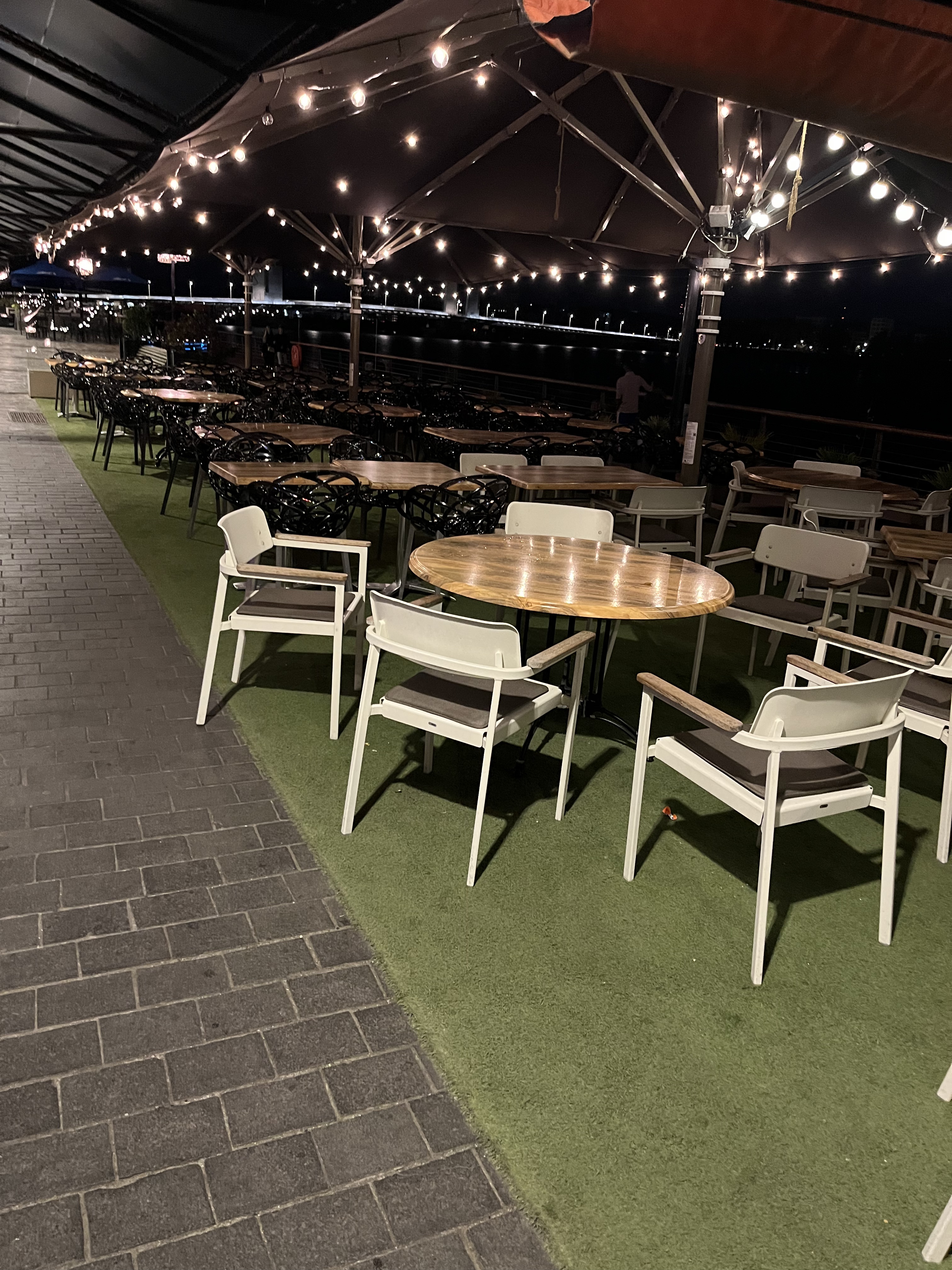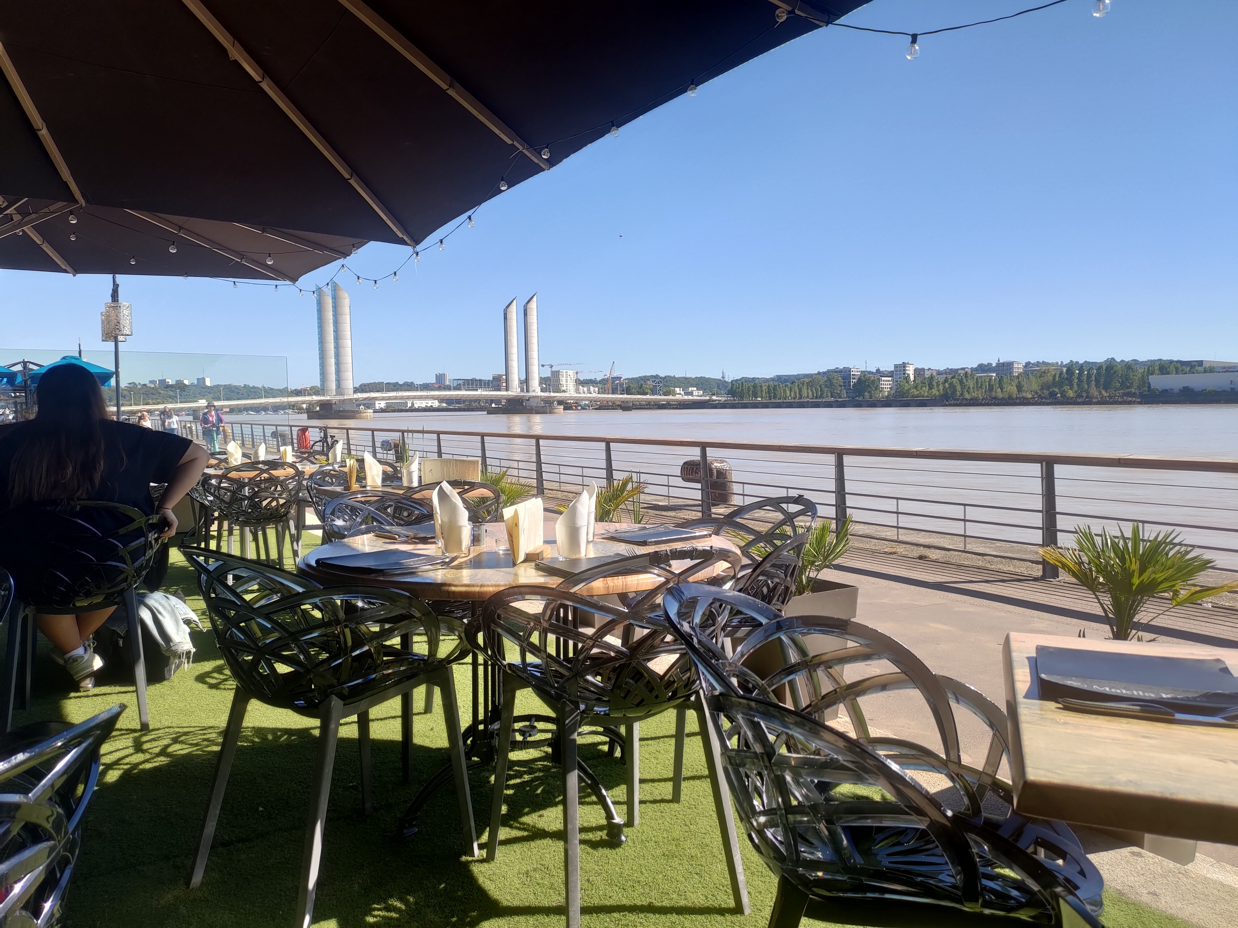Repas entre amis ce samedi soir 30 septembre 2023. Cadre, rien à dire, vue sur la Garonne et ses lumières. En revanche prix extrêmement cher pour la quantité servie. (50€ pour un plat, un dessert et un cocktail...) à 10€ près, tu as un repas au grand hôtel lol. Quantité de frites très pauvre, tenant dans un verre à boire. Deuxième red flag, l'attente. 35 min pour le plat, un peu moins pour le dessert heureusement Conclusion : endroit convivial mais je ne recommande pas pour autant