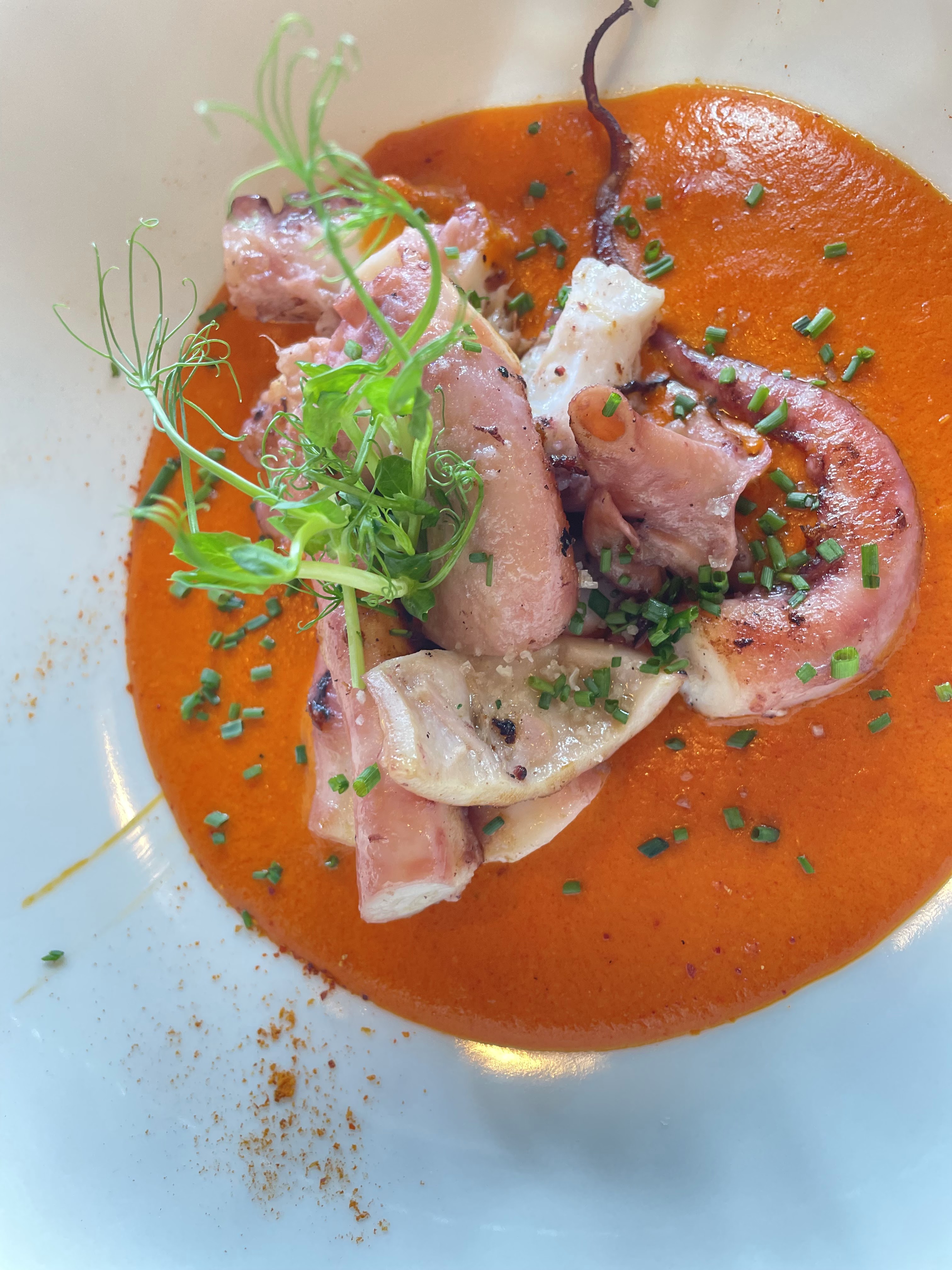 Choquee ! le tataki de thon tout cru, sans aucune cuisson de l exterieur etait acide et avait le gout de maquereau, tres fort ( explication : c est normal, il faut toujours verser de l acide sur du poisson cru ???? ). Quant au poulpe a la plancha, archi bouilli ( chair devenue farineuse ) et rien de grille ! (explication : c est normal : sinon, il aurait ete vivant dans l assiette ??? humour ? ) Si les produits etaient perimes, il fallait les jeter. Nous, on a rendu nos assiettes aux 3/4 pleines. juste les crevettes a la creme d ail , les frites et le vin etaient bons. paye 85 euros on ne peut pas faire mieux pour couler un etablissement. si j avais ete seule, je n aurais paye que 35 euros mais je n ai pas voulu mettre mal a l aise mon invitee