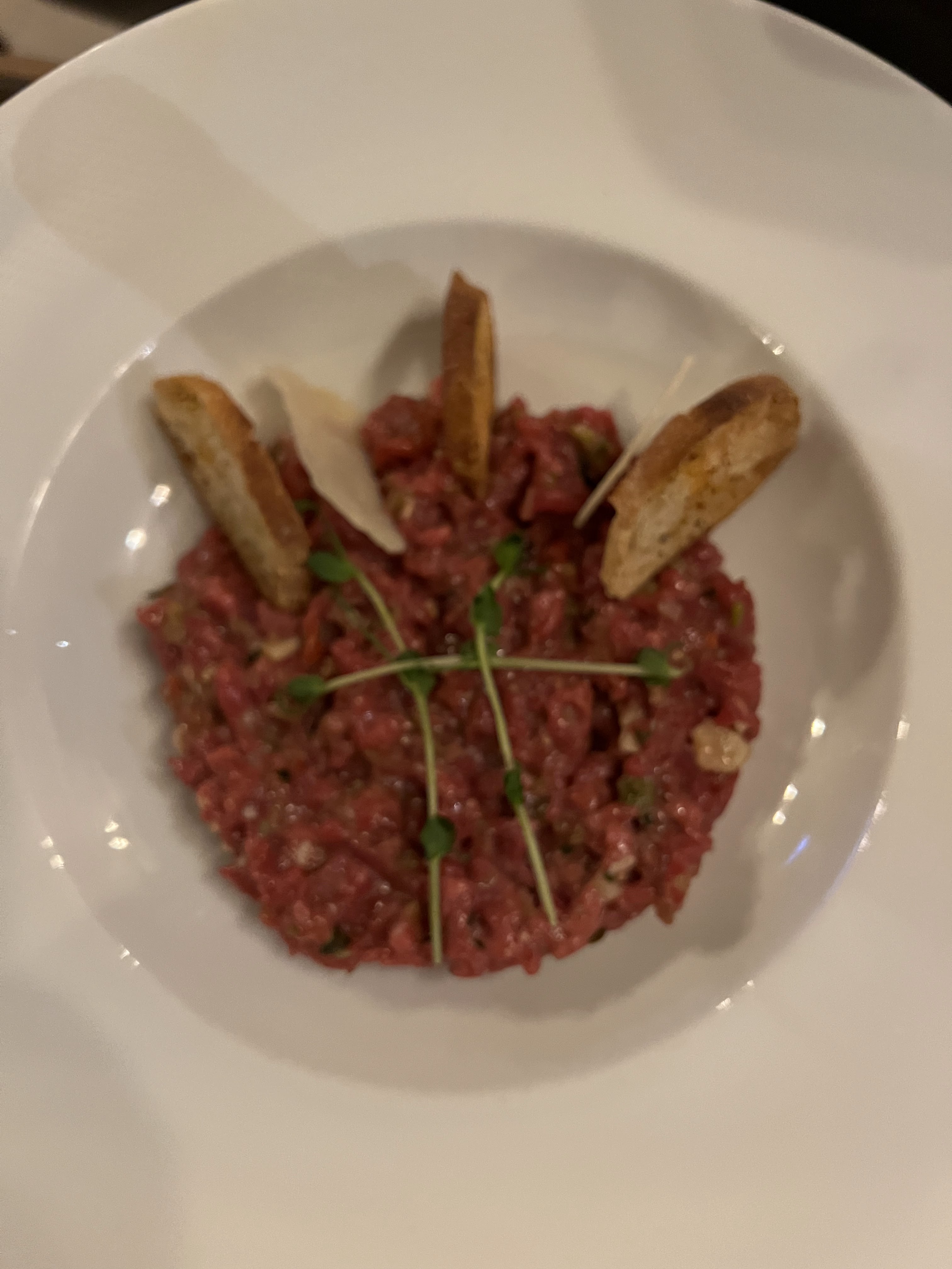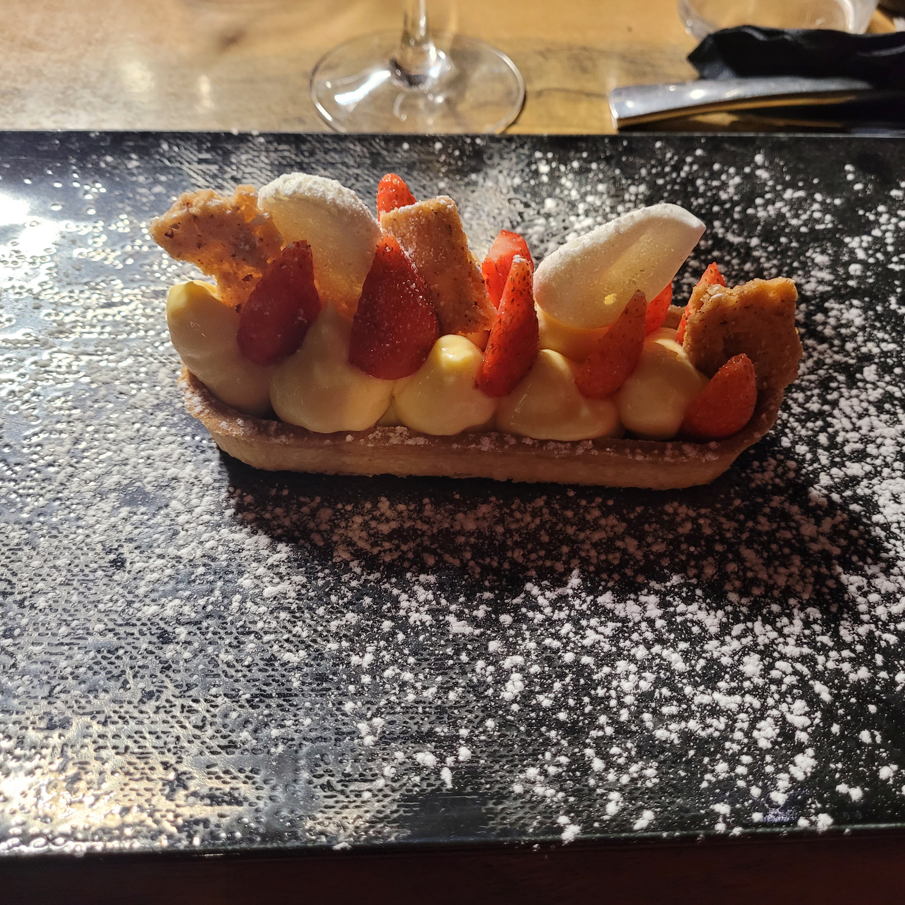 Dîner en amoureux des plus satisfaisant. Personnel assez chaleureux. Ambiance très agréable,musique, lumière, cadre, rien à redire. Entrées (camembert rôti et tomates avec burrata) et plats (tataki de bœuf) incroyable . Nous nous sommes vraiment régalé, tout était très bon. Léger b molle sur les desserts niveau gustatif. Néanmoins visuellement il n'y eu aucun loupé. Je recommande vivement ! Vin et champagne aussi !