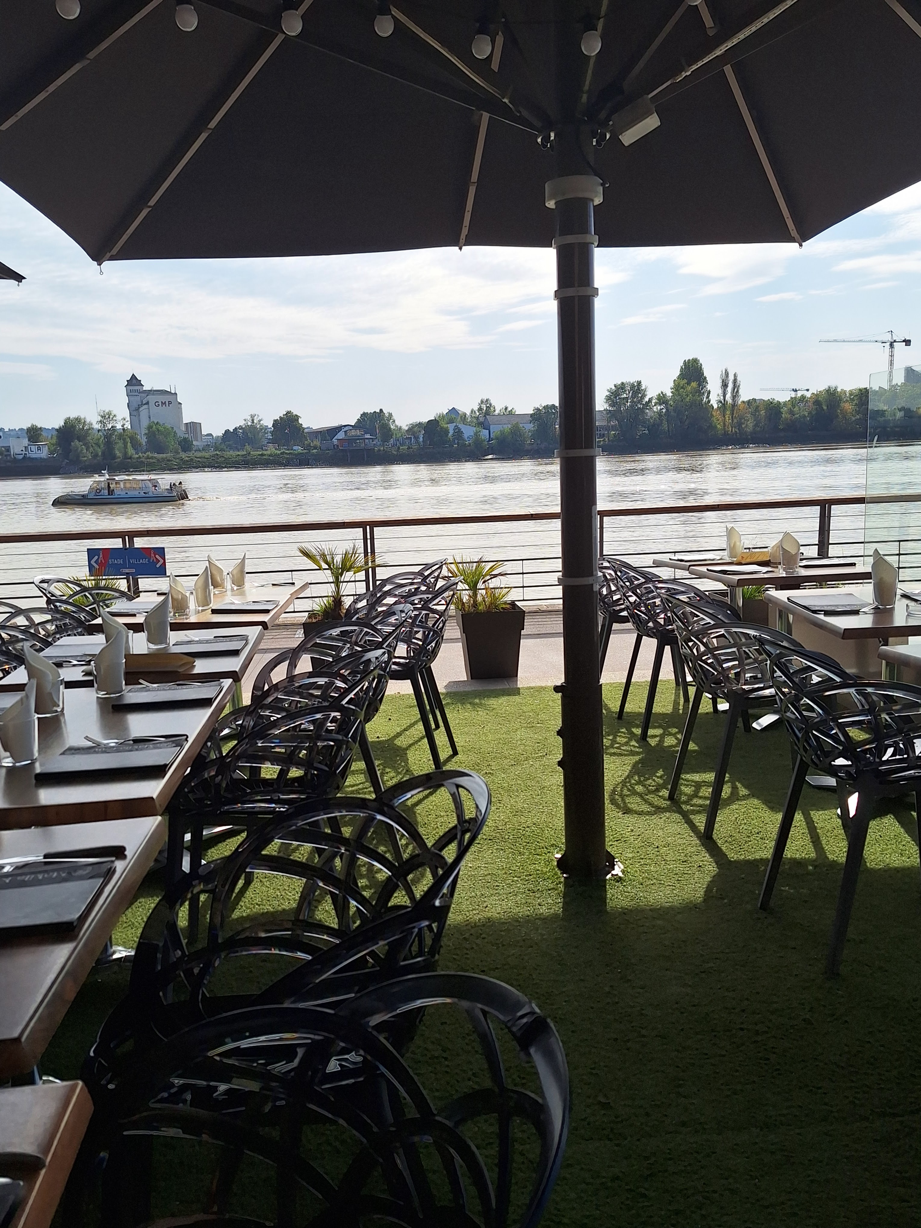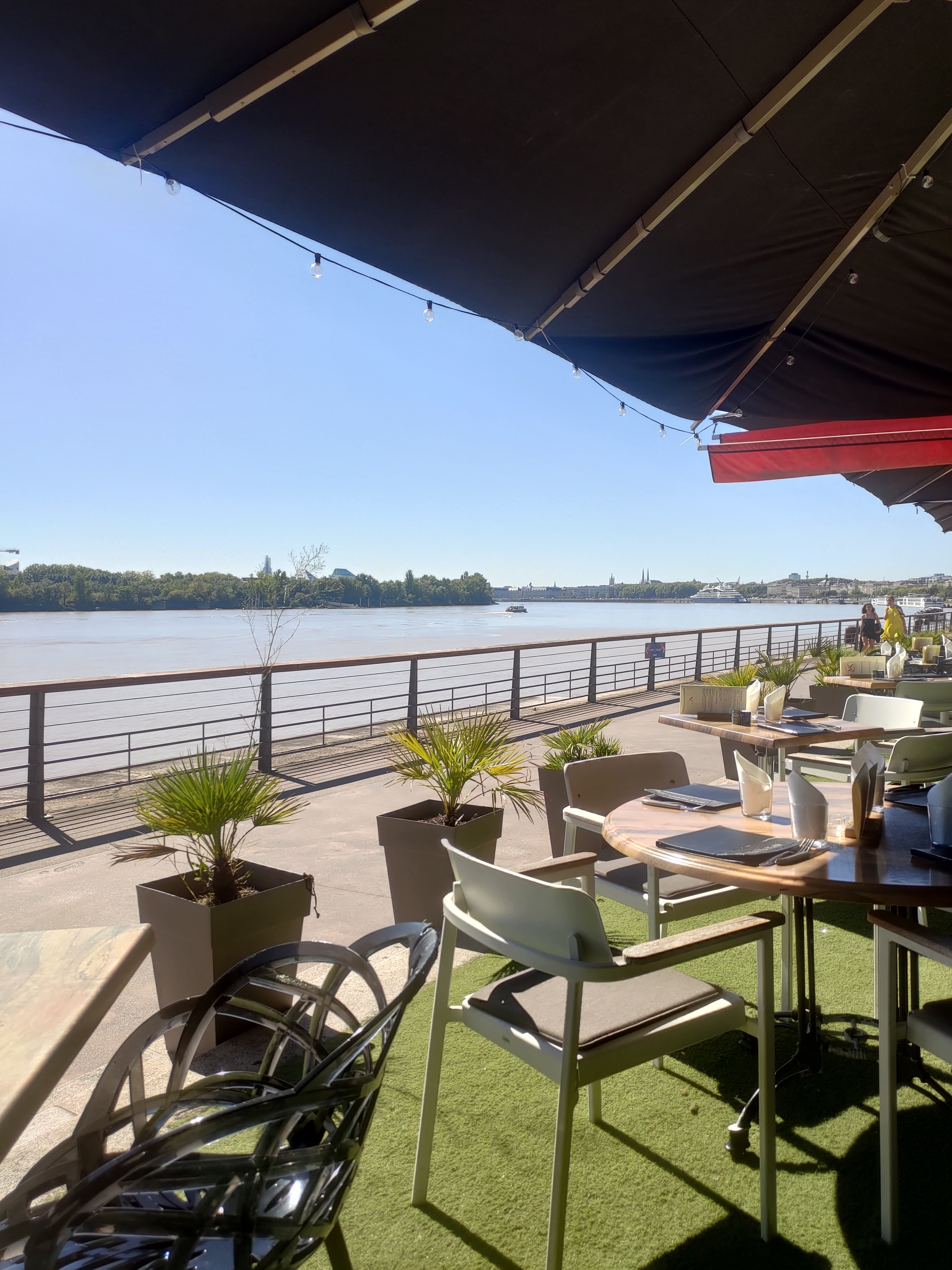 Repas en terrasse face à la Garonne. Une vingtaine d euros pour un plat délicieux. Une vue imprenable. Pas de musique, parfait pour discuter. Cela gênera peut être les plus jeunes.