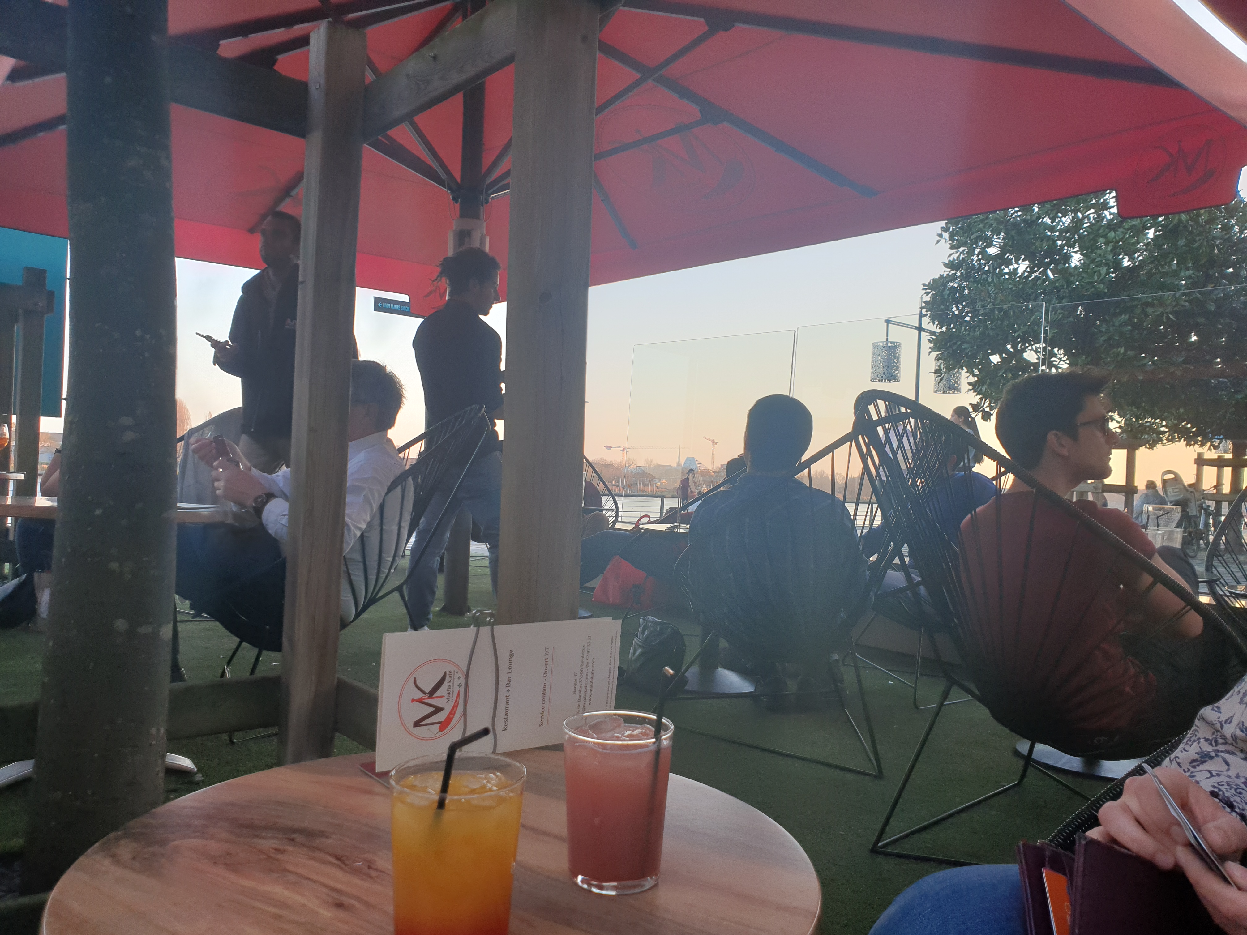 Une des terrasses les plus agréables des quais ! Belle vue pour un coucher du soleil. De bons cocktails mais un peu sucré a mon goût. L'intérieur est très bien décorée et confortable. Bonne adresse après une balade sur les quais.