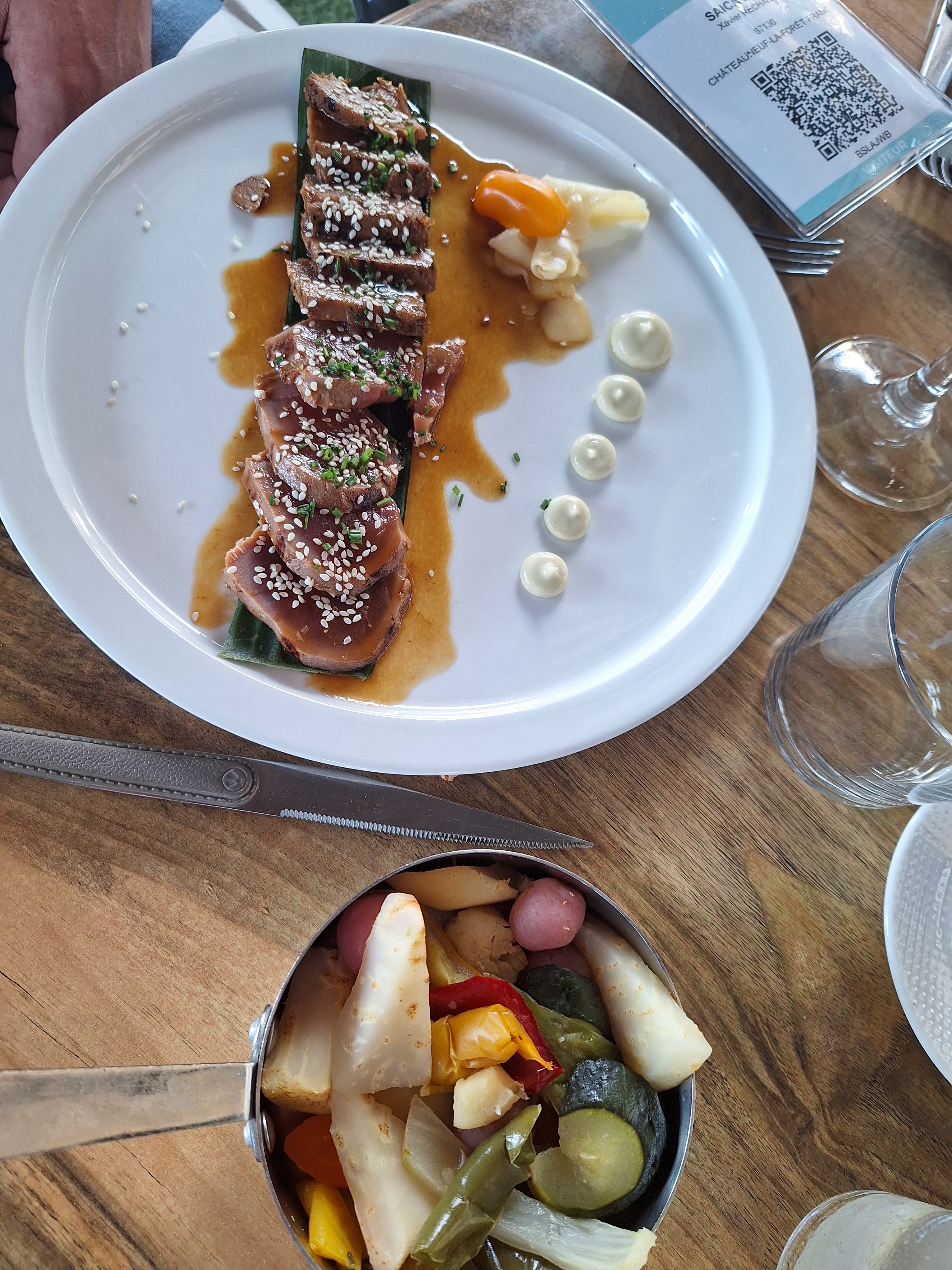Super déco a l’intérieur et le tataki est très bon ! Carte des vins plutôt bien et abordable