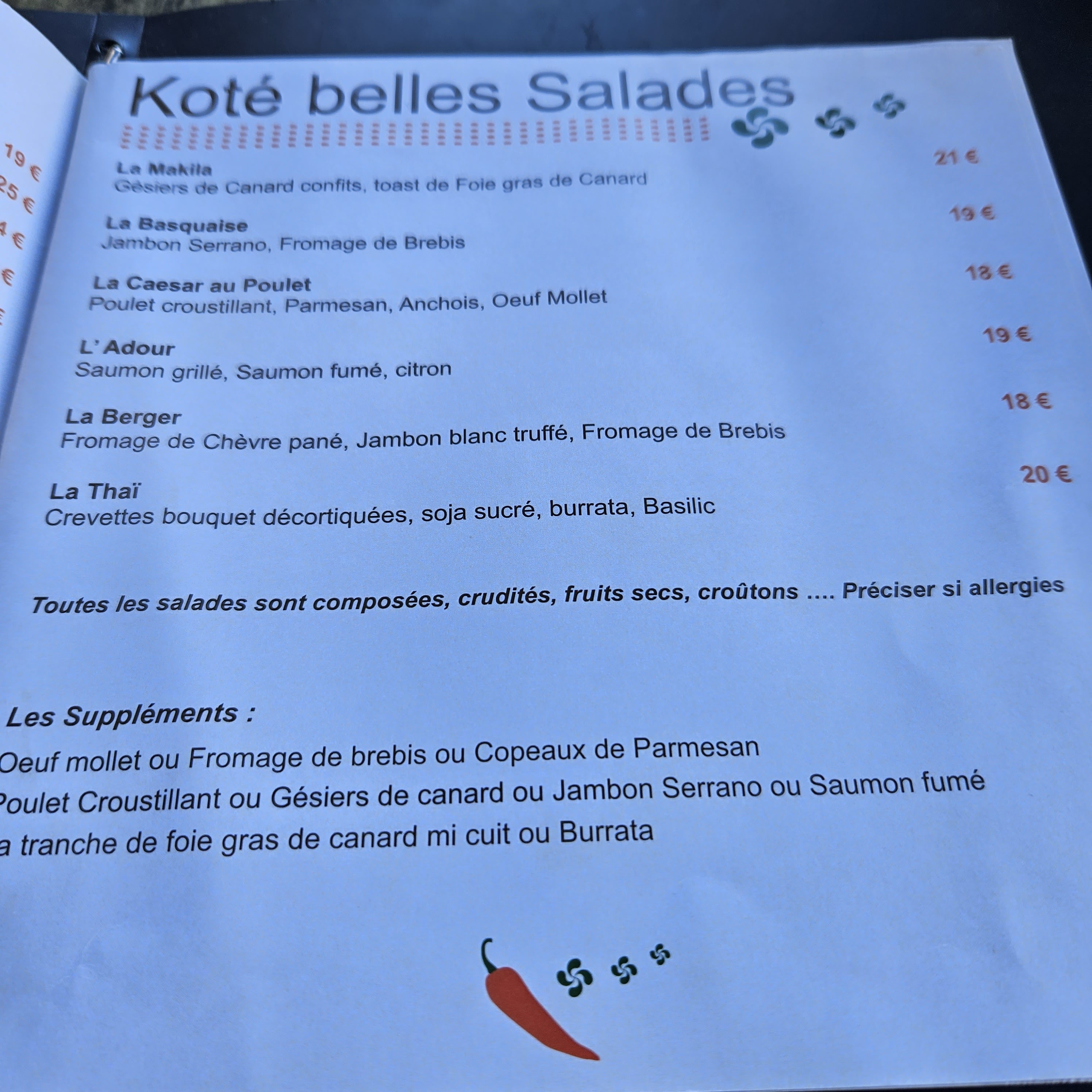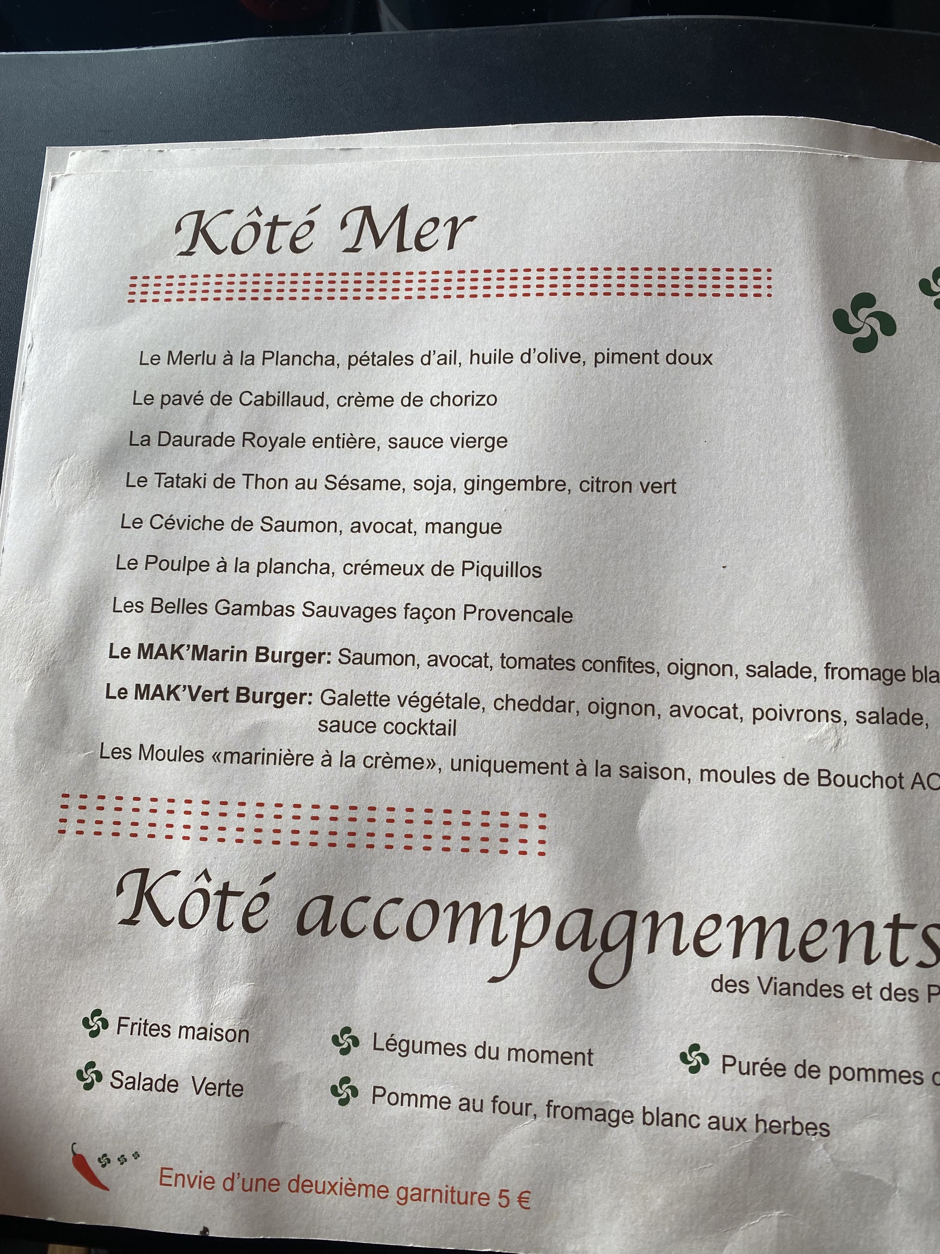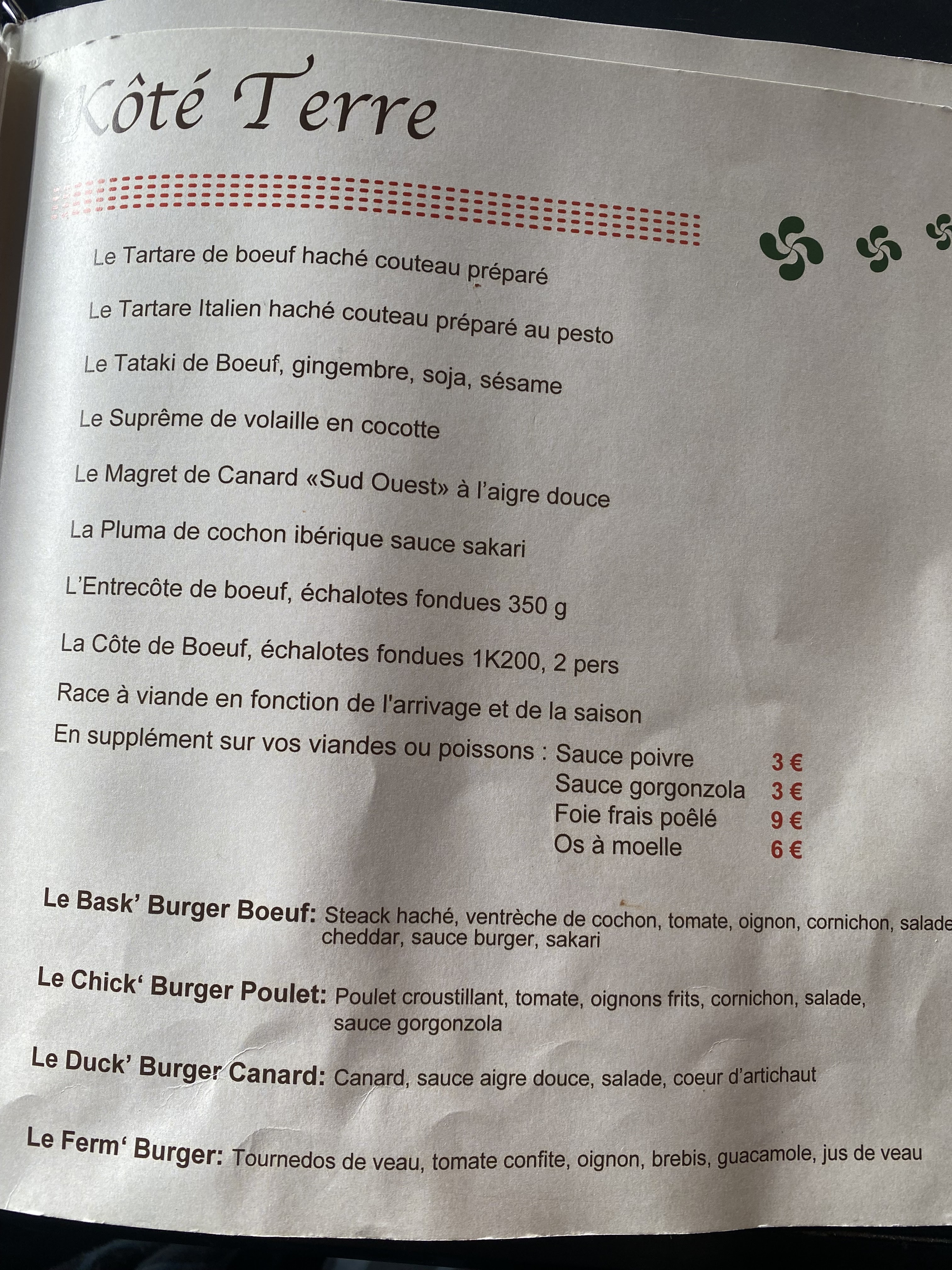 Ce n'est pas un restaurant Basque Belle terrasse en bordure du fleuve.Service sympathique, cuisine sans intérêt gustatif, tarifs élevés.
