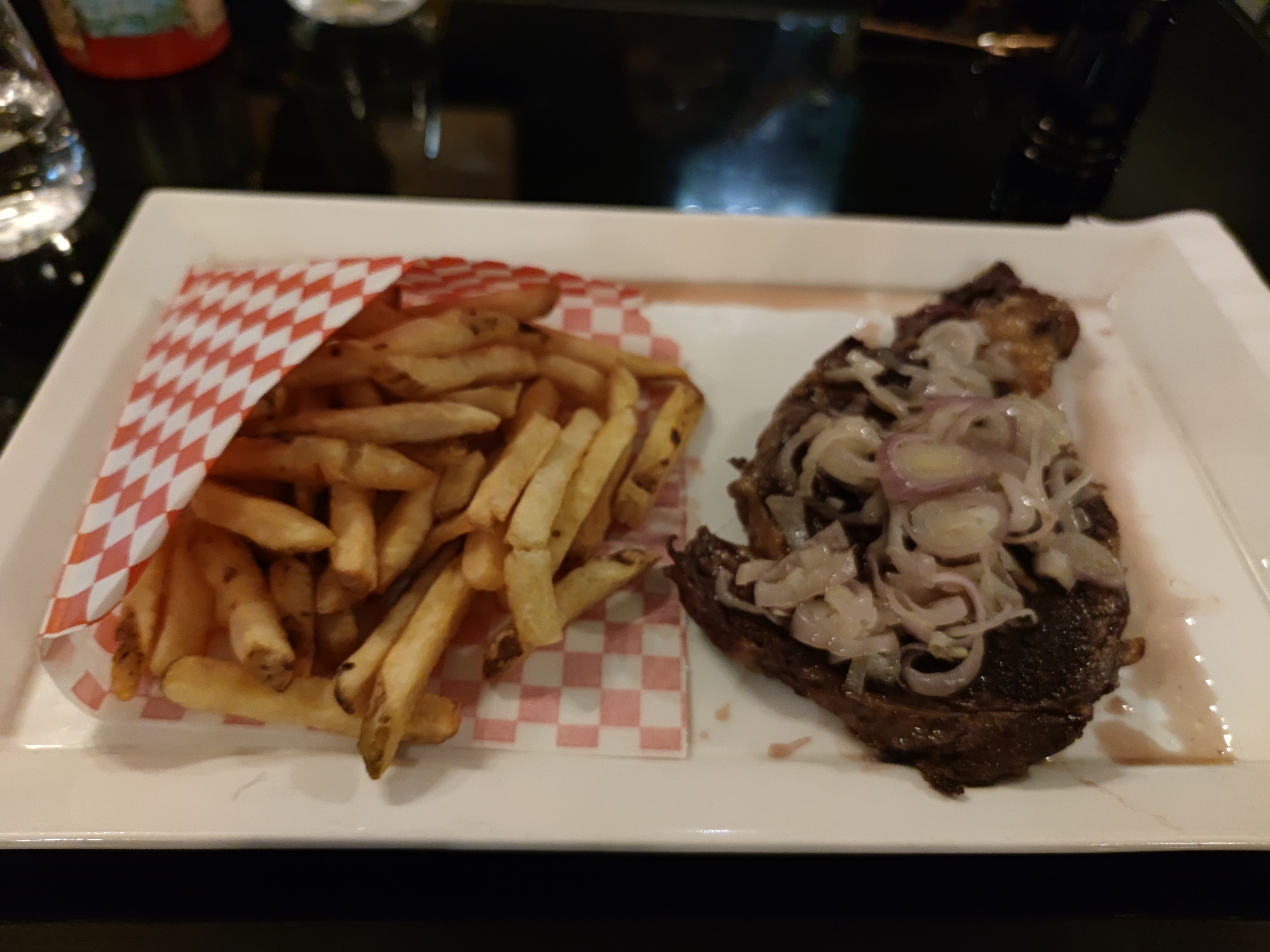 Service très long, on a du attendre 30 minutes avant d’avoir la carte en main ! On a pas eu de l’eau tout au long du repas, malgré le fait que le serveur était gentil. Nous avons pris une entrecôte, qui est d’ailleurs très bonne.