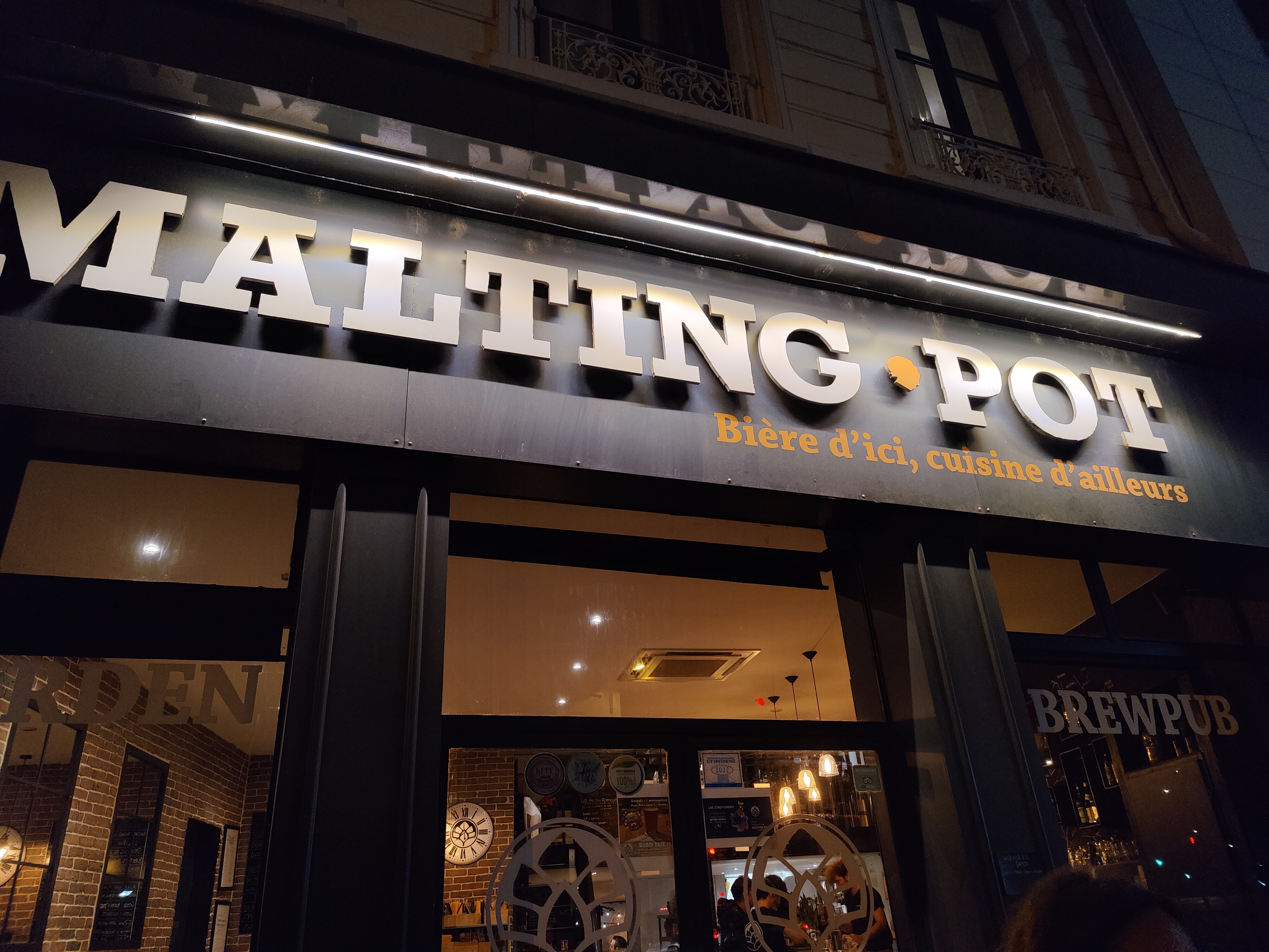 Un peu déçu par le Malting-Pot que je voulais visiter depuis si longtemps ! Le bar est super sympa, notamment la terrasse derrière ! Mais leur bière artisanale m'a vraiment déçu : nos bières sont arrivées sans bulles et vraiment pas très fraiches...