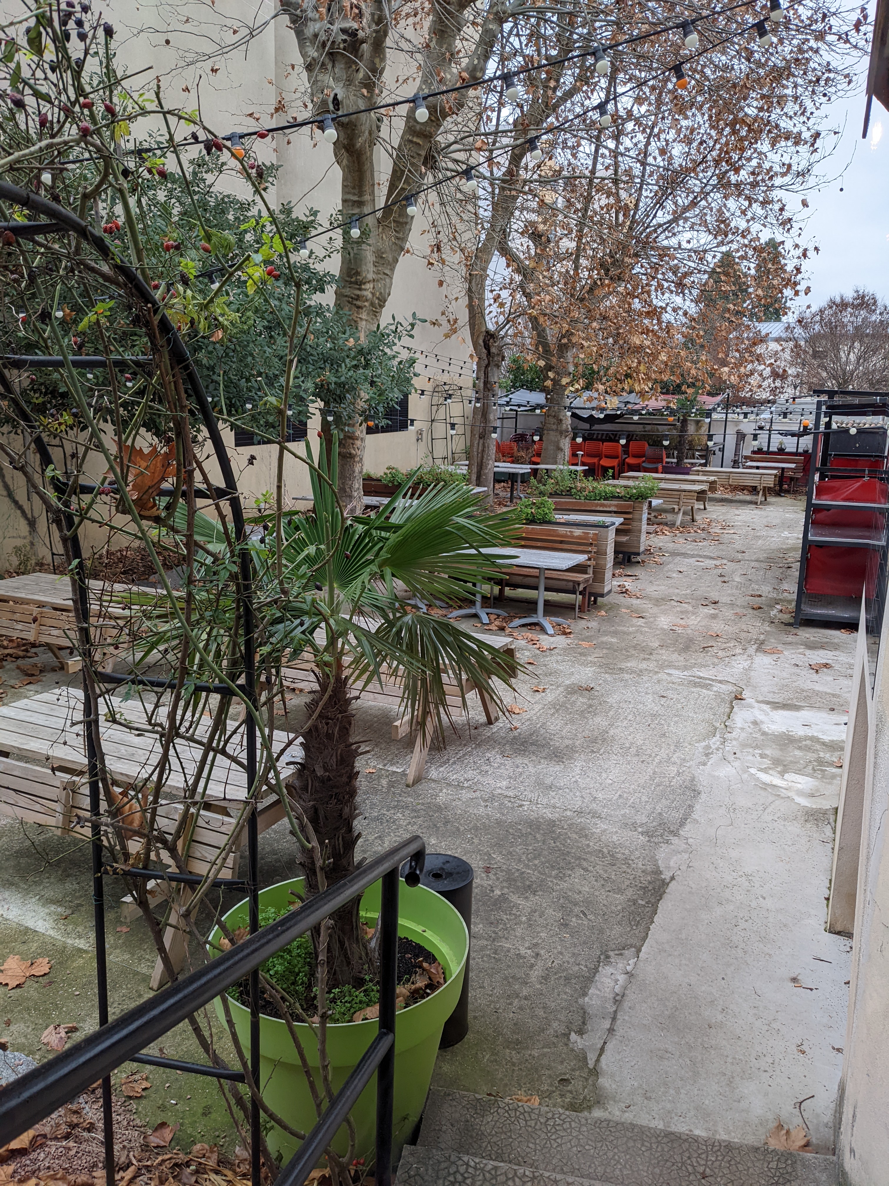 Terrasse derriere hyper sympa. Chef pas trop arrengant pour les vegans mais il a des plats vege