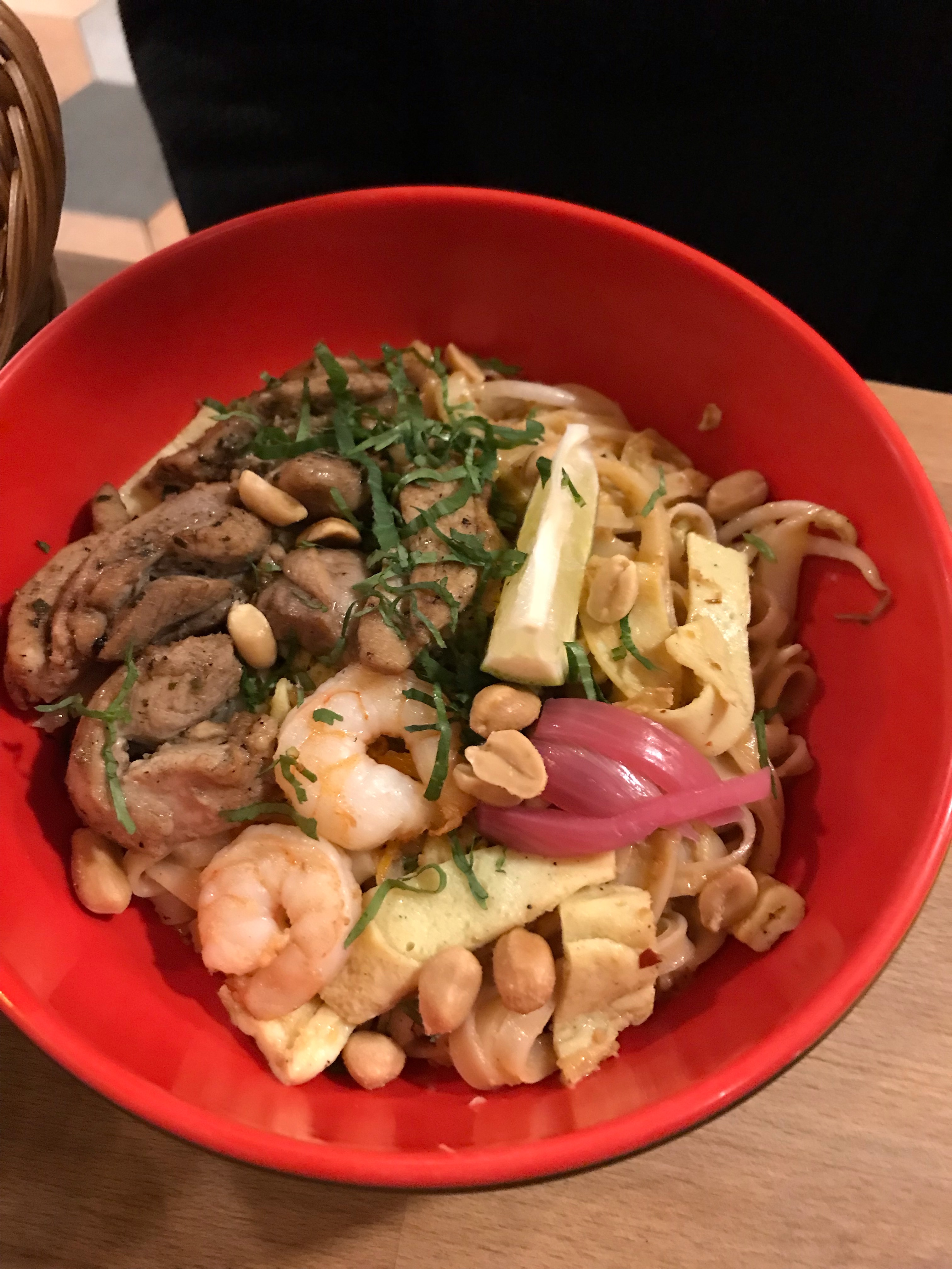 Personnel agréable, plats goûteux mais trop peu de crevettes( 2 ) ds le wok .Viognier agréable. Salle bruyante...