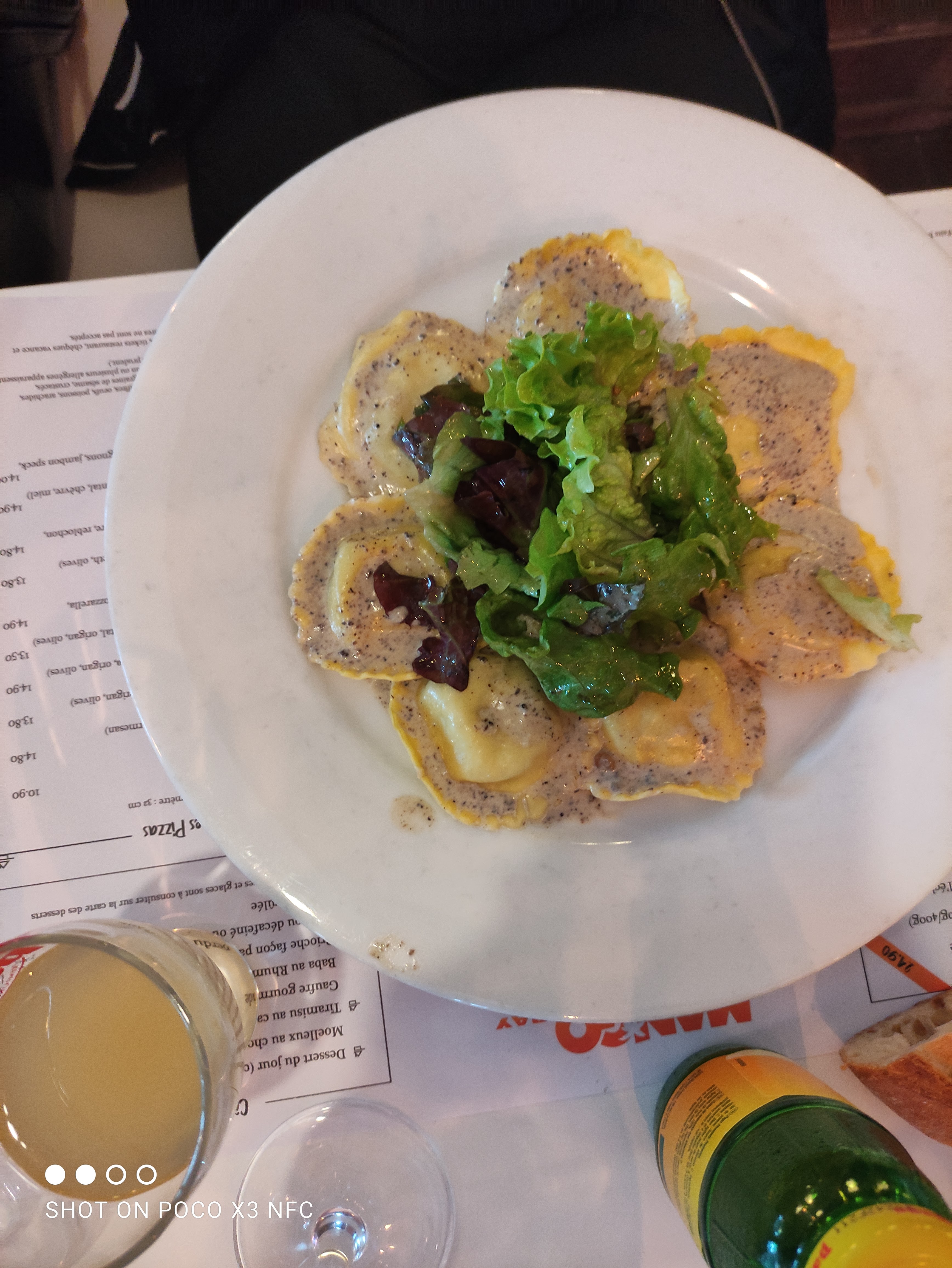 Dans l'ensemble c'est quand même assez satisfaisant. Pas mal de points positifs. Plat du jour calamar riz 15 € sympa peut-être pas très copieux mais ça se discute pour le prix. Raviolis assez sympathique également avec la truffe. Super salade italienne ! Je me suis bien cassé le ventre avec un petit rosé super sympa. Je dirais propreté des verres à surveiller dans les points négatifs. Même si les verres ont beaucoup de défauts à l'intérieur c'est quand même sale . Point négatif aussi des desserts assez cher comme à 9 € ou 10 € alors qu'ils ne sont même pas fait maison je comprends pas le prix. Pratiquement pour le même prix et même moins cher le poisson rouge près du port de Gien fait tous maison.