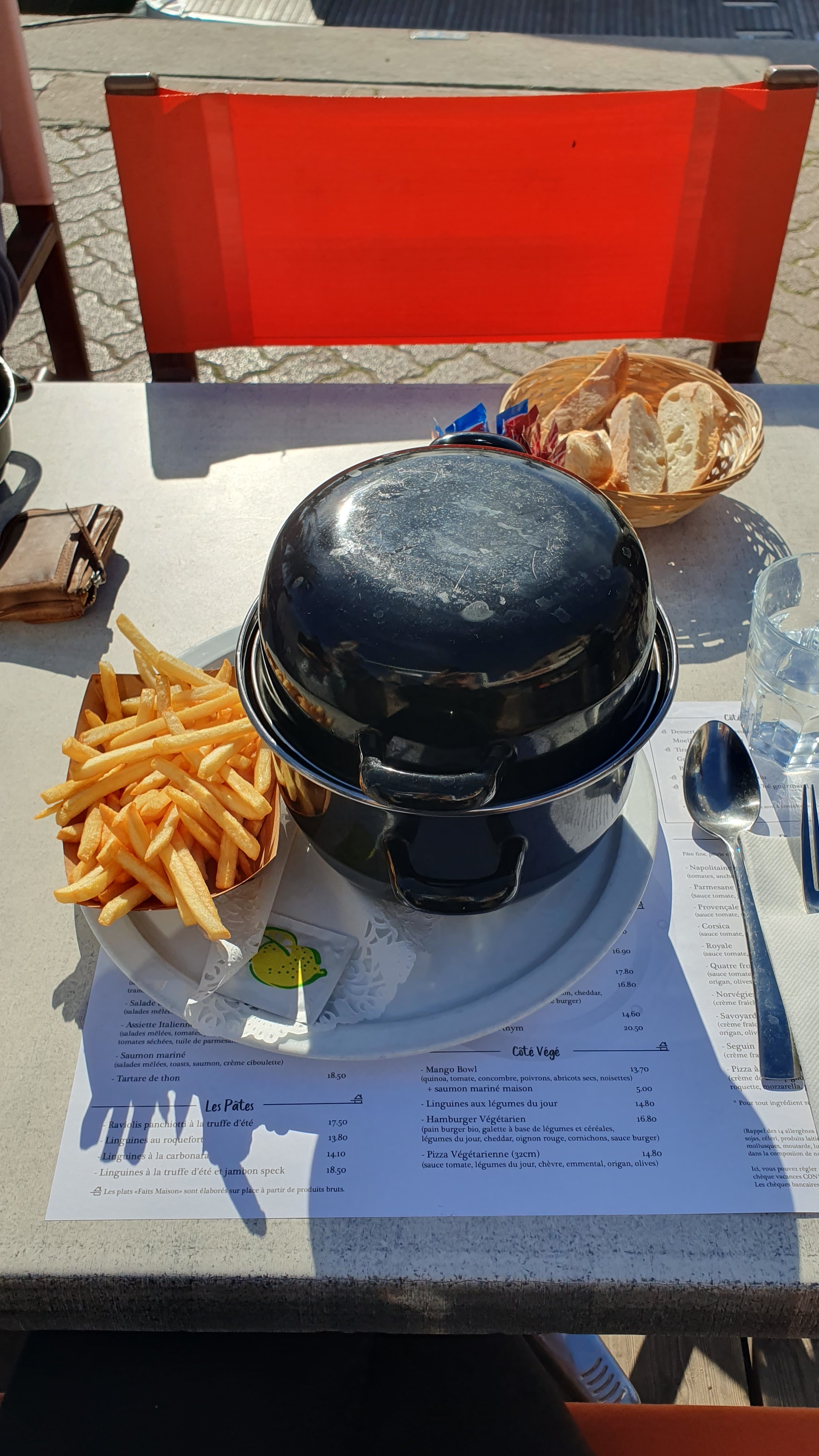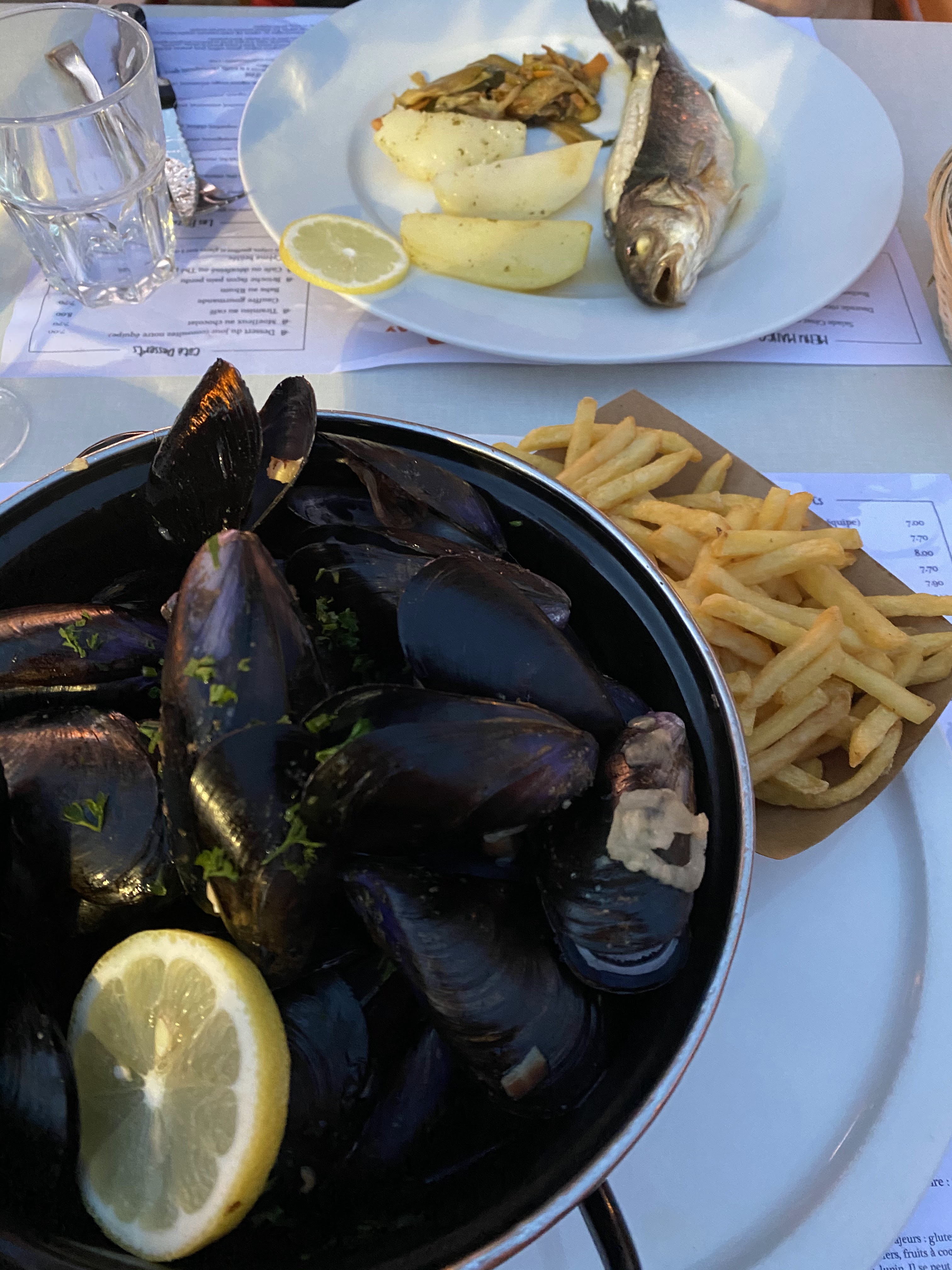 Le cadre est idyllique vue sur le port en terrasse au soleil....Des moules 🍟 très bonne. Un service souriant.