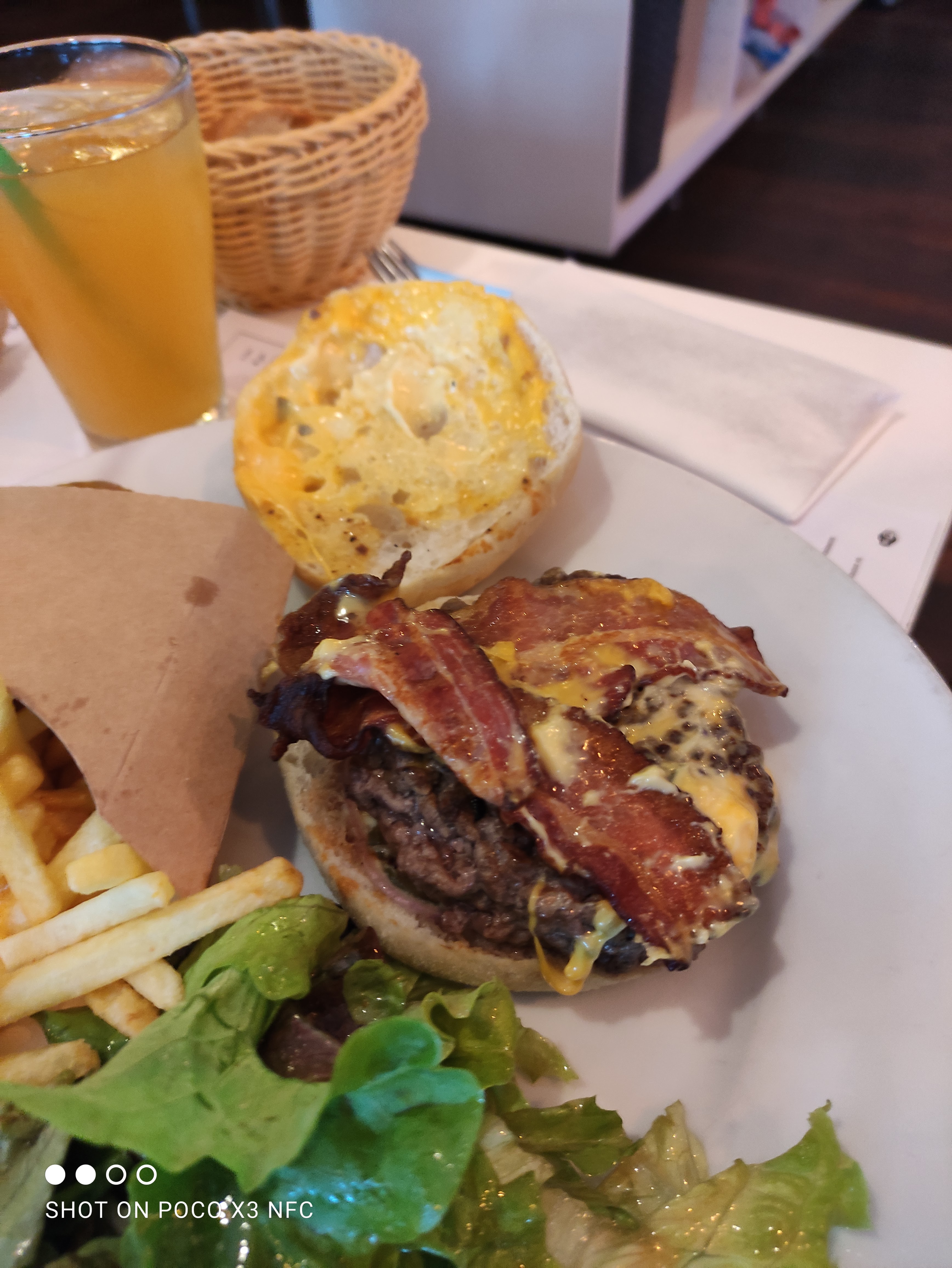 Burger végétarien très bon par contre les frites sont vraiments pas de bonnes qualités, sèches et bad gamme. La salade provient d'un sachet sous vide et n'a pas de goût. Dommage, prix cher du coup alors que le burger est bon. Serveur sympa.