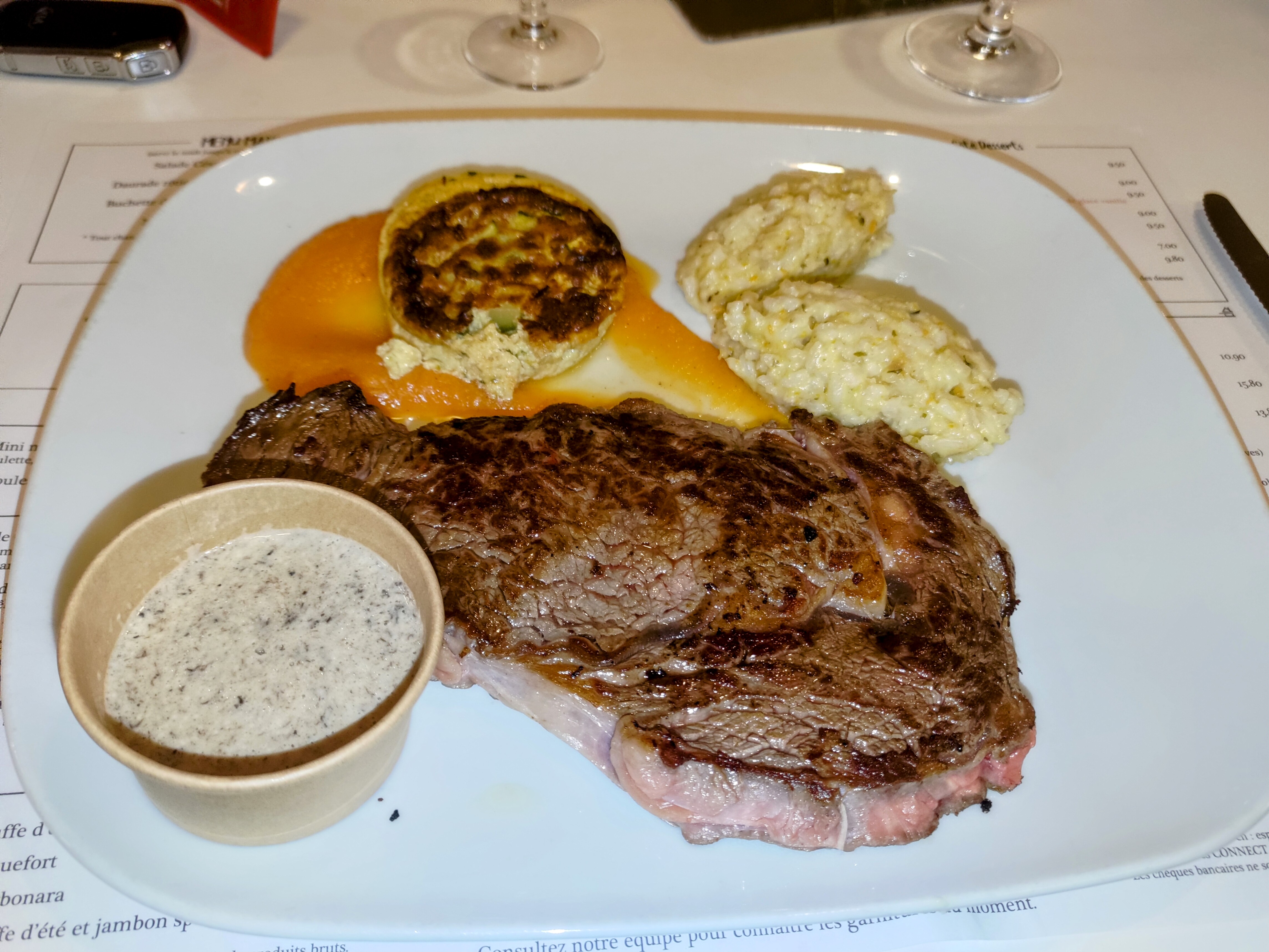 Bonjour, Délicieux repas, pour ma part il s'agissait de l'entrecôte grillée avec un bel accompagnement 🥳🙏 Vous en aurez pour votre argent.. Le personnel est au top, vous passerez un bon moment 😌