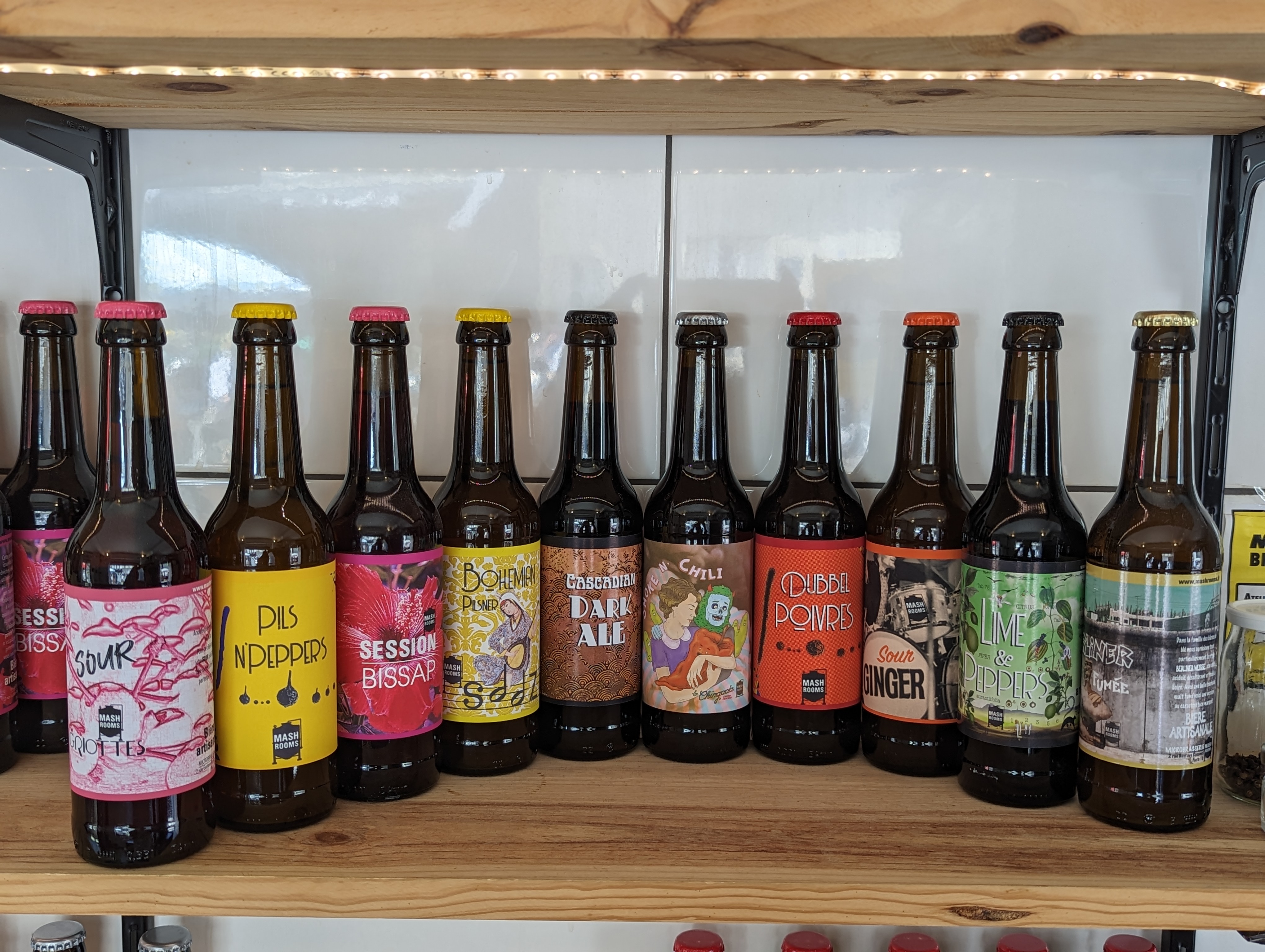 Je n'ai encore jamais testé les ateliers brassage. En revanche, j'ai goûté à un grand nombre des bières Mashrooms, j'ai beaucoup discuté avec le brasseur et c'est toujours un plaisir de passer à la brasserie faire ses emplettes. Les ingrédients sont indiqués sur l'étiquette, les recettes sont nombreuses et les brassins tous différents. On peut ainsi percevoir l'impact de tel ou tel houblon, des différentes levures et des malts. On trouve forcément son bonheur, entre des bières houblonnées et d'autres beaucoup plus sur les malts.