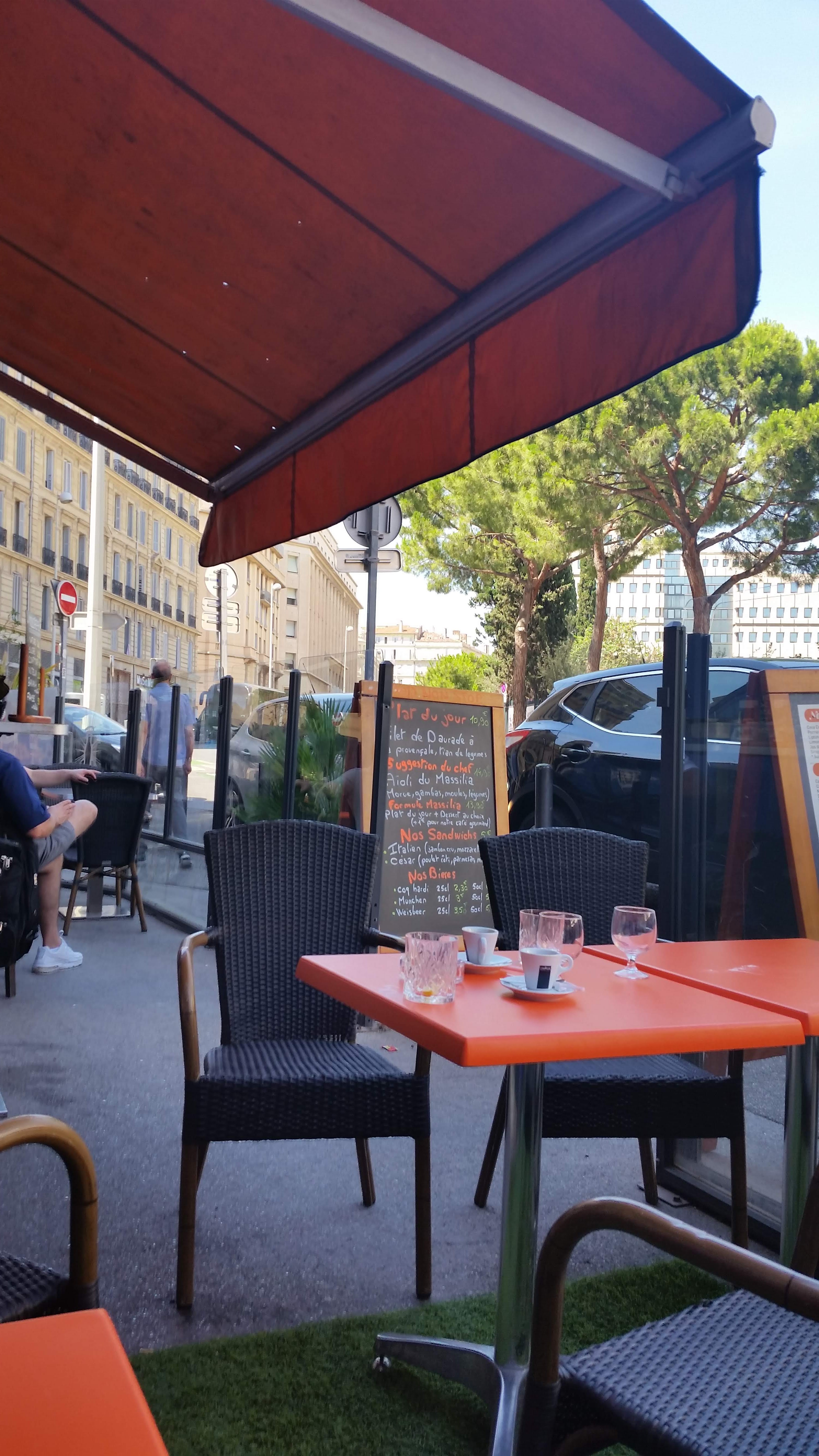 C'était très sympa là-bas. À première vue, c'est un café discret mais très cosy près du port de Marseille avec de très bons plats et boissons à des prix acceptables. Le personnel est très gentil et sympathique et vous obtenez rapidement ce que vous commandez. Nous nous y trouvions lors d'une escale croisière à Marseille. Enfin une ambiance française originale. Nous avons vraiment apprécié notre séjour là-bas.